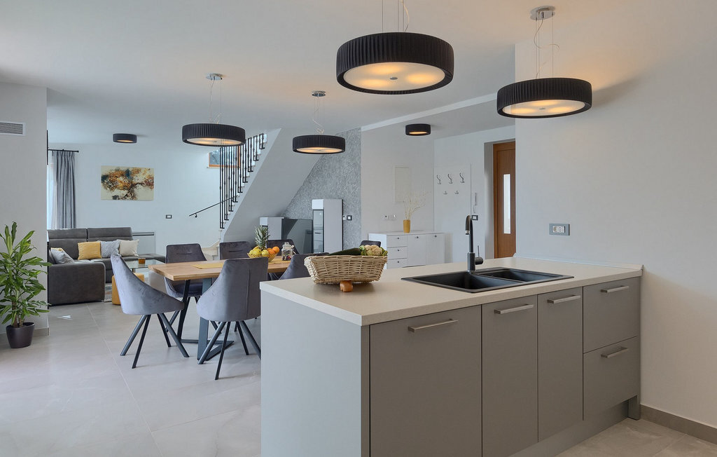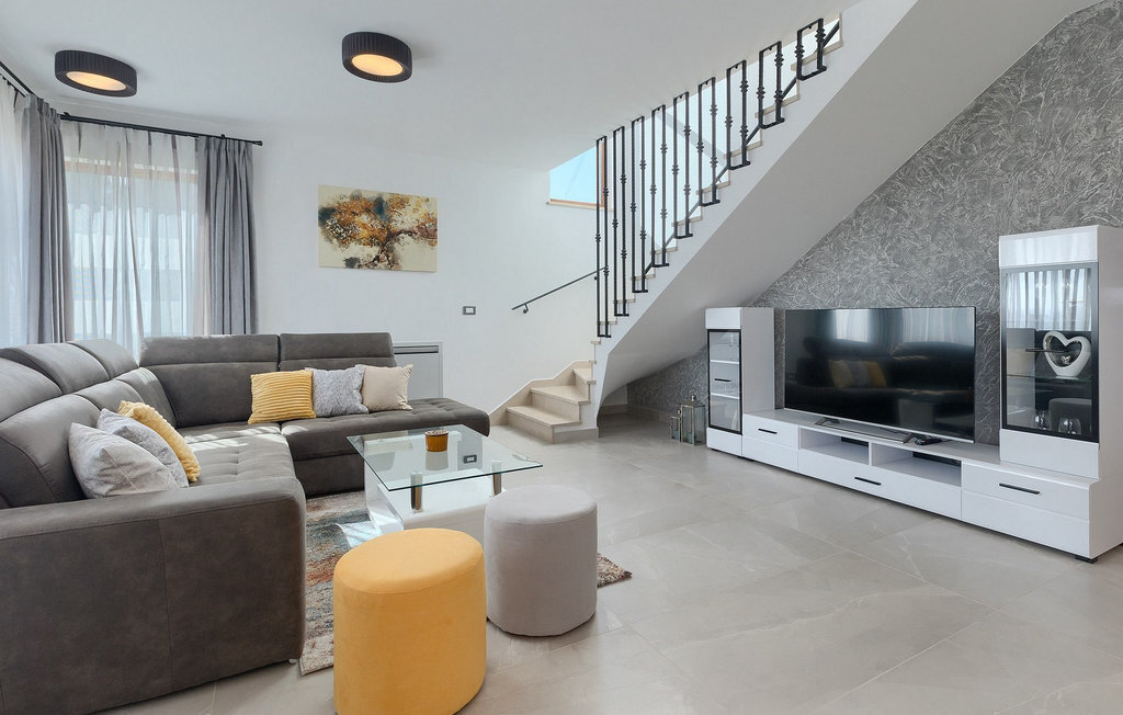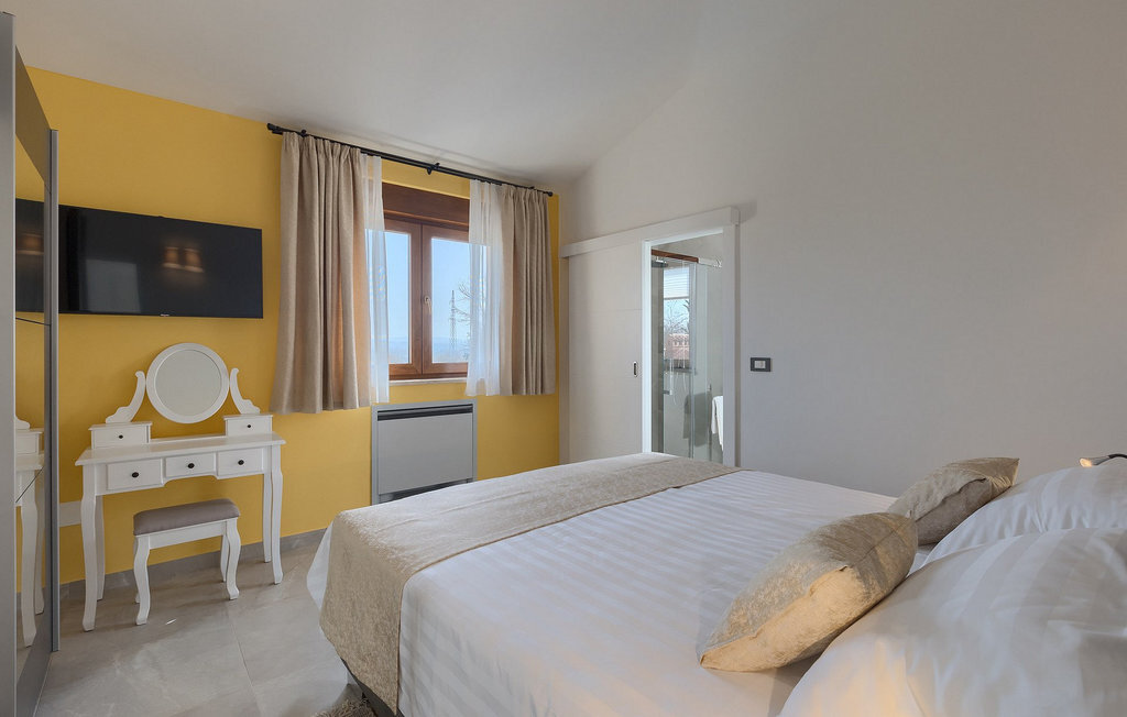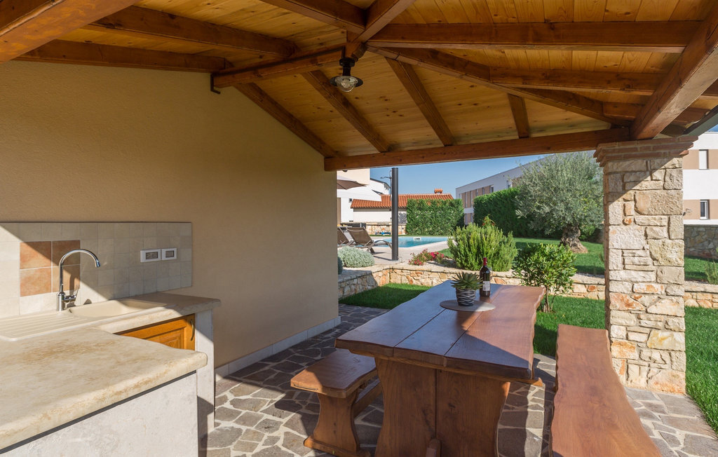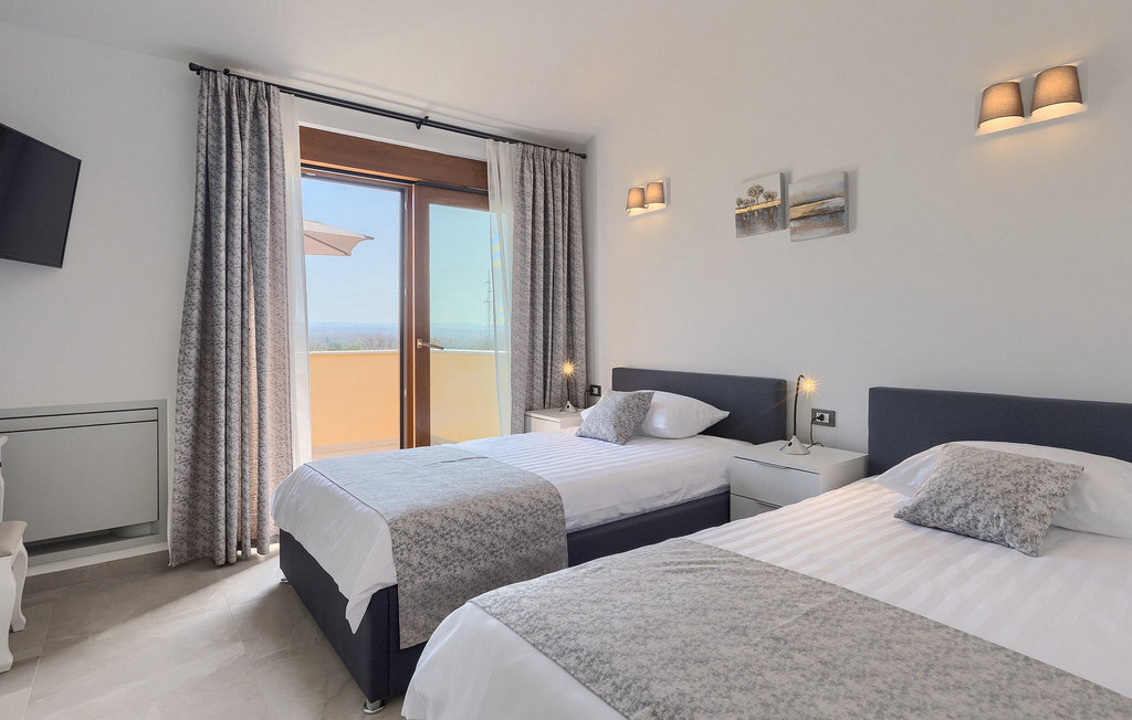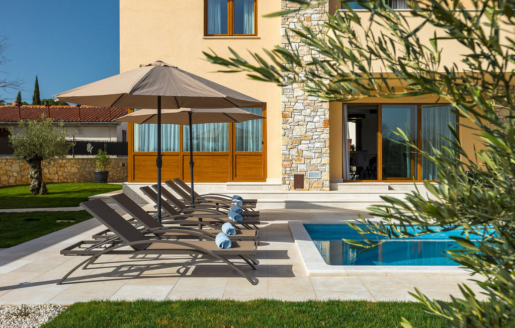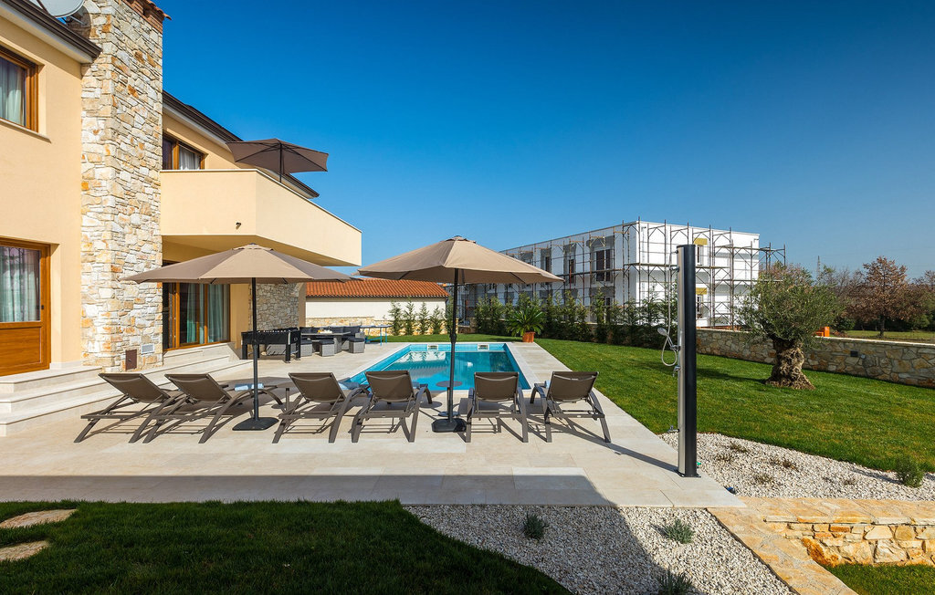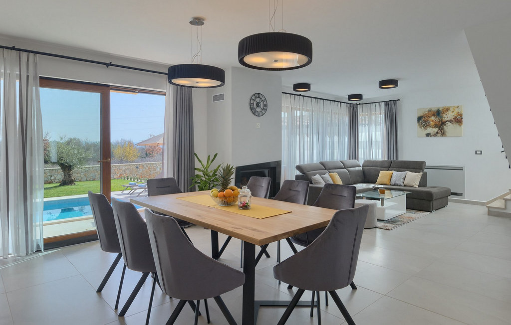 À l'intérieur, vous vous sentirez comme chez vous grâce aux détails d'équipement soigneusement choisis et à l'aménagement confortable. Le rez-de-chaussée a un concept ouvert et se compose d'une cuisine entièrement équipée, d'une salle à manger et d'un salon avec télévision par satellite. Le rez-de-chaussée a également un accès direct à la piscine, ce qui est super pratique. Au premier étage, il y a 3 chambres : une avec une salle de bain privée et 2 chambres qui partagent une autre salle de bain. Ici, il y a aussi 2 terrasses, dont une est couverte. Savourez votre premier café de la journée sur la terrasse avec une belle vue sur les environs - vous ne le regretterez pas.Tar est une charmante petite ville près de Novigrad sur la côte ouest de l'Istrie. Son emplacement vous permet d'aller à la plage sans faire un long trajet chaque jour, mais si vous aimeriez rester chez vous, Tar a tout ce dont vous pourriez avoir besoin en vacances - restaurants, magasins et la tranquillité d'une petite ville traditionnelle d'Istrie. Ici, vous pouvez profiter pleinement de la nature. Promenez-vous dans les oliveraies, visitez les caves à vin locales et goûtez au moins quelques produits locaux. Si vous aimez la pêche, vous apprendrez quelque chose de nouveau ici, car à Tar, l'eau douce se mélange à l'eau de mer et les poissons sont pêchés d'une manière particulière.