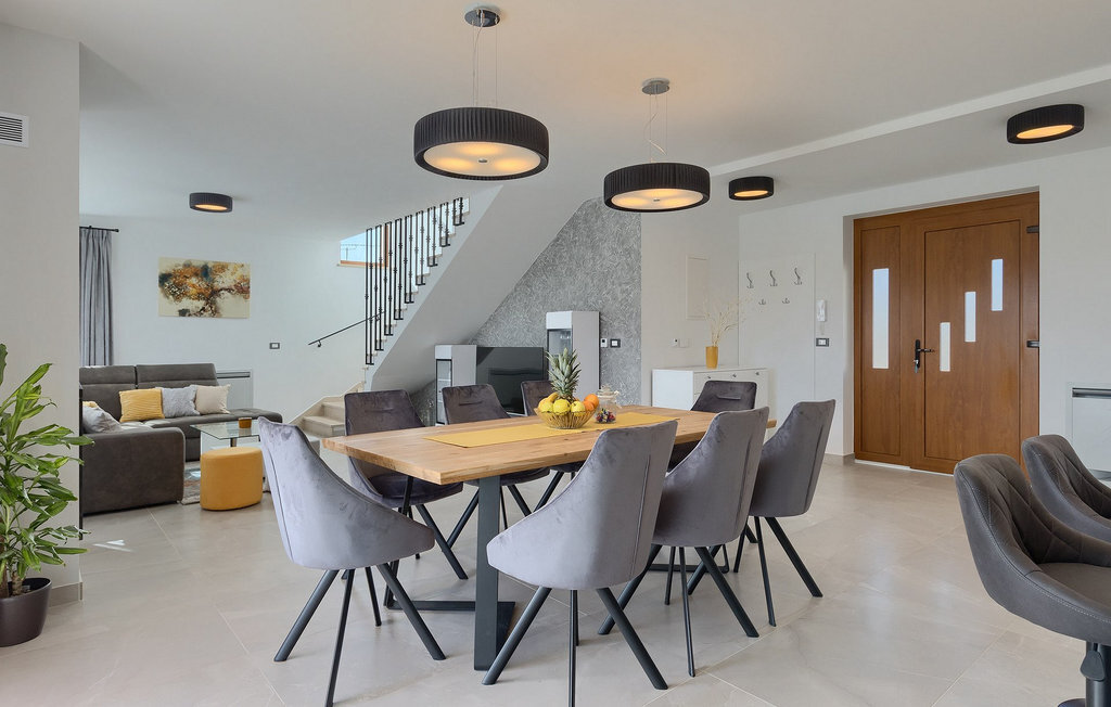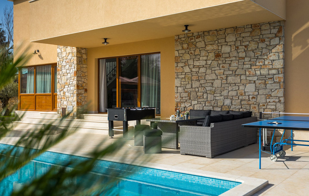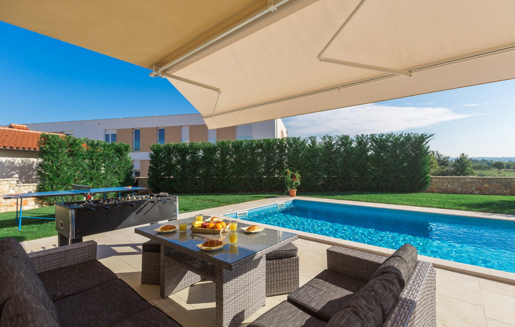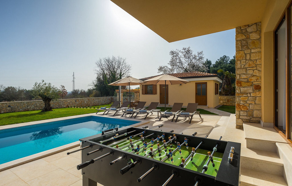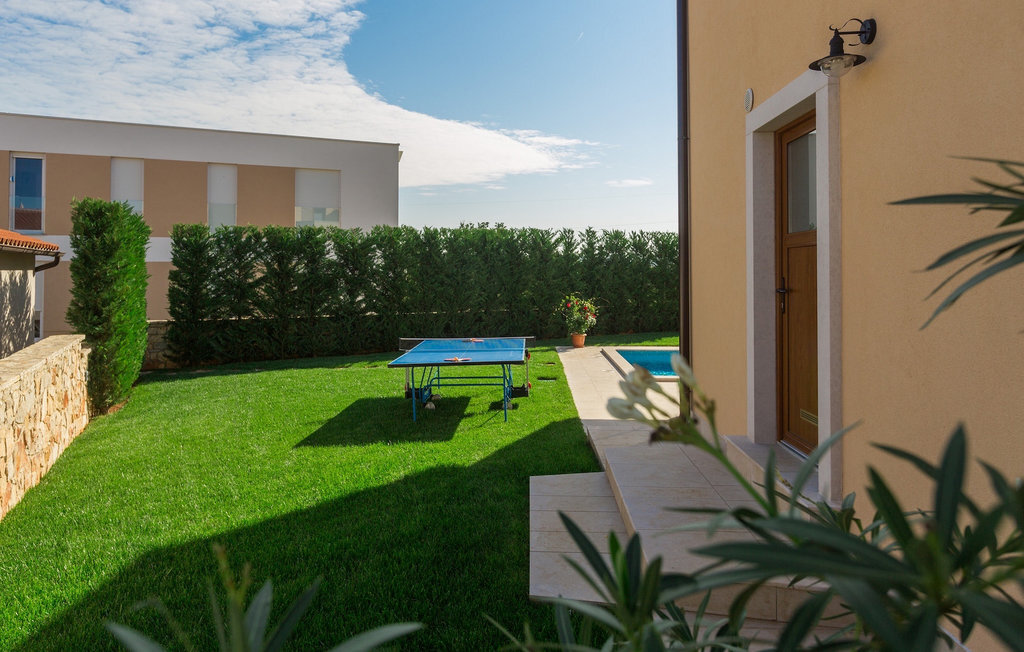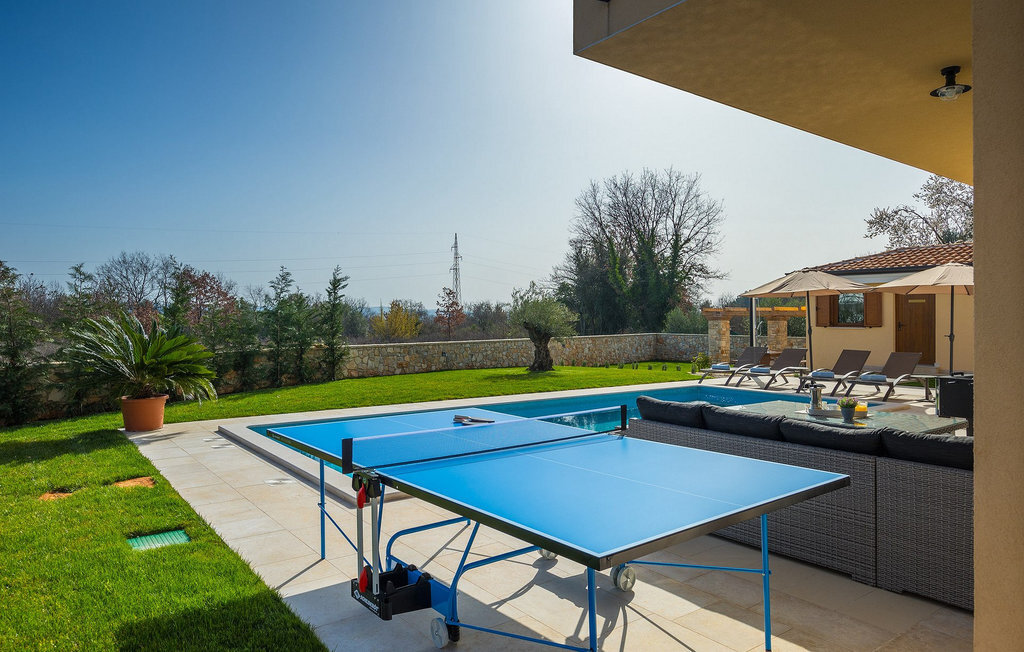 La villa Vatovac est située dans la petite ville tranquille de Tar, au nord-ouest de l'Istrie. La villa a tout ce dont vous avez besoin pour des vacances reposantes ! Cette propriété moderne permet à tous les invités de profiter de leur intimité, mais offre également suffisamment d'espace pour que tout le groupe puisse passer du temps ensemble. À l'extérieur, la piscine privée et les confortables chaises longues sont à votre disposition - c'est le meilleur endroit pour profiter du soleil avec une boisson rafraîchissante à la main. À quelques pas de là, vous trouverez le barbecue à gaz et la salle à manger extérieure, où vous pourrez déguster des produits locaux ou faire un barbecue ensemble le soir. La villa dispose également d'un baby-foot et d'une table de ping-pong - un plaisir pour les adultes comme pour les enfants !