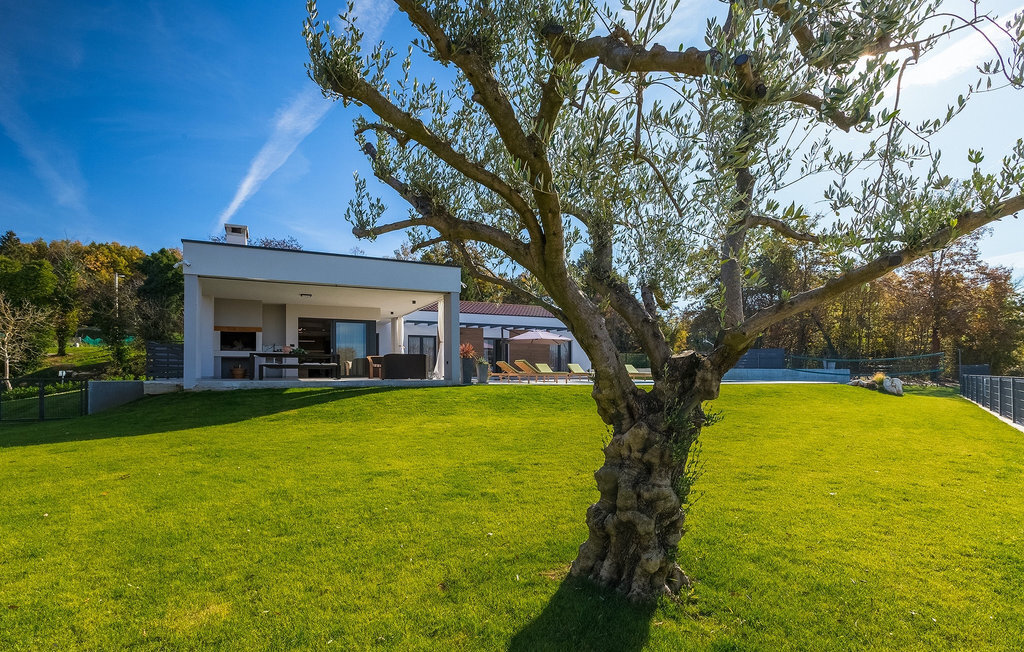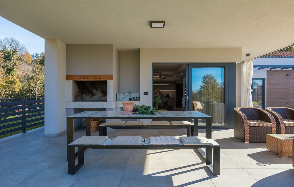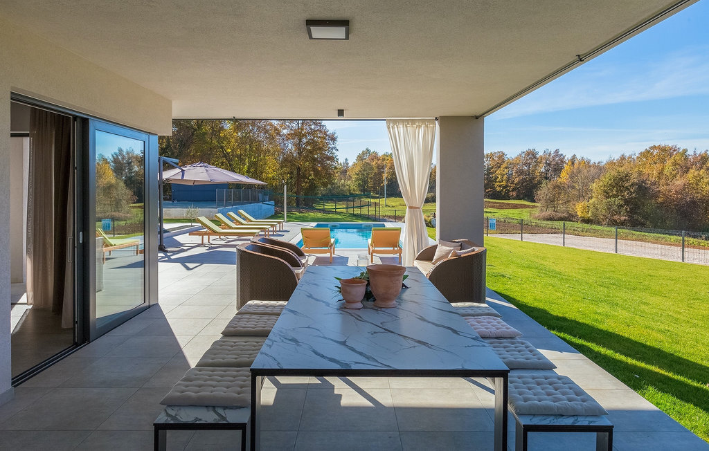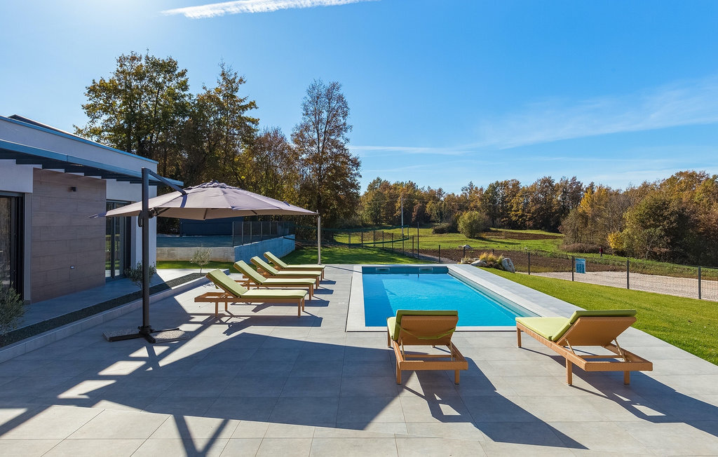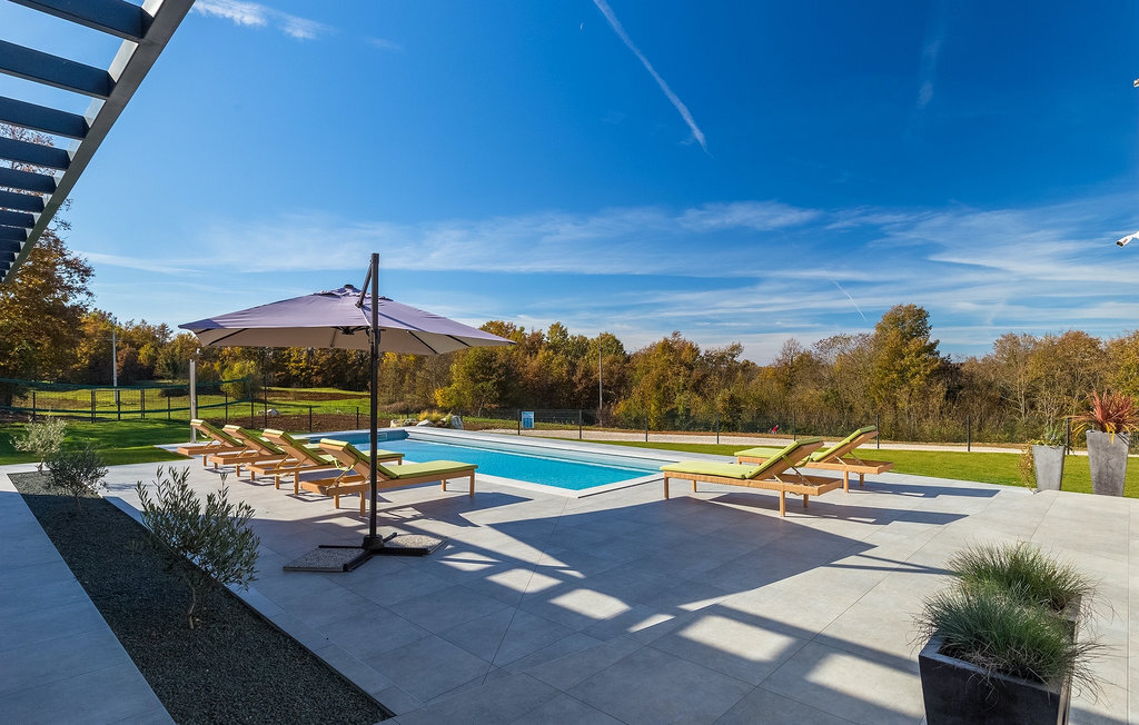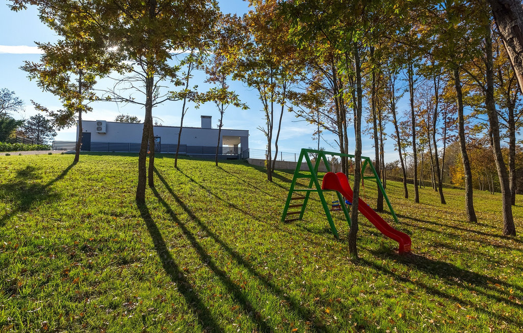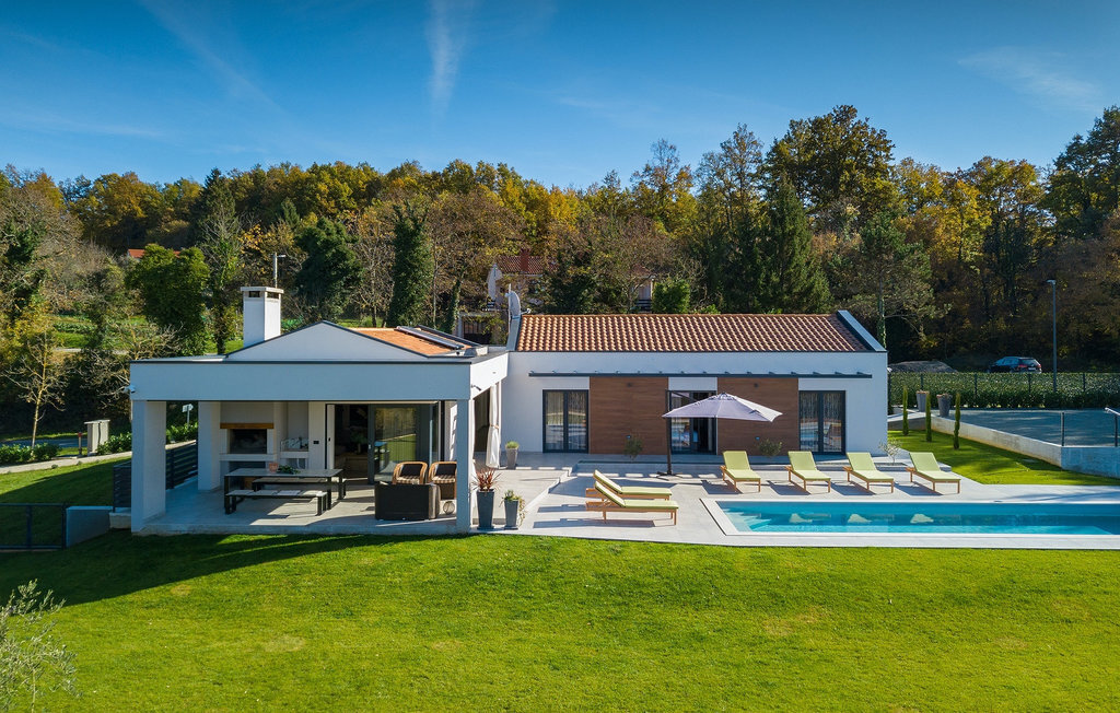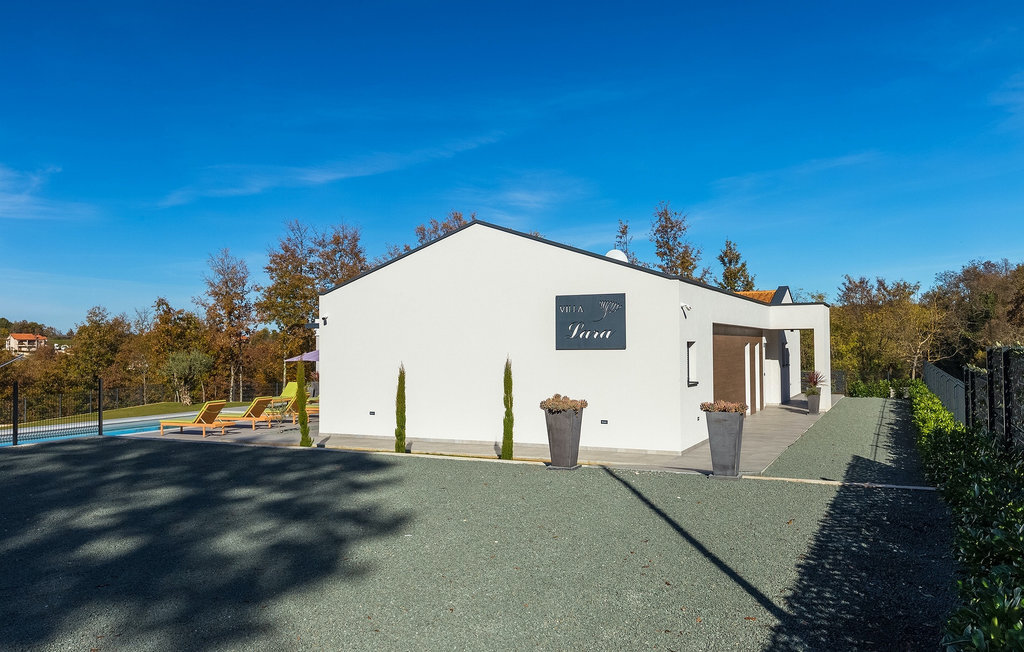 La villa Lara Baksi, récemment construite et entourée par la nature, se trouve dans un village calme à proximité de la ville pittoresque de Gracisce. Elle peut accueillir jusqu'à 8 personnes et convient donc parfaitement aux familles ou aux couples. À l'intérieur de la villa entièrement climatisée, on remarque que des couleurs sobres ont été utilisées, ce qui a un effet apaisant. Le salon et la salle à manger ouverts ont été aménagés avec style, et vous y trouverez certainement une atmosphère harmonieuse. La cuisine entièrement équipée avec îlot offre beaucoup de place pour cuisiner de bons petits plats. La villa dispose de 4 chambres à coucher confortables. Trois d'entre elles sont équipées d'un lit double, d'une télévision et d'une salle de bain moderne en suite, et une autre d'un lit superposé. L'espace extérieur comprend un jardin verdoyant entièrement clôturé, dans lequel se trouve la piscine privée avec chaises longues et parasols. La terrasse couverte avec des sièges est parfaite pour prendre votre café le matin et profiter de la vue pittoresque sur la nature. Un barbecue est également à votre disposition, vous invitant à passer de merveilleuses soirées avec vos proches. Les enfants peuvent s'amuser sur l'aire de jeux privée. Un terrain de volley-ball se trouve sur le terrain - peut-être que vous aurez envie de faire un match de volley-ball ? Trois places de parking privées et un accès à Internet sont également disponibles. Réservez la Villa Lara Baksi et passez des vacances inoubliables où tous vos désirs seront comblés.La Villa Lara Baksi se trouve dans le paisible village de Mandalencici. La ville pittoresque de Gracisce, le centre de la commune du même nom, se trouve à proximité, sur une colline. Vous découvrirez une ambiance médiévale en vous promenant dans les ruelles de la petite ville. En chemin, vous rencontrerez d'anciens bâtiments, des palais et des places qui vous enchanteront à coup sûr. Les paysages vallonnés et verdoyants de l'Istrie vous invitent à faire des randonnées à pied ou à vélo. La ville de Pazin se trouve à une courte distance en voiture. Le centre administratif de la région d'Istrie a été surnommé le "cœur de l'Istrie" au 19e siècle en raison de sa situation centrale. Elle offre une multitude de curiosités que vous devez absolument visiter. En 40 minutes de route environ, vous pouvez rejoindre les célèbres villes côtières de Rovinj, Porec et Rabac, dans lesquelles vous avez un grand choix de cafés, de restaurants, de curiosités, de possibilités sportives et de plages et de baies de rêve.