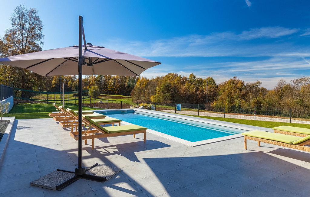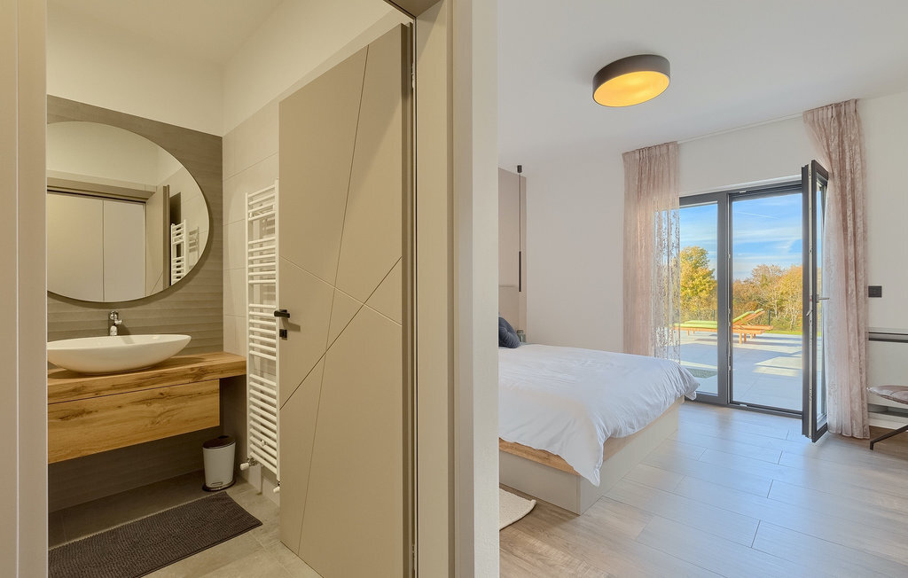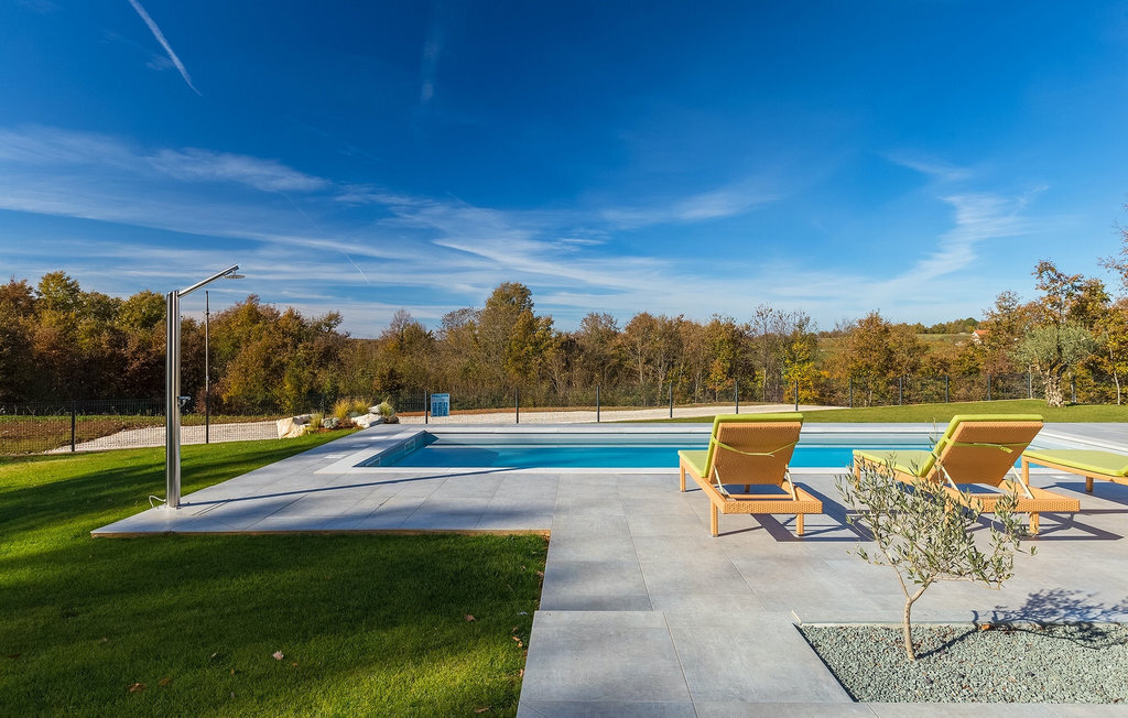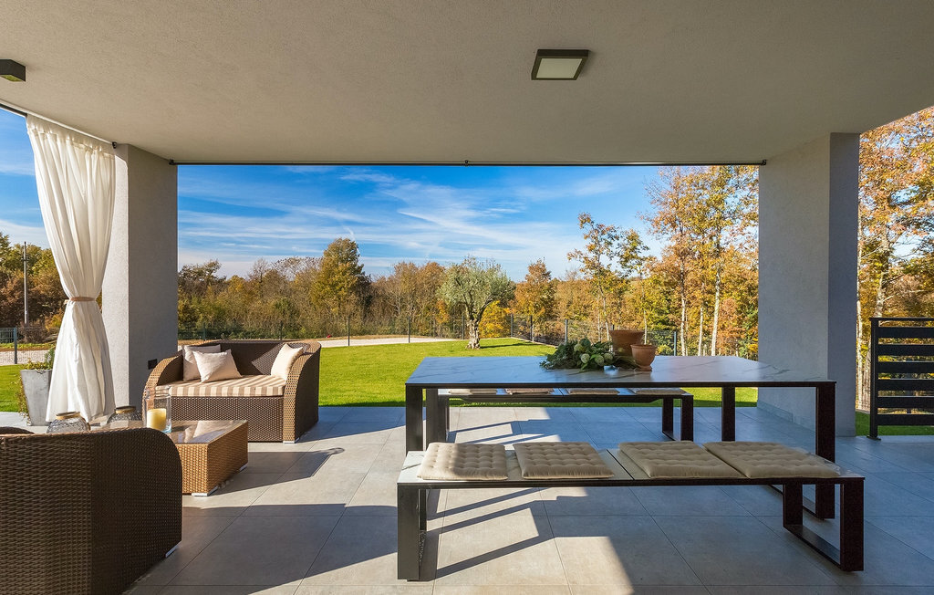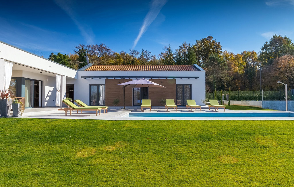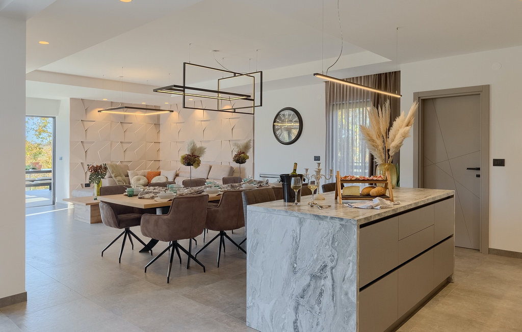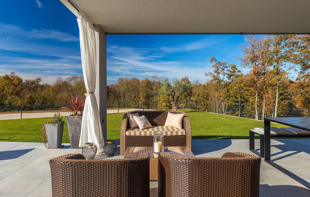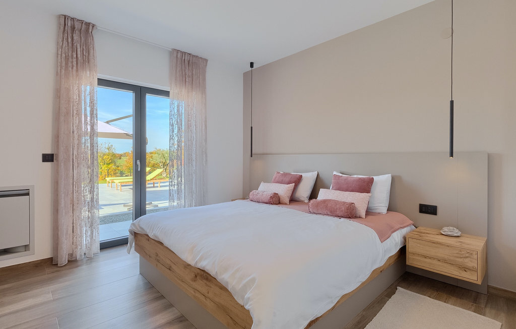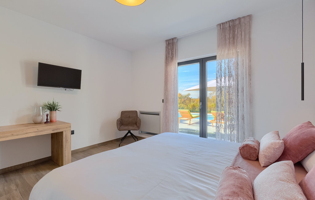 La villa Lara Baksi, récemment construite et entourée par la nature, se trouve dans un village calme à proximité de la ville pittoresque de Gracisce. Elle peut accueillir jusqu'à 8 personnes et convient donc parfaitement aux familles ou aux couples. À l'intérieur de la villa entièrement climatisée, on remarque que des couleurs sobres ont été utilisées, ce qui a un effet apaisant. Le salon et la salle à manger ouverts ont été aménagés avec style, et vous y trouverez certainement une atmosphère harmonieuse. La cuisine entièrement équipée avec îlot offre beaucoup de place pour cuisiner de bons petits plats. La villa dispose de 4 chambres à coucher confortables. Trois d'entre elles sont équipées d'un lit double, d'une télévision et d'une salle de bain moderne en suite, et une autre d'un lit superposé. L'espace extérieur comprend un jardin verdoyant entièrement clôturé, dans lequel se trouve la piscine privée avec chaises longues et parasols. La terrasse couverte avec des sièges est parfaite pour prendre votre café le matin et profiter de la vue pittoresque sur la nature. Un barbecue est également à votre disposition, vous invitant à passer de merveilleuses soirées avec vos proches. Les enfants peuvent s'amuser sur l'aire de jeux privée. Un terrain de volley-ball se trouve sur le terrain - peut-être que vous aurez envie de faire un match de volley-ball ? Trois places de parking privées et un accès à Internet sont également disponibles. Réservez la Villa Lara Baksi et passez des vacances inoubliables où tous vos désirs seront comblés.La Villa Lara Baksi se trouve dans le paisible village de Mandalencici. La ville pittoresque de Gracisce, le centre de la commune du même nom, se trouve à proximité, sur une colline. Vous découvrirez une ambiance médiévale en vous promenant dans les ruelles de la petite ville. En chemin, vous rencontrerez d'anciens bâtiments, des palais et des places qui vous enchanteront à coup sûr. Les paysages vallonnés et verdoyants de l'Istrie vous invitent à faire des randonnées à pied ou à vélo. La ville de Pazin se trouve à une courte distance en voiture. Le centre administratif de la région d'Istrie a été surnommé le "cœur de l'Istrie" au 19e siècle en raison de sa situation centrale. Elle offre une multitude de curiosités que vous devez absolument visiter. En 40 minutes de route environ, vous pouvez rejoindre les célèbres villes côtières de Rovinj, Porec et Rabac, dans lesquelles vous avez un grand choix de cafés, de restaurants, de curiosités, de possibilités sportives et de plages et de baies de rêve.