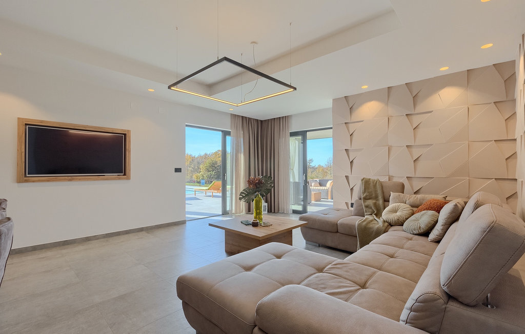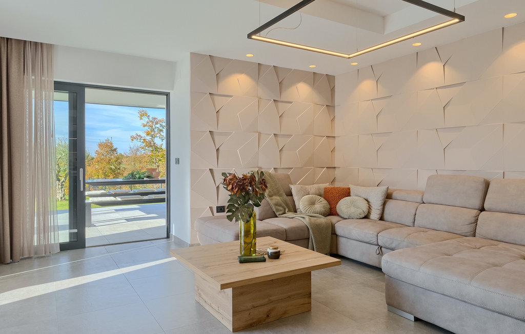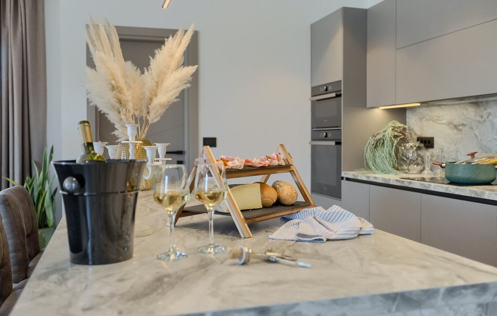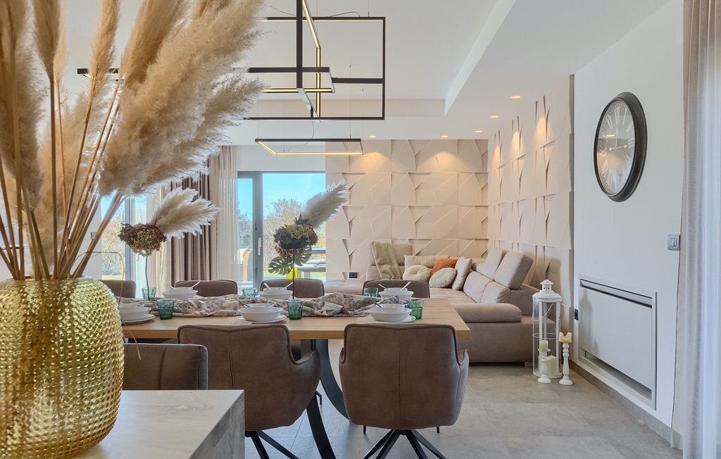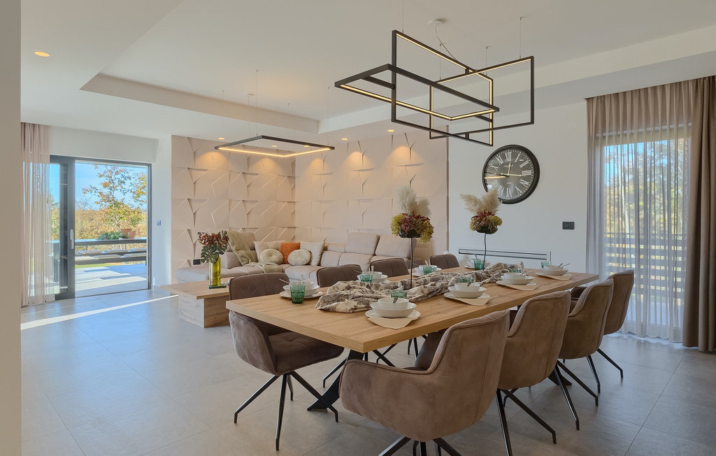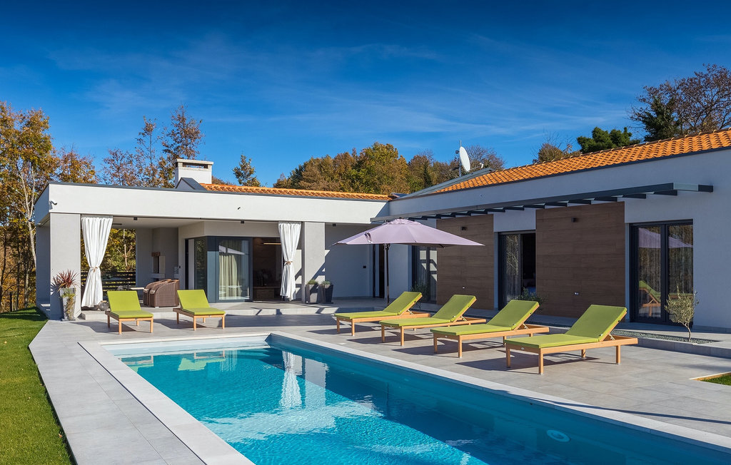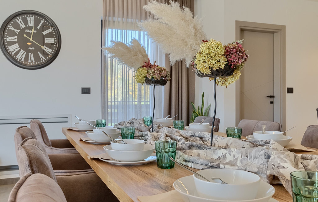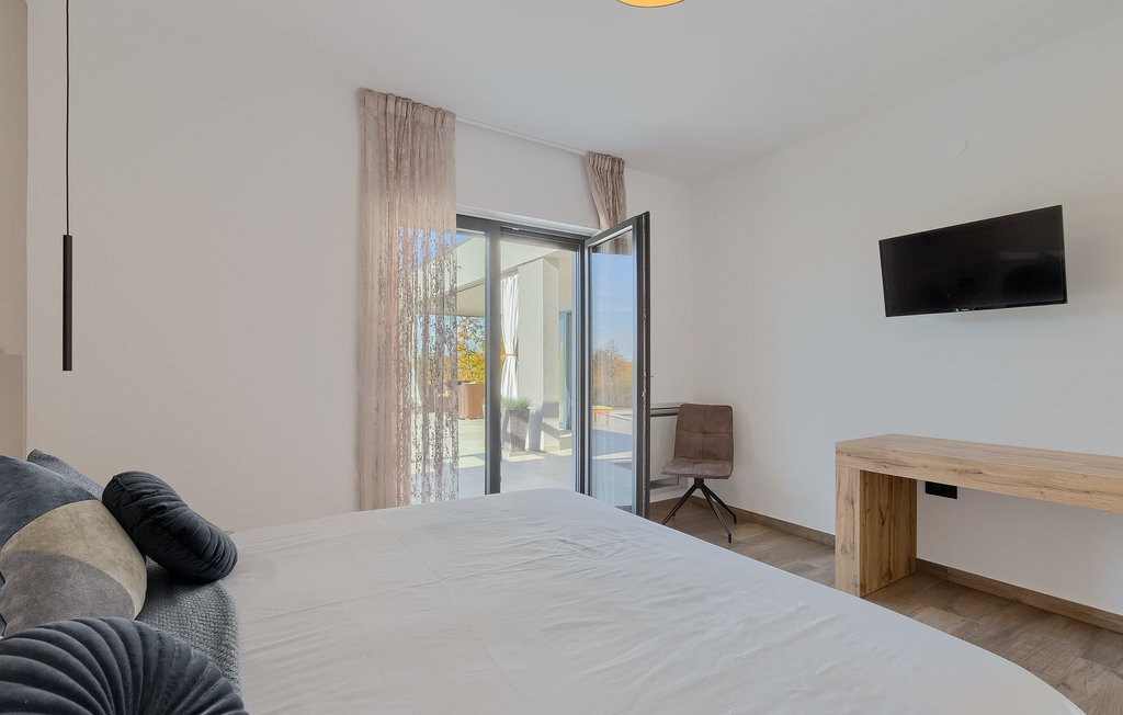 La villa Lara Baksi, récemment construite et entourée par la nature, se trouve dans un village calme à proximité de la ville pittoresque de Gracisce. Elle peut accueillir jusqu'à 8 personnes et convient donc parfaitement aux familles ou aux couples. À l'intérieur de la villa entièrement climatisée, on remarque que des couleurs sobres ont été utilisées, ce qui a un effet apaisant. Le salon et la salle à manger ouverts ont été aménagés avec style, et vous y trouverez certainement une atmosphère harmonieuse. La cuisine entièrement équipée avec îlot offre beaucoup de place pour cuisiner de bons petits plats. La villa dispose de 4 chambres à coucher confortables. Trois d'entre elles sont équipées d'un lit double, d'une télévision et d'une salle de bain moderne en suite, et une autre d'un lit superposé. L'espace extérieur comprend un jardin verdoyant entièrement clôturé, dans lequel se trouve la piscine privée avec chaises longues et parasols. La terrasse couverte avec des sièges est parfaite pour prendre votre café le matin et profiter de la vue pittoresque sur la nature. Un barbecue est également à votre disposition, vous invitant à passer de merveilleuses soirées avec vos proches. Les enfants peuvent s'amuser sur l'aire de jeux privée. Un terrain de volley-ball se trouve sur le terrain - peut-être que vous aurez envie de faire un match de volley-ball ? Trois places de parking privées et un accès à Internet sont également disponibles. Réservez la Villa Lara Baksi et passez des vacances inoubliables où tous vos désirs seront comblés.La Villa Lara Baksi se trouve dans le paisible village de Mandalencici. La ville pittoresque de Gracisce, le centre de la commune du même nom, se trouve à proximité, sur une colline. Vous découvrirez une ambiance médiévale en vous promenant dans les ruelles de la petite ville. En chemin, vous rencontrerez d'anciens bâtiments, des palais et des places qui vous enchanteront à coup sûr. Les paysages vallonnés et verdoyants de l'Istrie vous invitent à faire des randonnées à pied ou à vélo. La ville de Pazin se trouve à une courte distance en voiture. Le centre administratif de la région d'Istrie a été surnommé le "cœur de l'Istrie" au 19e siècle en raison de sa situation centrale. Elle offre une multitude de curiosités que vous devez absolument visiter. En 40 minutes de route environ, vous pouvez rejoindre les célèbres villes côtières de Rovinj, Porec et Rabac, dans lesquelles vous avez un grand choix de cafés, de restaurants, de curiosités, de possibilités sportives et de plages et de baies de rêve.