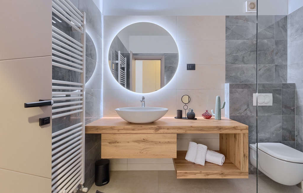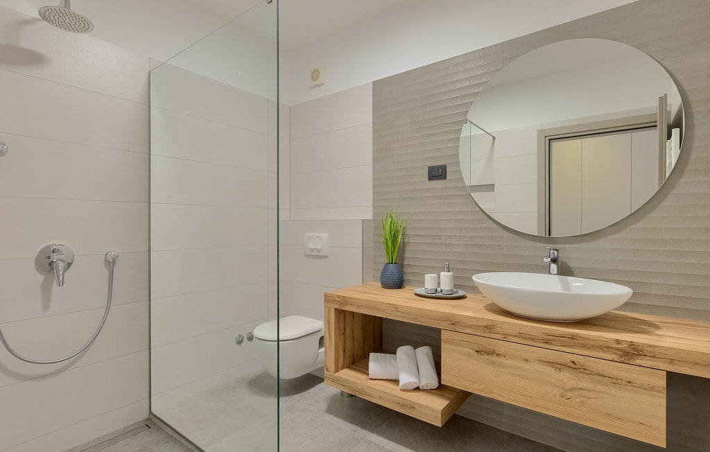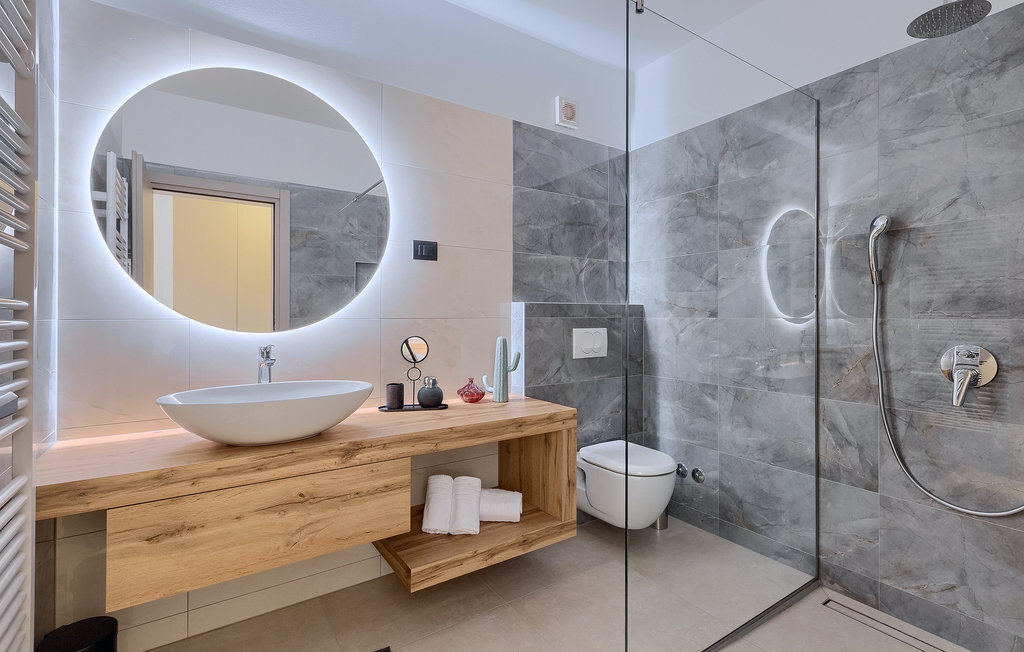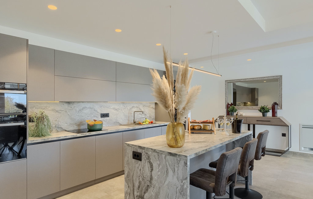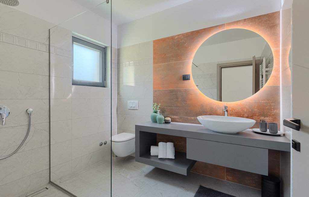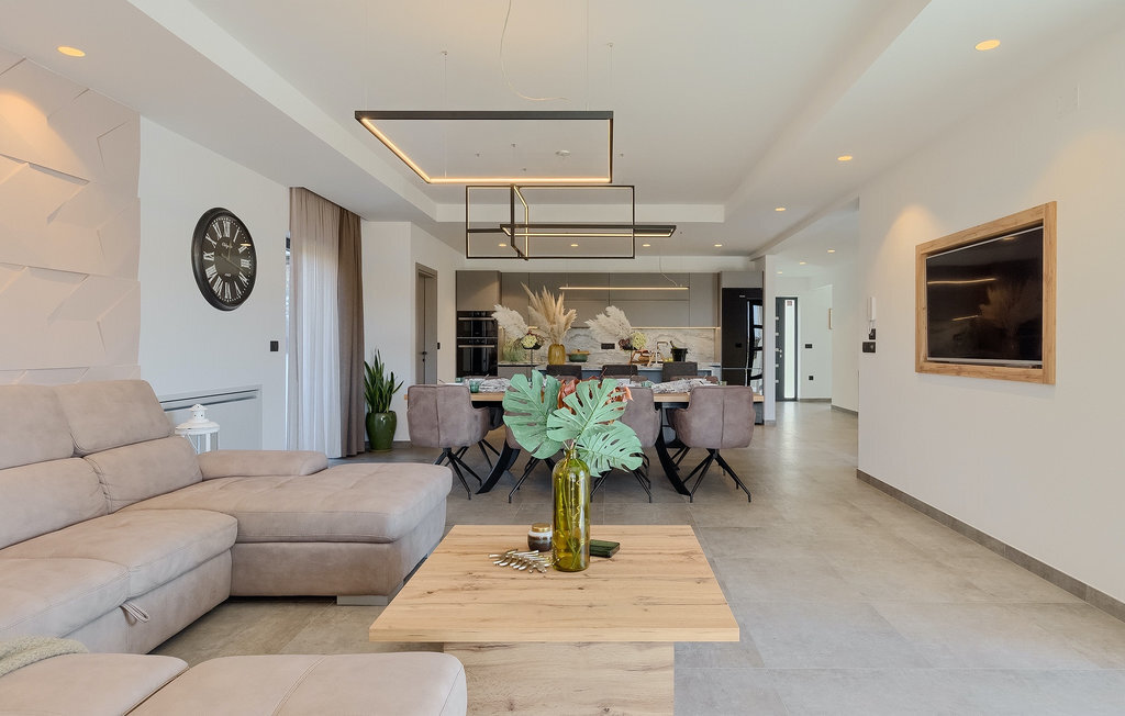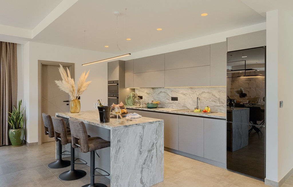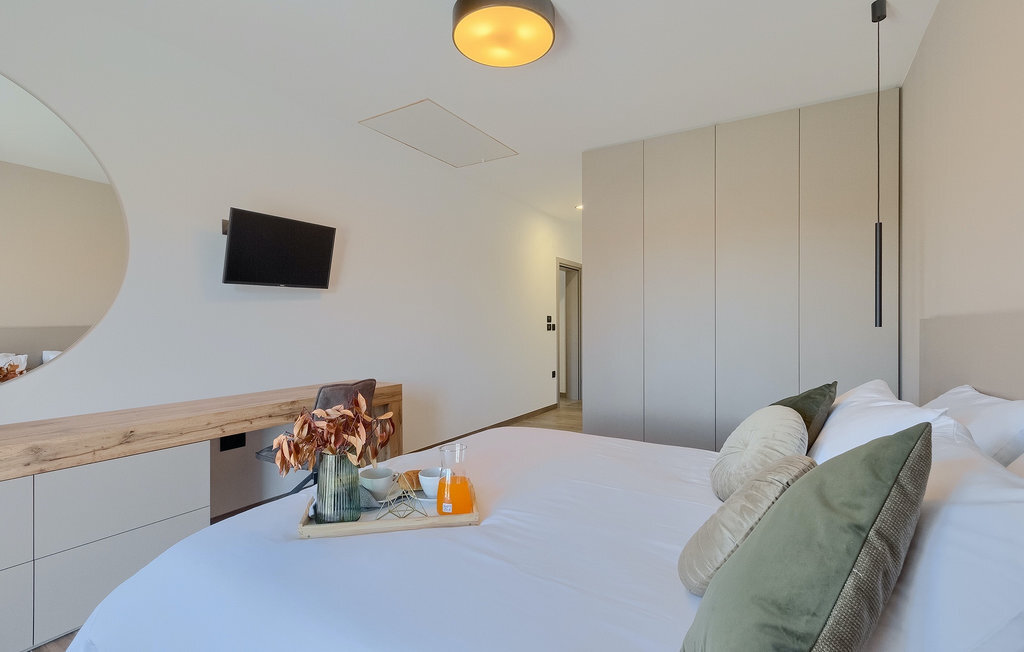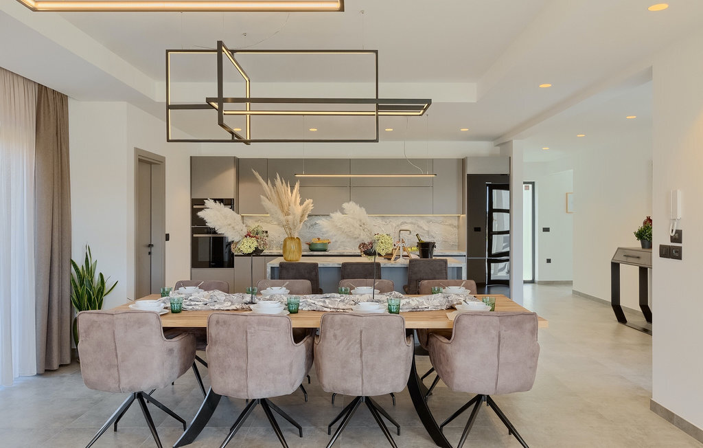 La villa Lara Baksi, récemment construite et entourée par la nature, se trouve dans un village calme à proximité de la ville pittoresque de Gracisce. Elle peut accueillir jusqu'à 8 personnes et convient donc parfaitement aux familles ou aux couples. À l'intérieur de la villa entièrement climatisée, on remarque que des couleurs sobres ont été utilisées, ce qui a un effet apaisant. Le salon et la salle à manger ouverts ont été aménagés avec style, et vous y trouverez certainement une atmosphère harmonieuse. La cuisine entièrement équipée avec îlot offre beaucoup de place pour cuisiner de bons petits plats. La villa dispose de 4 chambres à coucher confortables. Trois d'entre elles sont équipées d'un lit double, d'une télévision et d'une salle de bain moderne en suite, et une autre d'un lit superposé. L'espace extérieur comprend un jardin verdoyant entièrement clôturé, dans lequel se trouve la piscine privée avec chaises longues et parasols. La terrasse couverte avec des sièges est parfaite pour prendre votre café le matin et profiter de la vue pittoresque sur la nature. Un barbecue est également à votre disposition, vous invitant à passer de merveilleuses soirées avec vos proches. Les enfants peuvent s'amuser sur l'aire de jeux privée. Un terrain de volley-ball se trouve sur le terrain - peut-être que vous aurez envie de faire un match de volley-ball ? Trois places de parking privées et un accès à Internet sont également disponibles. Réservez la Villa Lara Baksi et passez des vacances inoubliables où tous vos désirs seront comblés.La Villa Lara Baksi se trouve dans le paisible village de Mandalencici. La ville pittoresque de Gracisce, le centre de la commune du même nom, se trouve à proximité, sur une colline. Vous découvrirez une ambiance médiévale en vous promenant dans les ruelles de la petite ville. En chemin, vous rencontrerez d'anciens bâtiments, des palais et des places qui vous enchanteront à coup sûr. Les paysages vallonnés et verdoyants de l'Istrie vous invitent à faire des randonnées à pied ou à vélo. La ville de Pazin se trouve à une courte distance en voiture. Le centre administratif de la région d'Istrie a été surnommé le "cœur de l'Istrie" au 19e siècle en raison de sa situation centrale. Elle offre une multitude de curiosités que vous devez absolument visiter. En 40 minutes de route environ, vous pouvez rejoindre les célèbres villes côtières de Rovinj, Porec et Rabac, dans lesquelles vous avez un grand choix de cafés, de restaurants, de curiosités, de possibilités sportives et de plages et de baies de rêve.