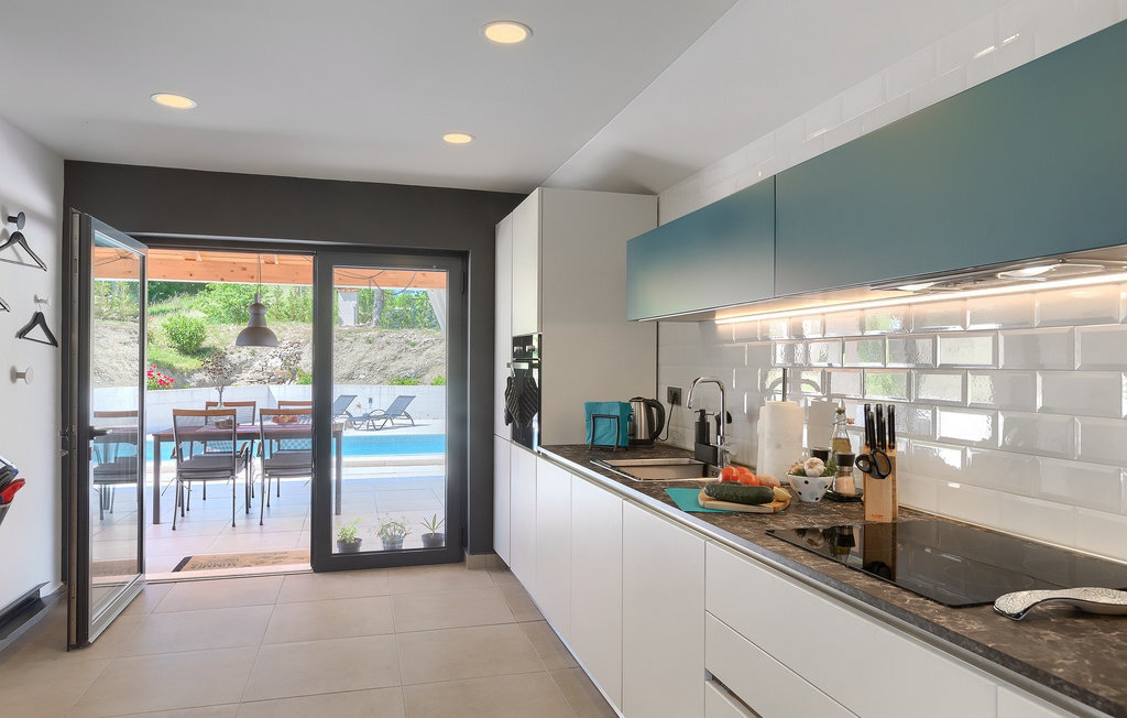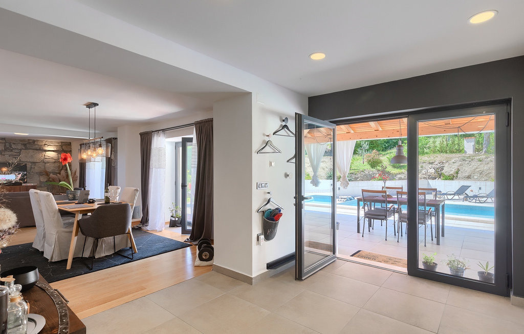 La villa se trouve dans un petit village d'Istrie, entouré d'une nature intacte. Avec une surface habitable totale de 125 mètres carrés, elle peut accueillir jusqu'à 6 personnes au maximum. Le rez-de-chaussée se compose d'une cuisine moderne et bien équipée, d'un coin repas, d'un salon avec télévision et d'une salle de bain avec douche. À l'étage supérieur se trouvent deux chambres à coucher joliment aménagées avec des lits doubles et une autre salle de bain avec douche. L'espace extérieur est l'endroit idéal pour se détendre et profiter du calme et de la tranquillité de la région. Devant la villa se trouvent une terrasse couverte et une piscine privée, parfaite pour les chaudes journées d'été. Profitez de cette opportunité et profitez de vos vacances dans la belle Istrie.La villa Des4U est située au cœur d'un paysage idyllique, sur les pentes occidentales du magnifique parc naturel d'Uka. Si vous aimez le vélo et la randonnée, de magnifiques montagnes vous attendent. Les plus aventureux trouveront ici quelques-uns des sites les plus populaires de Croatie pour l'escalade libre et le parapente. Si vous avez envie d'une mer cristalline, la diversité des plages n'est qu'à une trentaine de minutes en voiture, tout comme la perle de l'Adriatique - Opatija, avec son animation estivale et ses restaurants de première classe. Visitez les nombreuses villes médiévales de l'Istrie centrale comme Boljun, Motovun et Gronjan et les villes côtières comme Pula, Rovinj et Pore. Goûtez à de nombreux plats traditionnels comme les pâtes istriennes Fui et Pljukanci aux truffes ou Bokarin, et complétez votre dîner avec un verre de Malvasia istrien de première qualité.