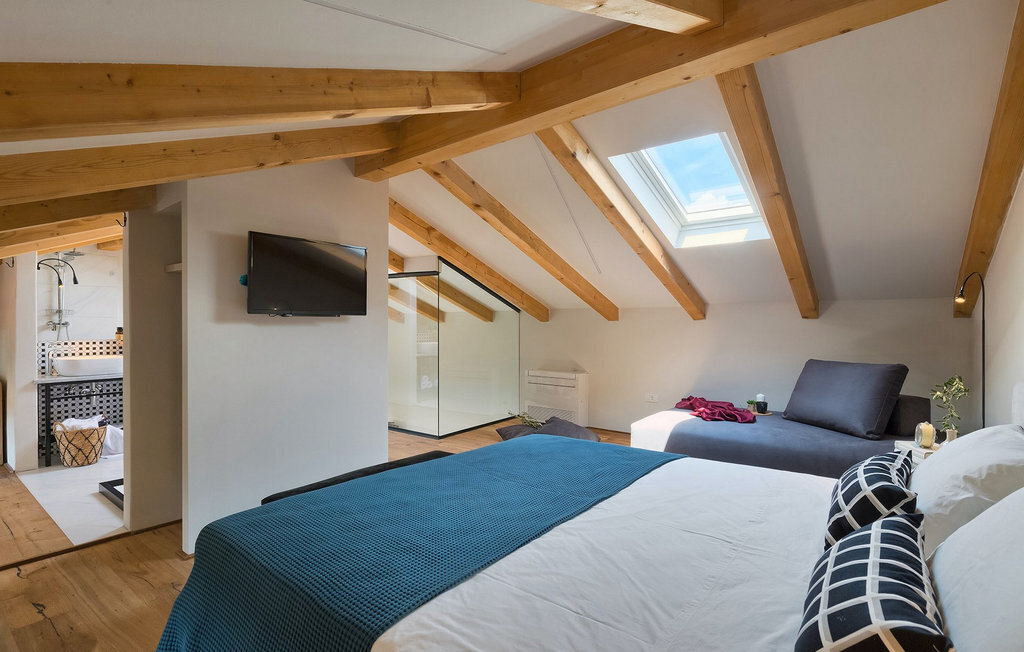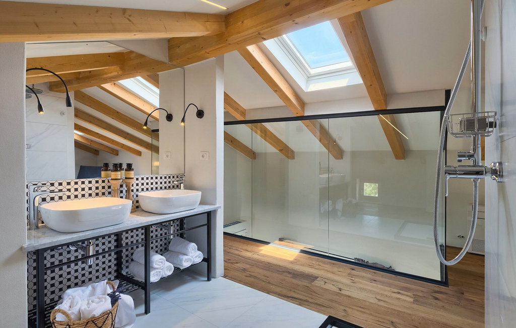Au rez-de-chaussée se trouvent deux chambres à coucher, une salle de bain et un débarras. Le premier étage est le cœur de la villa - avec un grand salon et une salle à manger modernes et ensoleillés, une cuisine entièrement équipée et des toilettes supplémentaires pour les invités. Le deuxième étage (loft) abrite la charmante et moderne chambre à coucher principale en suite avec un lit double, dans laquelle se trouve également un lit simple supplémentaire.