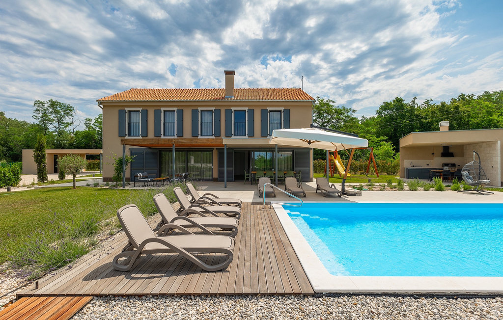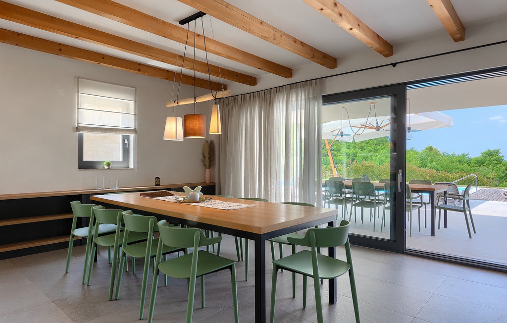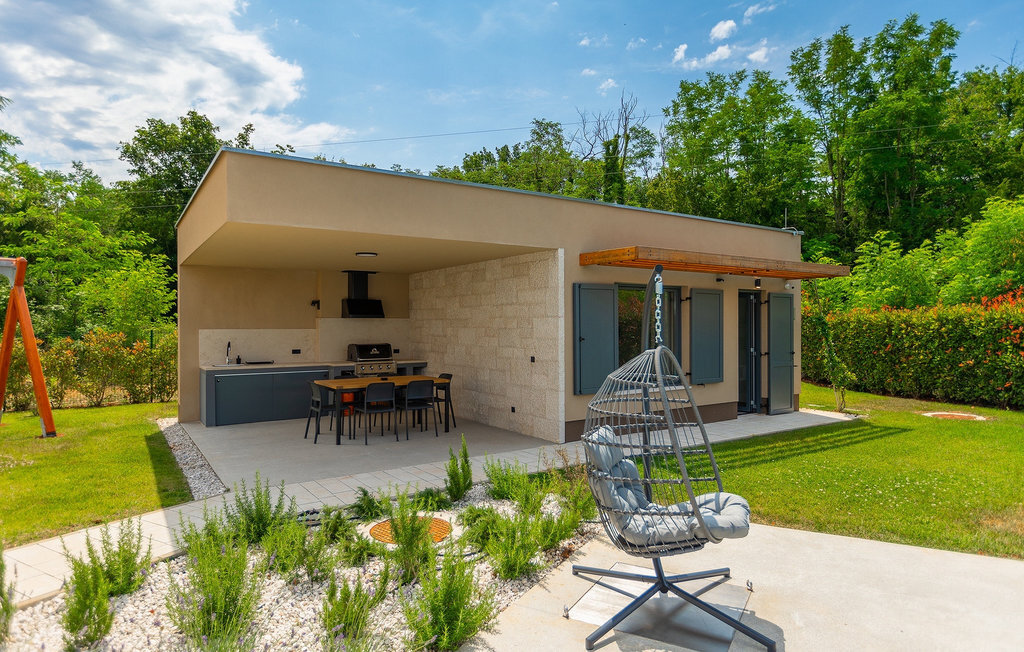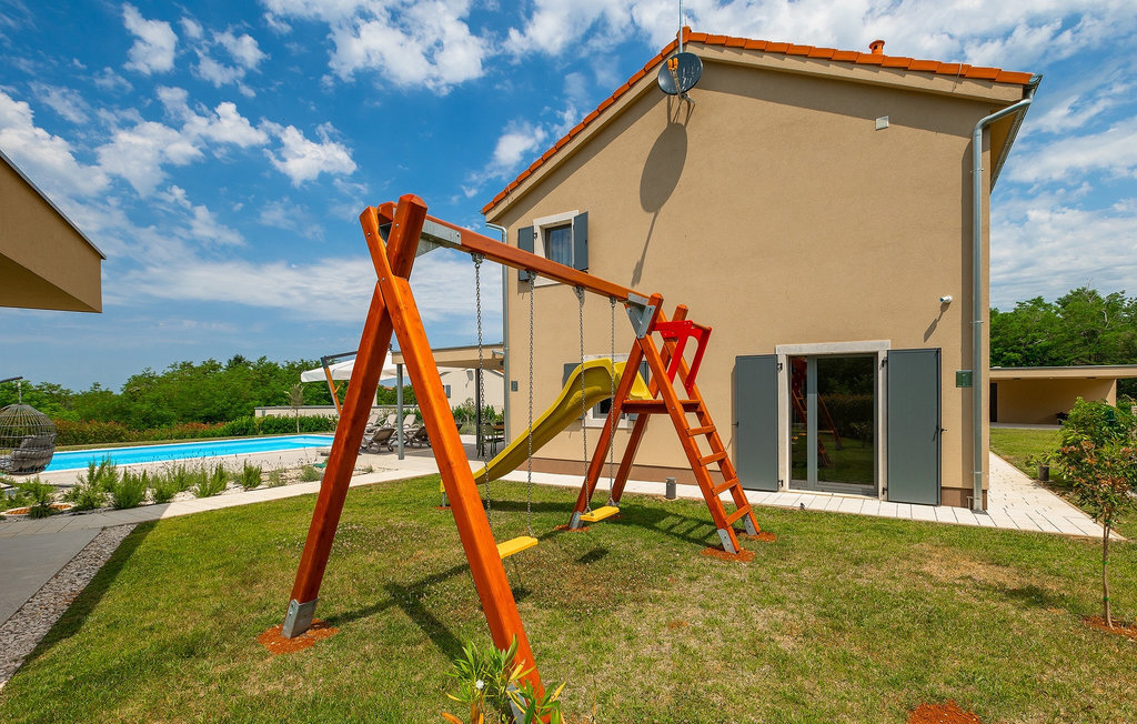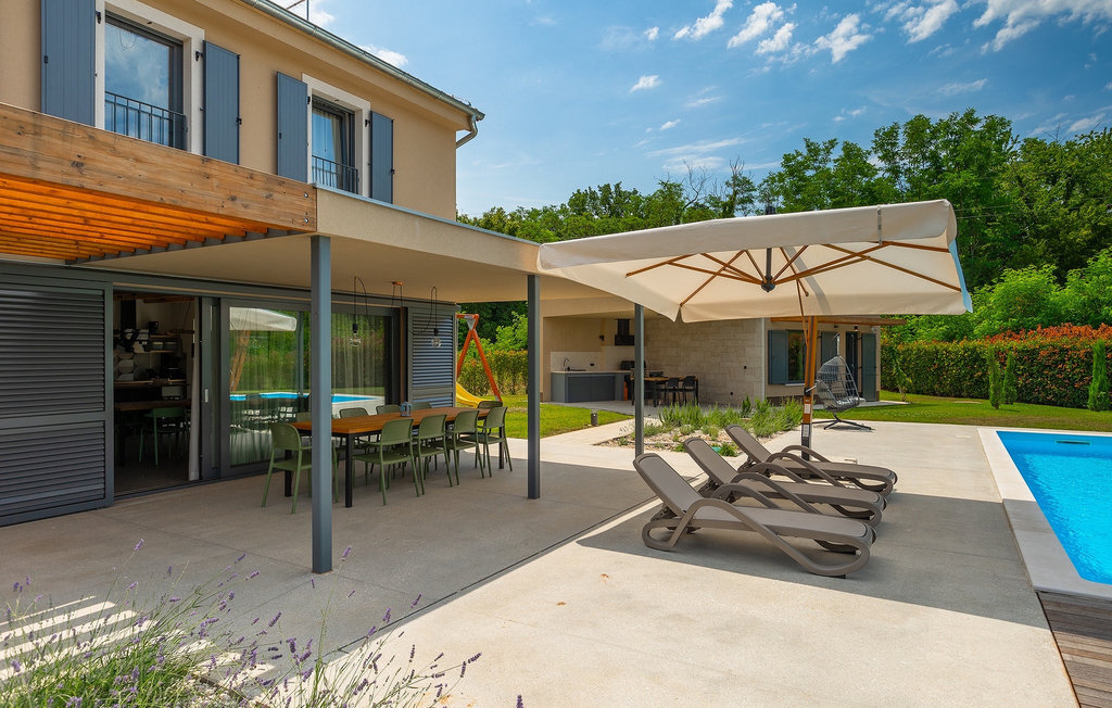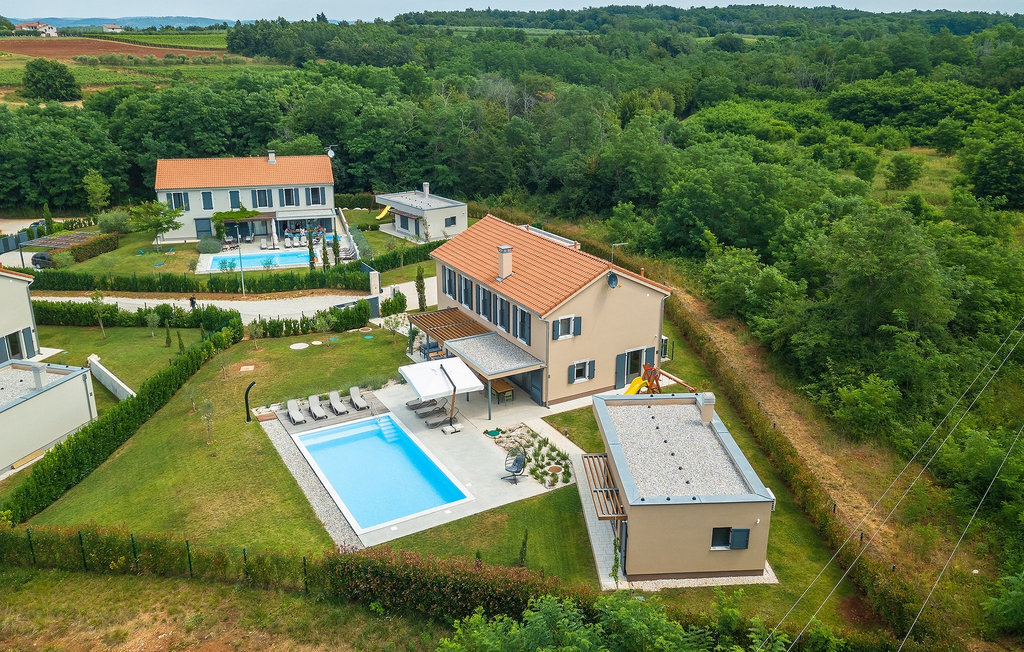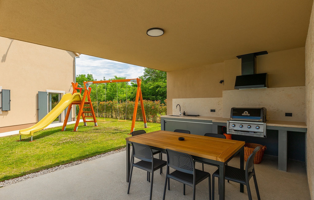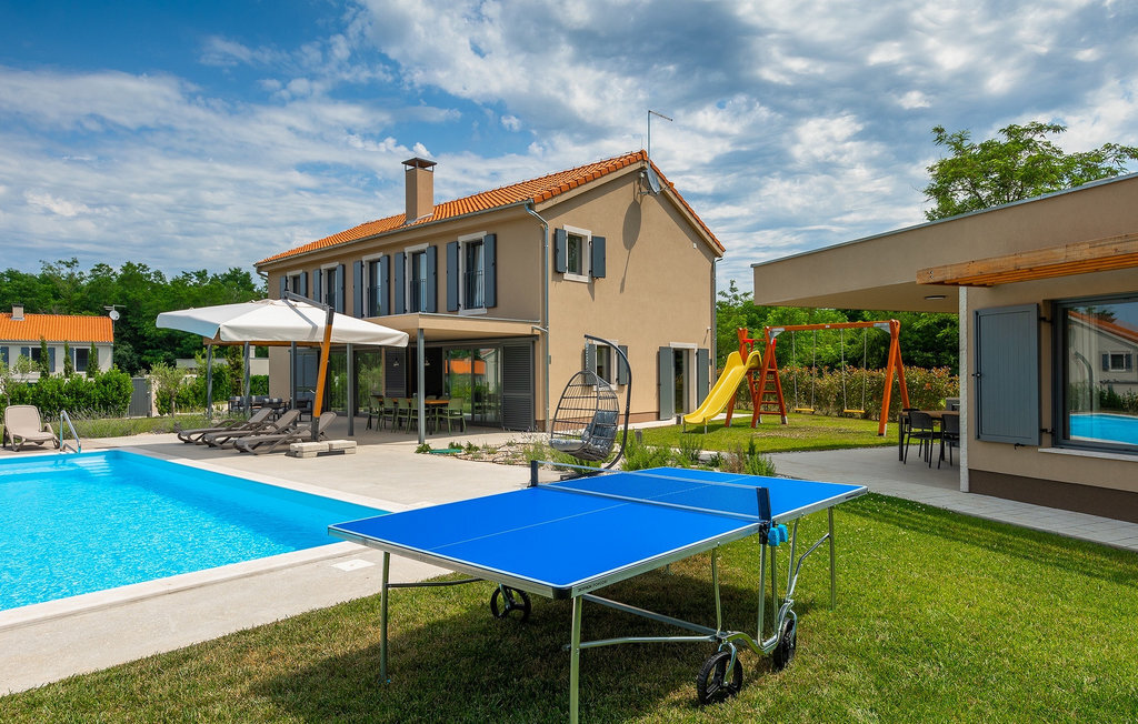 La Villa Pinca est entourée d'arbres verts et de nature qui, avec sa grande pelouse de jardin, créent une atmosphère idyllique pour se détendre. La piscine privée vous rafraîchit après un bain de soleil sur l'une des 8 chaises longues. Pendant que vous vous détendez au bord de la piscine, les enfants peuvent s'ébattre dans le jardin, jouer sur l'aire de jeux privée ou faire une partie de ping-pong. Dans une zone ombragée, juste à côté de l'aire de jeux, se trouve une cuisine extérieure avec barbecue. Une table à manger pouvant accueillir jusqu'à 10 convives est parfaite pour un repas à l'ombre, directement au bord de la piscine. À l'intérieur, vous trouverez un grand salon avec deux canapés, baigné de lumière naturelle et parfait pour les soirées cinéma et les discussions. Dans la même pièce, vous pouvez préparer un délicieux repas dans la cuisine avec îlot de cuisine et le déguster à la table à manger pouvant accueillir jusqu'à 10 personnes, à côté d'une grande fenêtre. À l'étage supérieur se trouvent trois chambres doubles confortables avec télévision et salle de bain privée. Une autre chambre double séparée est disponible dans un pavillon dans le jardin. Cette chambre dispose également de sa propre télévision et d'une salle de bain. La Villa Pinca est vraiment le choix parfait pour des vacances d'été en famille. La Villa Pinca est située dans le village de Vizinada, près de Porec. À seulement 30 minutes, vous pouvez visiter la ville antique de Porec, où vous pourrez voir le centre de la ville, la remarquable basilique d'Euphrasius, inscrite au patrimoine mondial de l'UNESCO et connue pour ses fascinantes mosaïques byzantines. Promenez-vous sur le front de mer animé, où les bateaux colorés et la mer Adriatique offrent une vue à couper le souffle. Une autre ville proche est Umag. Elle est connue pour ses vignobles et ses oliveraies, ses prairies et ses forêts. Nous vous recommandons de visiter les caves à vin de la famille et de déguster les célèbres délices istriens : Pâtes aux truffes, prosciutto et fromage, le tout accompagné d'un verre de la fameuse malvasia d'Istrie. Les charmantes rues pavées de la ville regorgent d'excellents restaurants, bars et cafés. Ici, vous pouvez découvrir les grottes d'Istrie, une belle nature verdoyante, des collines idylliques et des sites culturels tels que des églises, des chapelles et des sites archéologiques. À proximité se trouve le premier parc aquatique croate, Istralandia, où vous pourrez profiter d'activités aquatiques avec vos proches.