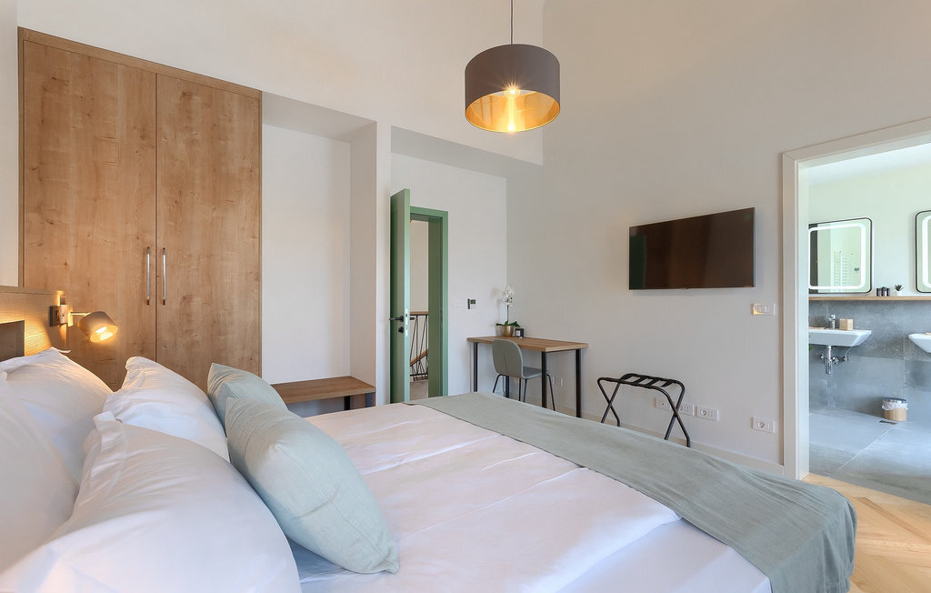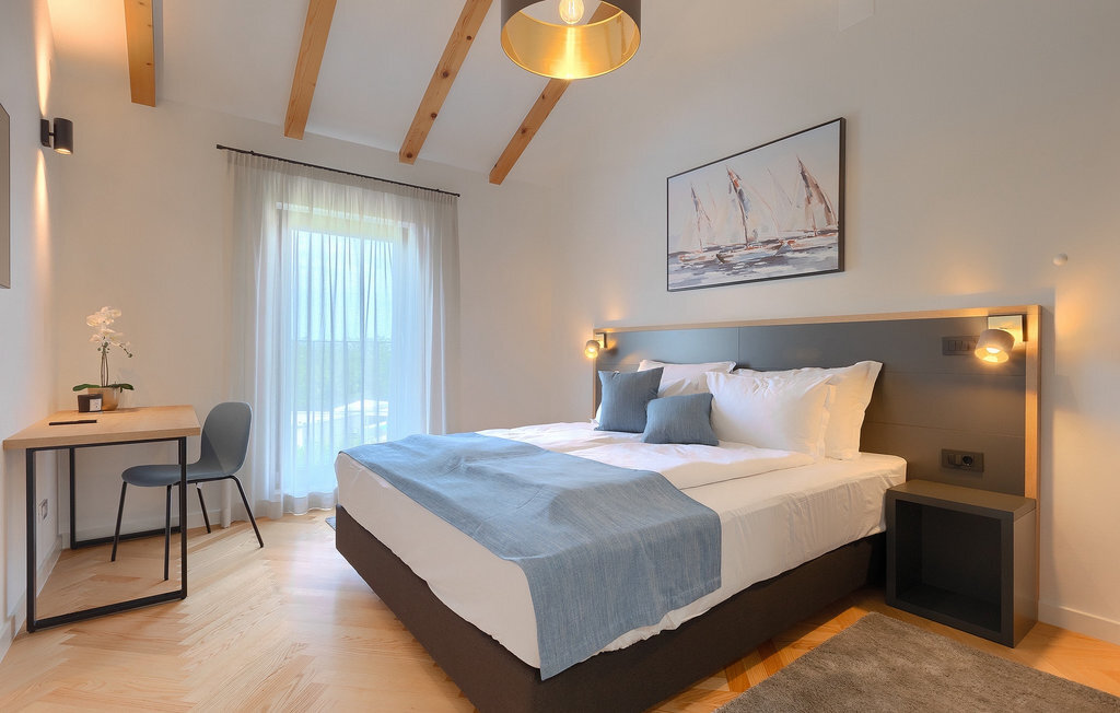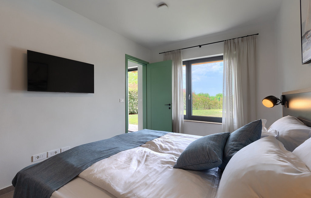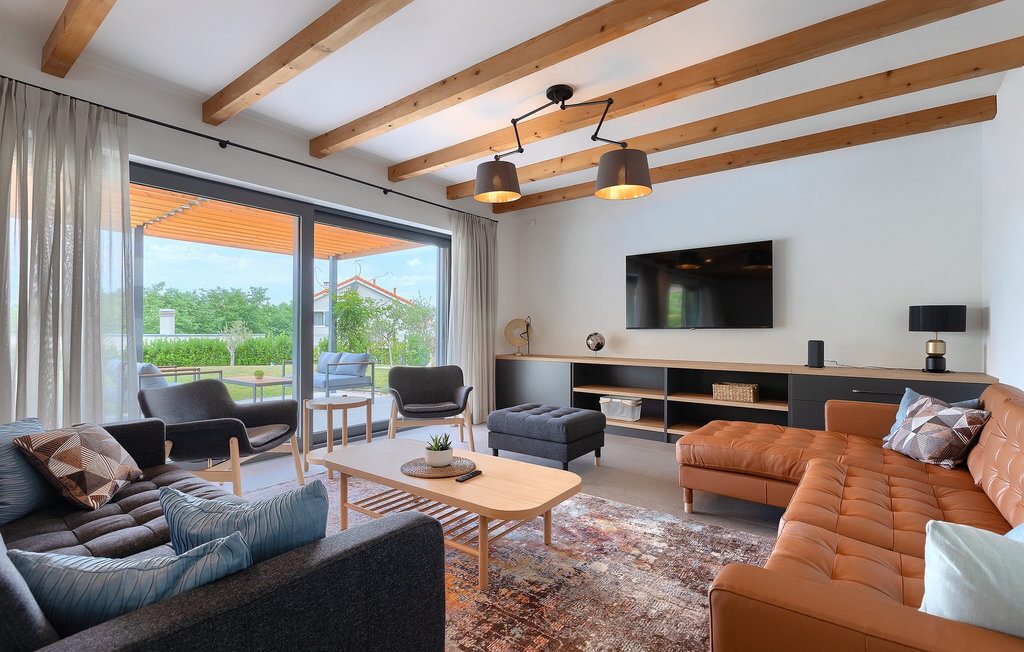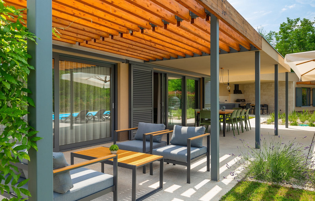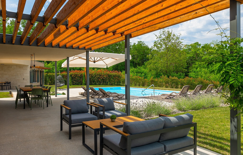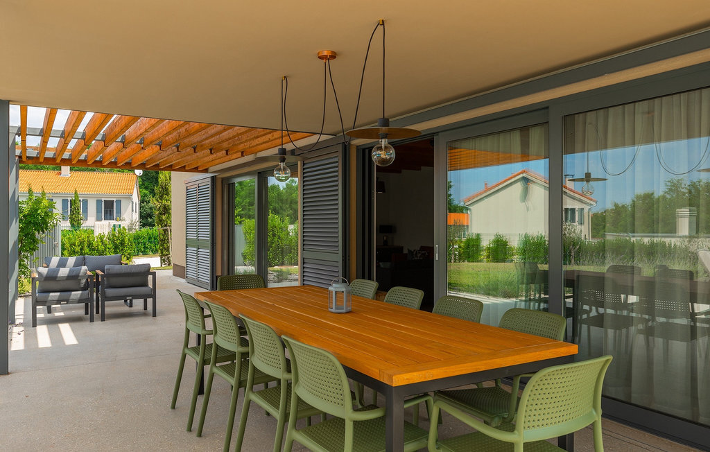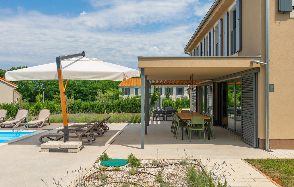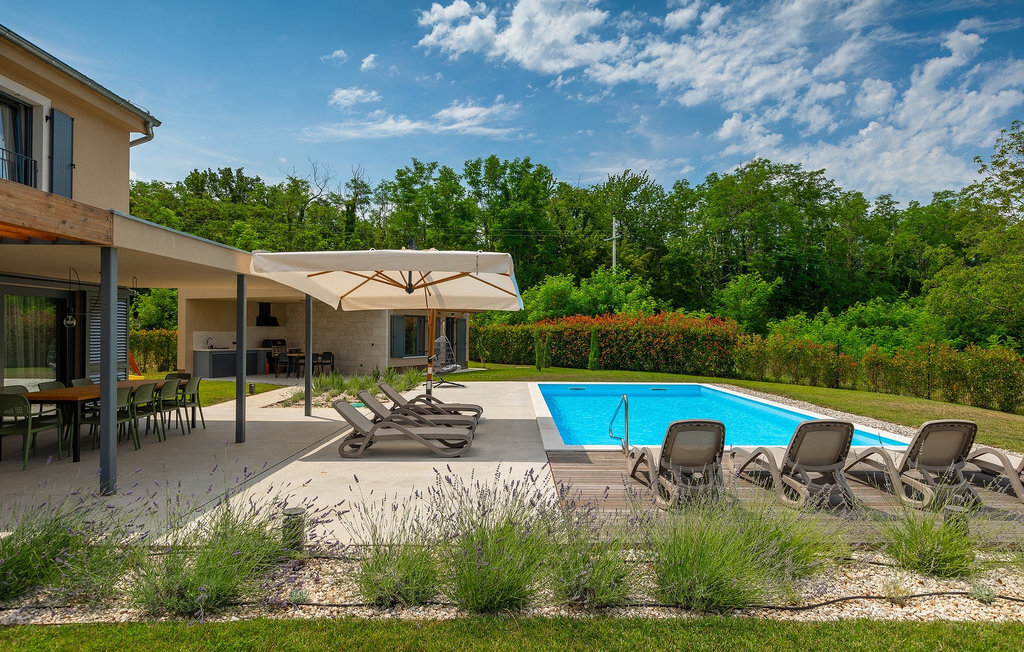 La Villa Pinca est entourée d'arbres verts et de nature qui, avec sa grande pelouse de jardin, créent une atmosphère idyllique pour se détendre. La piscine privée vous rafraîchit après un bain de soleil sur l'une des 8 chaises longues. Pendant que vous vous détendez au bord de la piscine, les enfants peuvent s'ébattre dans le jardin, jouer sur l'aire de jeux privée ou faire une partie de ping-pong. Dans une zone ombragée, juste à côté de l'aire de jeux, se trouve une cuisine extérieure avec barbecue. Une table à manger pouvant accueillir jusqu'à 10 convives est parfaite pour un repas à l'ombre, directement au bord de la piscine. À l'intérieur, vous trouverez un grand salon avec deux canapés, baigné de lumière naturelle et parfait pour les soirées cinéma et les discussions. Dans la même pièce, vous pouvez préparer un délicieux repas dans la cuisine avec îlot de cuisine et le déguster à la table à manger pouvant accueillir jusqu'à 10 personnes, à côté d'une grande fenêtre. À l'étage supérieur se trouvent trois chambres doubles confortables avec télévision et salle de bain privée. Une autre chambre double séparée est disponible dans un pavillon dans le jardin. Cette chambre dispose également de sa propre télévision et d'une salle de bain. La Villa Pinca est vraiment le choix parfait pour des vacances d'été en famille. La Villa Pinca est située dans le village de Vizinada, près de Porec. À seulement 30 minutes, vous pouvez visiter la ville antique de Porec, où vous pourrez voir le centre de la ville, la remarquable basilique d'Euphrasius, inscrite au patrimoine mondial de l'UNESCO et connue pour ses fascinantes mosaïques byzantines. Promenez-vous sur le front de mer animé, où les bateaux colorés et la mer Adriatique offrent une vue à couper le souffle. Une autre ville proche est Umag. Elle est connue pour ses vignobles et ses oliveraies, ses prairies et ses forêts. Nous vous recommandons de visiter les caves à vin de la famille et de déguster les célèbres délices istriens : Pâtes aux truffes, prosciutto et fromage, le tout accompagné d'un verre de la fameuse malvasia d'Istrie. Les charmantes rues pavées de la ville regorgent d'excellents restaurants, bars et cafés. Ici, vous pouvez découvrir les grottes d'Istrie, une belle nature verdoyante, des collines idylliques et des sites culturels tels que des églises, des chapelles et des sites archéologiques. À proximité se trouve le premier parc aquatique croate, Istralandia, où vous pourrez profiter d'activités aquatiques avec vos proches.