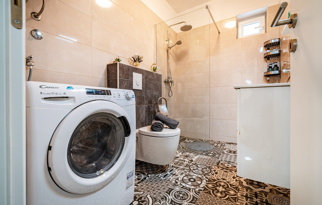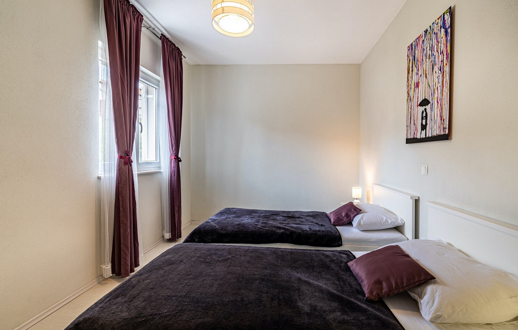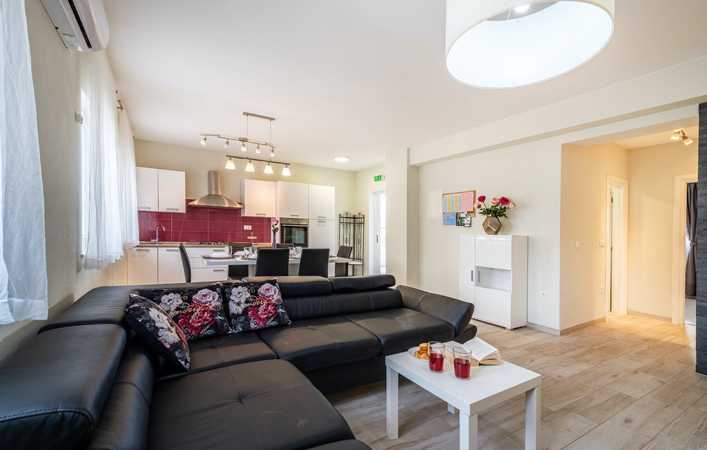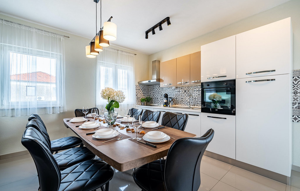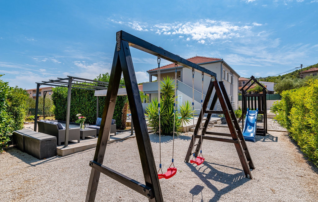 Vous souhaitez passer vos vacances dans une villa proche de la mer, avec piscine privée, 5 chambres à coucher, idéale pour 10 personnes ? C'est ce que vous propose la Villa Rozarija, et bien plus encore. Sur le terrain de la villa, une cour intérieure vous accueille, où vous pouvez vous détendre sur des chaises longues au bord de la piscine rafraîchissante. Il y a également une aire de jeux pour les enfants, où les petits peuvent s'amuser pendant que les adultes peuvent s'installer confortablement sur les meubles de jardin. Dans la villa, vous avez deux appartements séparés, l'un au rez-de-chaussée, l'autre à l'étage. Chacun dispose d'un grand espace ouvert avec cuisine, salle à manger et salon. Au rez-de-chaussée, vous trouverez 2 chambres à coucher, 2 salles de bains et un point fort particulier : une salle de fitness avec des équipements de fitness. À l'étage se trouvent les 3 autres chambres et 2 salles de bains. En outre, il convient de mentionner qu'il y a quelques jeux de société pour adultes et enfants. Vous avez également la possibilité d'utiliser le barbecue et de prendre vos repas dans la salle à manger en plein air. Réservez la Villa Rozarija pour vos prochaines vacances, car tout cela est prêt à vous faire passer d'agréables momentsLa Villa Rozarija est située près de Trogir, sur l'île d'iovo, reliée au continent par un pont. Le paysage vallonné, les pins et les nombreuses plages offrent ensemble une ambiance typiquement dalmate. En outre, cette région est un lieu idéal pour des vacances reposantes, mais en même temps, on peut y trouver de l'aventure. Outre de nombreuses belles plages et baies cachées, l'île d'iovo offre de nombreuses activités comme le jet ski, le quad, le parasailing ou la planche à voile. N'oubliez pas de visiter les magnifiques bâtiments historiques et architecturaux des célèbres sites de Trogir et de Split, classés au patrimoine mondial de l'UNESCO. Flânez dans leurs ruelles, dînez dans des tavernes traditionnelles et profitez de leur atmosphère chaleureuse.