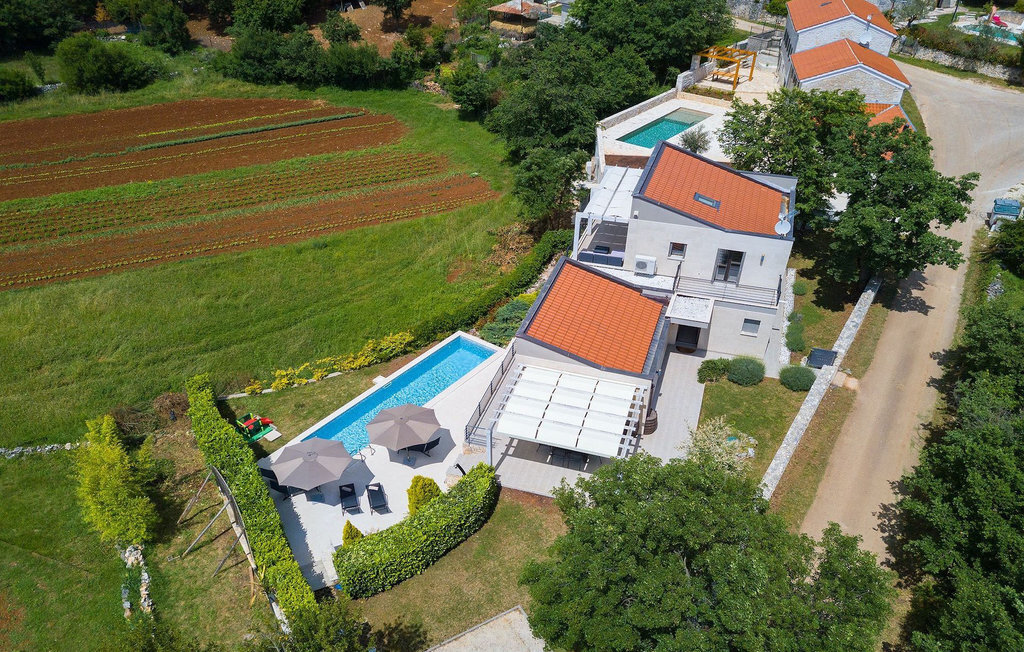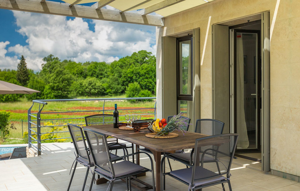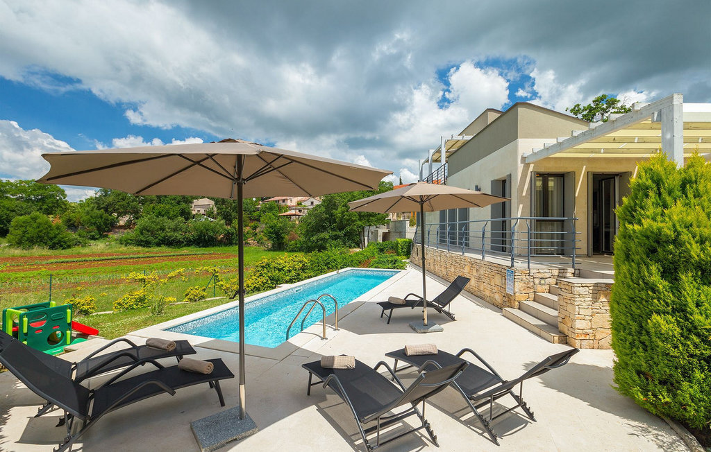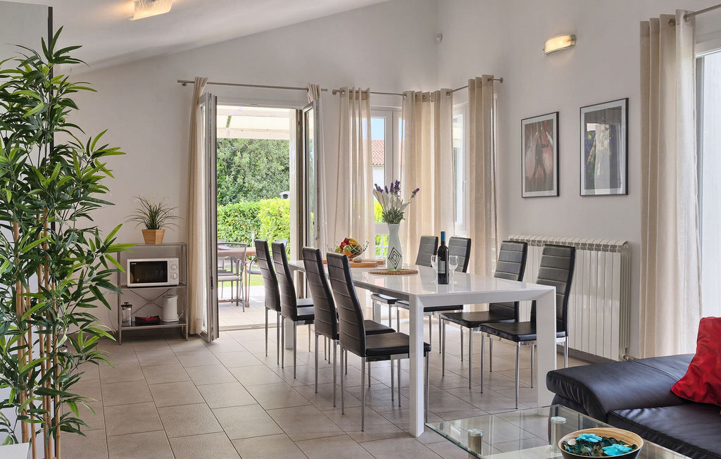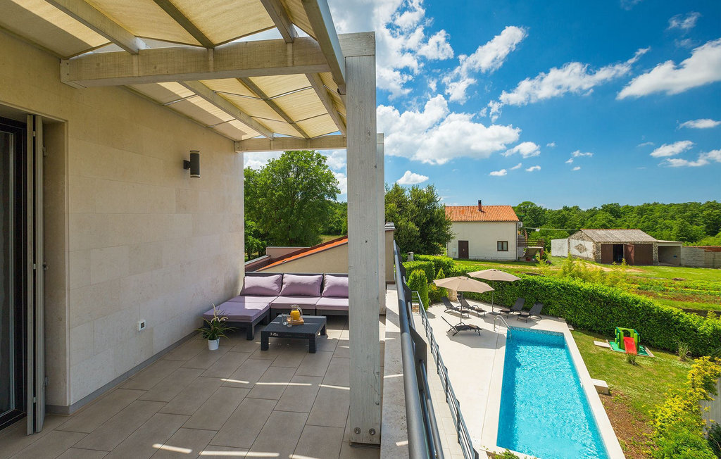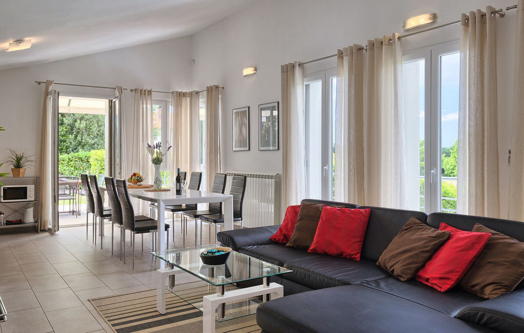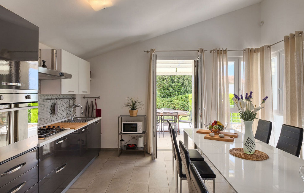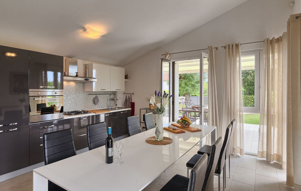 La villa Casa Enro est située au cœur de l'Istrie. C'est l'endroit parfait où vous pourrez profiter de vos prochaines vacances. La villa peut accueillir jusqu'à 7 personnes dans un espace de vie de 146 m2. L'intérieur ouvert se compose d'une cuisine entièrement équipée avec coin repas et d'un salon chic où vous pourrez vous détendre en lisant votre livre préféré. Le rez-de-chaussée dispose d'une chambre à coucher confortable et d'une salle de bains. À l'étage, il y a deux autres chambres à coucher et une salle de bain. Une chambre dispose de deux lits simples et l'autre d'un lit double et d'un petit salon avec télévision. Au premier étage de la villa se trouve également une belle terrasse où vous pourrez vous détendre avec votre famille et vos amis autour d'un verre de la meilleure malvazija d'Istrie. Le rez-de-chaussée a un accès direct au beau jardin et à la piscine. La piscine fait 24m2 et est le rafraîchissement idéal lors des chaudes journées d'été. L'espace extérieur dispose d'une salle à manger où vous pourrez déguster vos repas avec une belle vue.