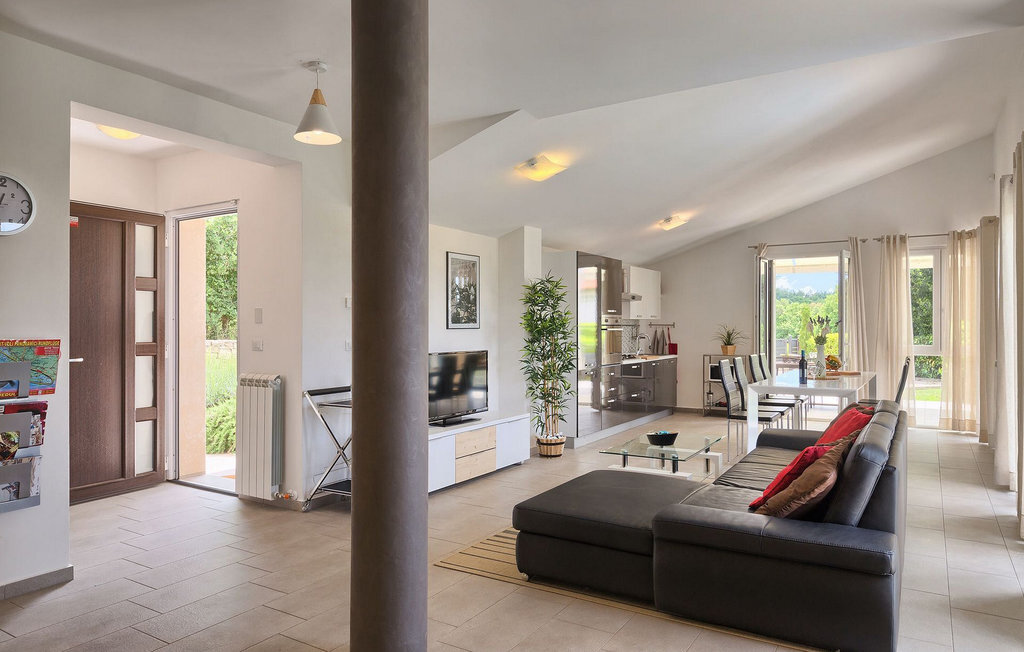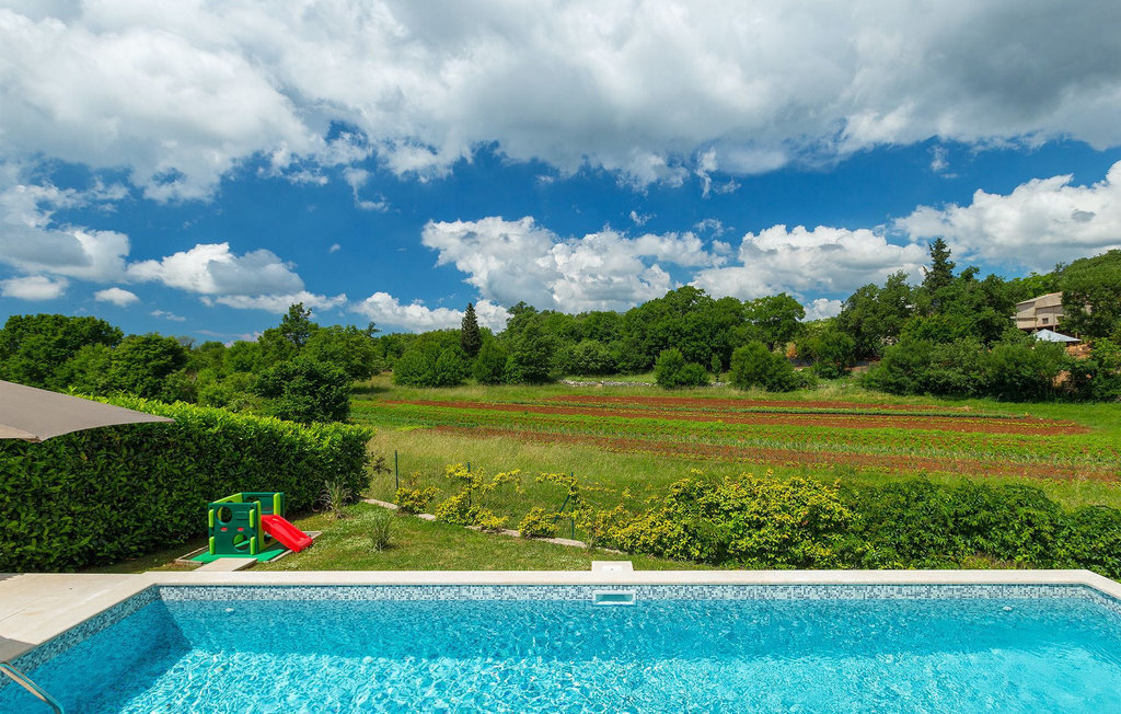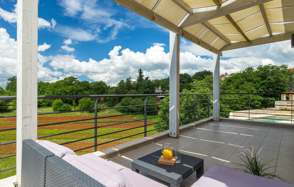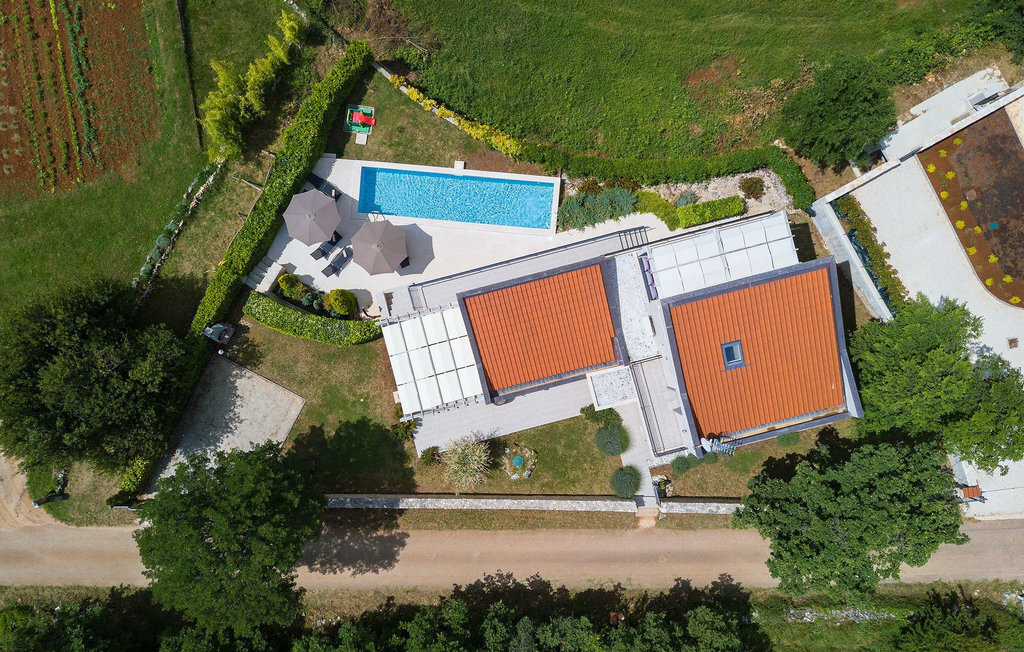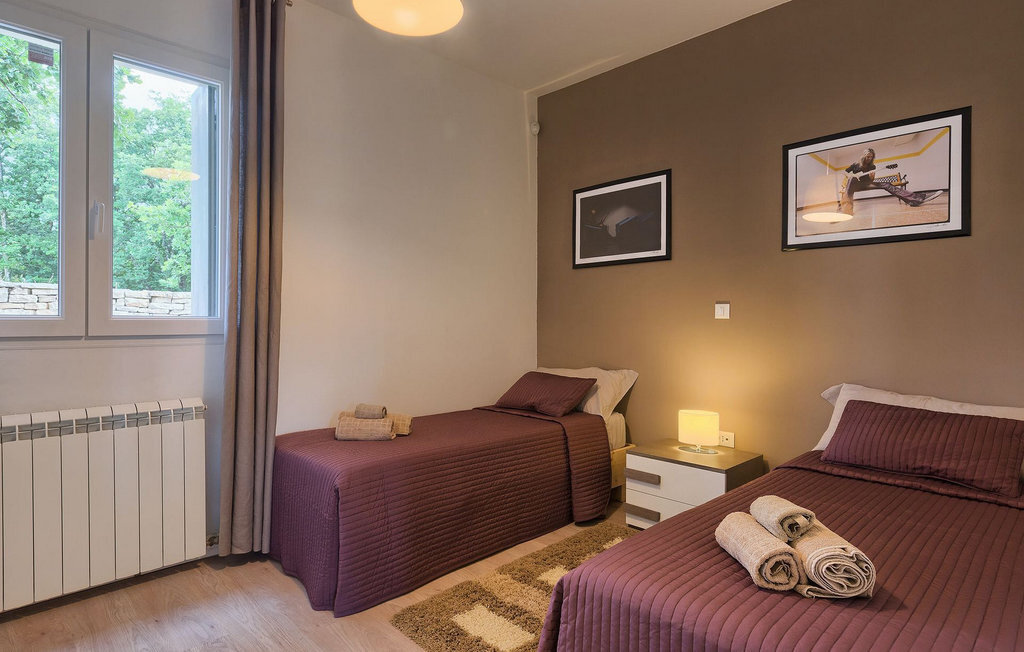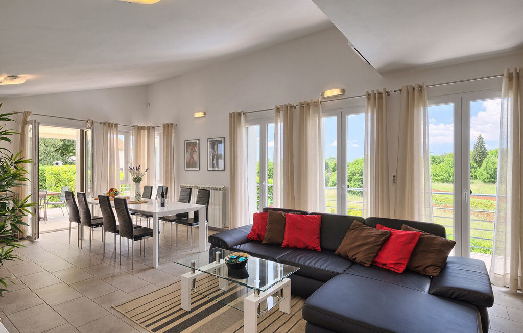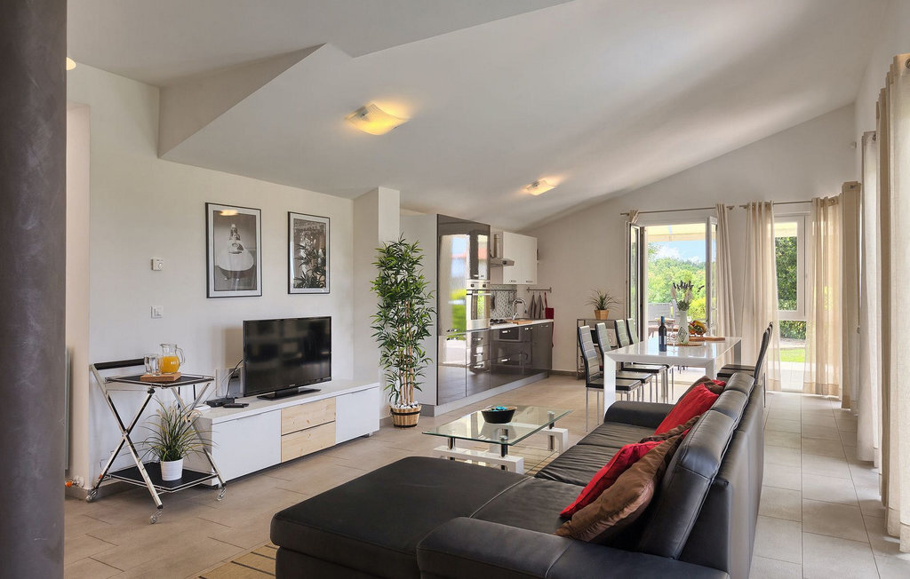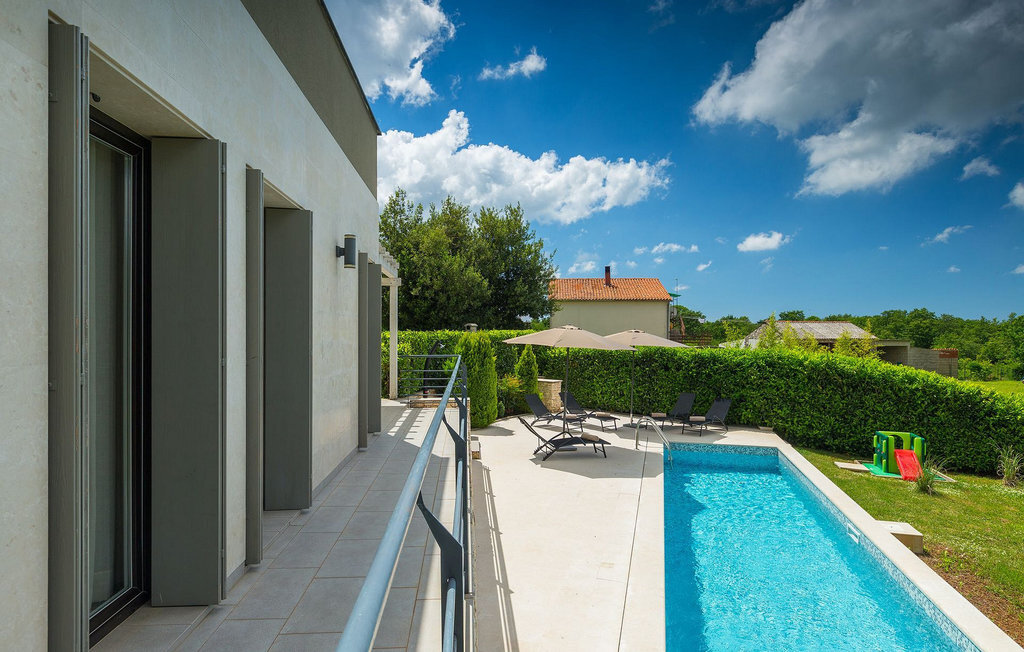 La villa Casa Enro est située au cœur de l'Istrie. C'est l'endroit parfait où vous pourrez profiter de vos prochaines vacances. La villa peut accueillir jusqu'à 7 personnes dans un espace de vie de 146 m2. L'intérieur ouvert se compose d'une cuisine entièrement équipée avec coin repas et d'un salon chic où vous pourrez vous détendre en lisant votre livre préféré. Le rez-de-chaussée dispose d'une chambre à coucher confortable et d'une salle de bains. À l'étage, il y a deux autres chambres à coucher et une salle de bain. Une chambre dispose de deux lits simples et l'autre d'un lit double et d'un petit salon avec télévision. Au premier étage de la villa se trouve également une belle terrasse où vous pourrez vous détendre avec votre famille et vos amis autour d'un verre de la meilleure malvazija d'Istrie. Le rez-de-chaussée a un accès direct au beau jardin et à la piscine. La piscine fait 24m2 et est le rafraîchissement idéal lors des chaudes journées d'été. L'espace extérieur dispose d'une salle à manger où vous pourrez déguster vos repas avec une belle vue.