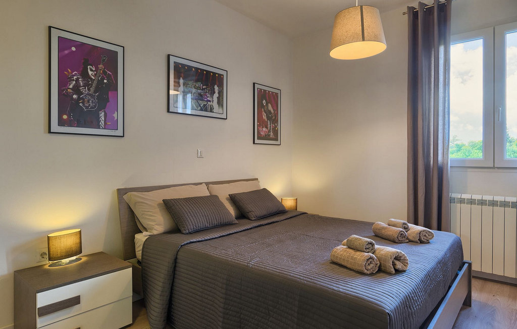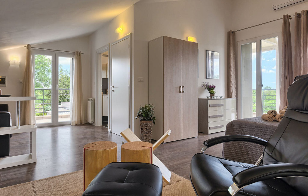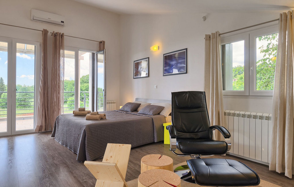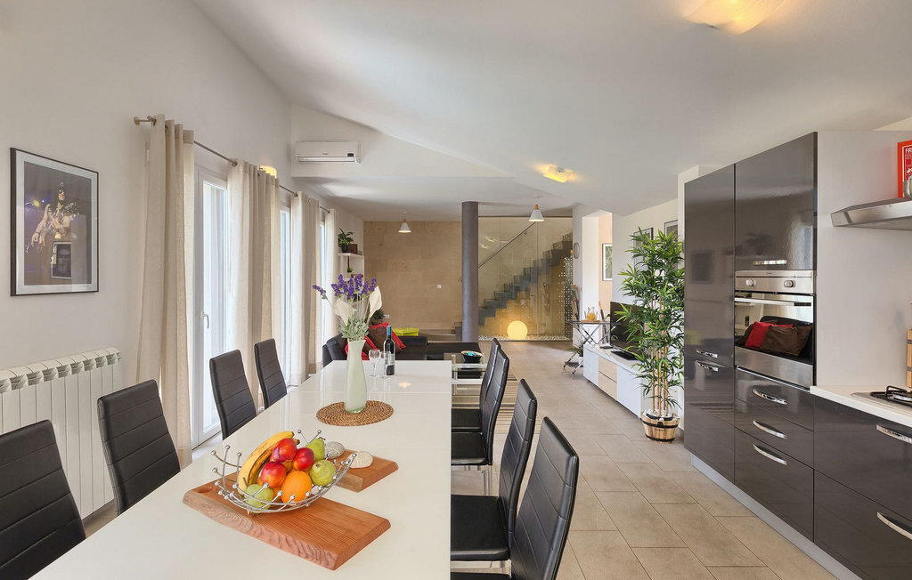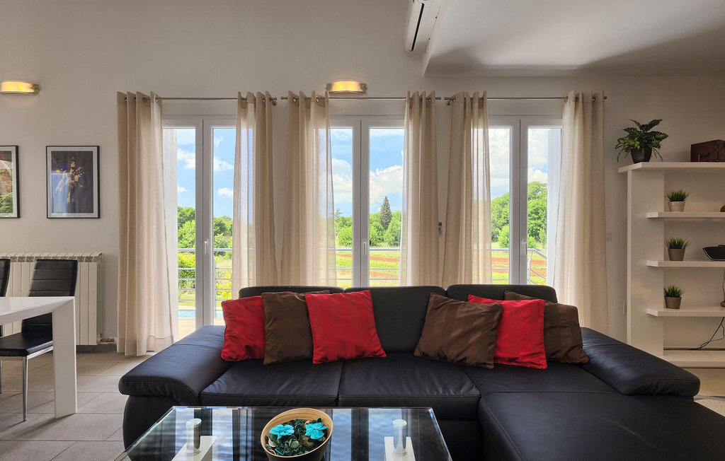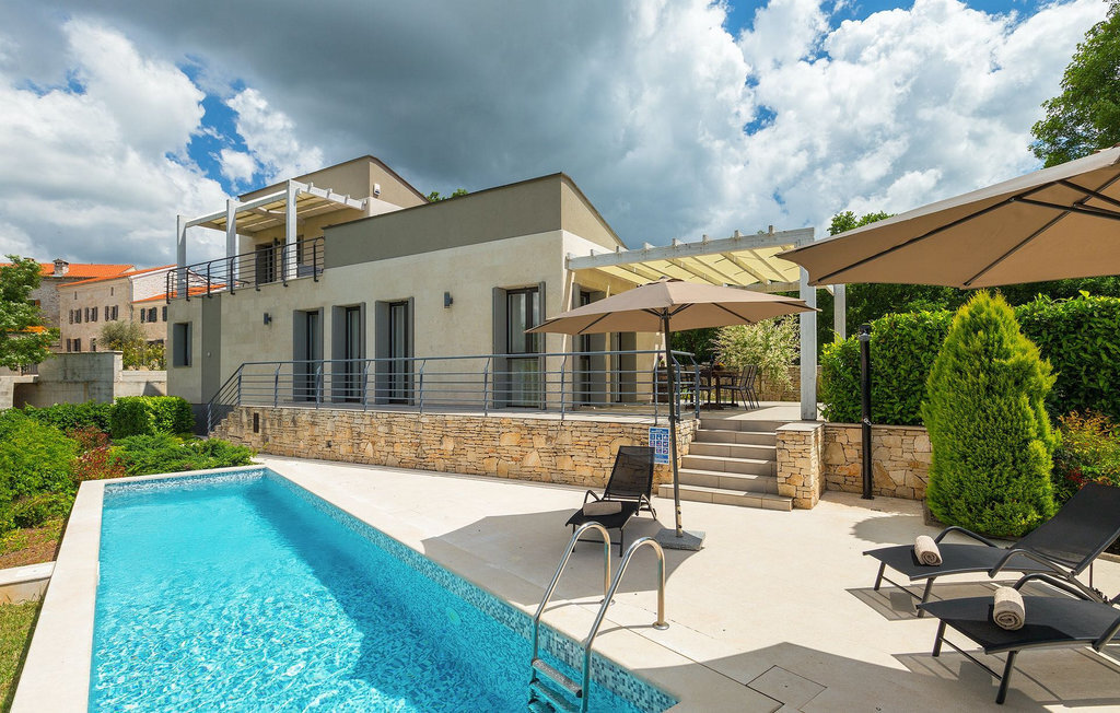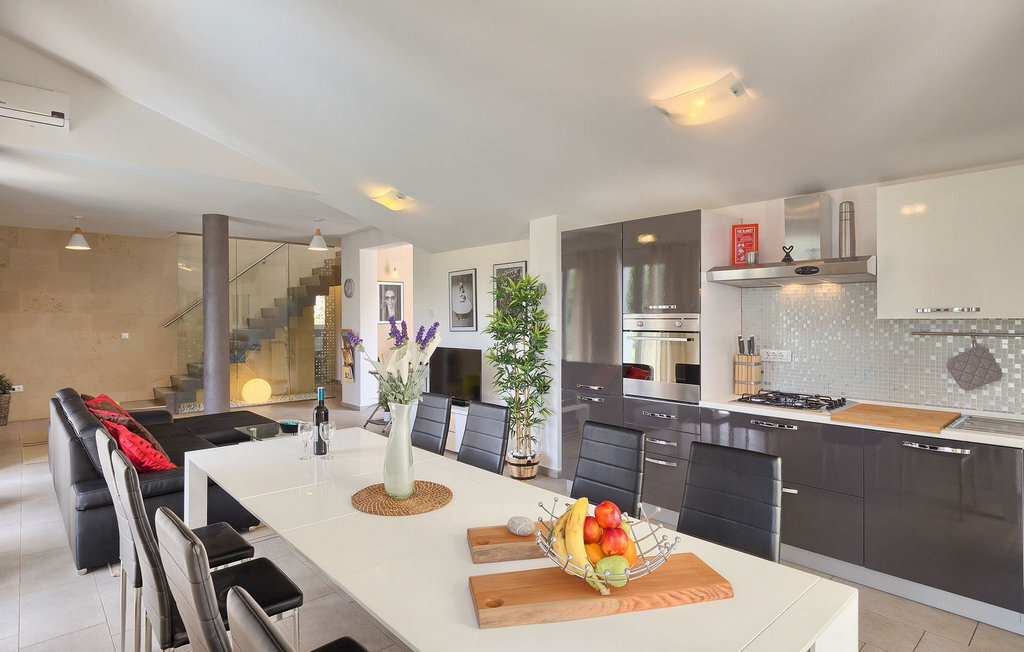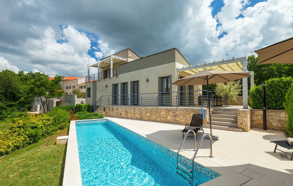 La villa Casa Enro est située au cœur de l'Istrie. C'est l'endroit parfait où vous pourrez profiter de vos prochaines vacances. La villa peut accueillir jusqu'à 7 personnes dans un espace de vie de 146 m2. L'intérieur ouvert se compose d'une cuisine entièrement équipée avec coin repas et d'un salon chic où vous pourrez vous détendre en lisant votre livre préféré. Le rez-de-chaussée dispose d'une chambre à coucher confortable et d'une salle de bains. À l'étage, il y a deux autres chambres à coucher et une salle de bain. Une chambre dispose de deux lits simples et l'autre d'un lit double et d'un petit salon avec télévision. Au premier étage de la villa se trouve également une belle terrasse où vous pourrez vous détendre avec votre famille et vos amis autour d'un verre de la meilleure malvazija d'Istrie. Le rez-de-chaussée a un accès direct au beau jardin et à la piscine. La piscine fait 24m2 et est le rafraîchissement idéal lors des chaudes journées d'été. L'espace extérieur dispose d'une salle à manger où vous pourrez déguster vos repas avec une belle vue.