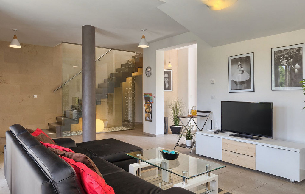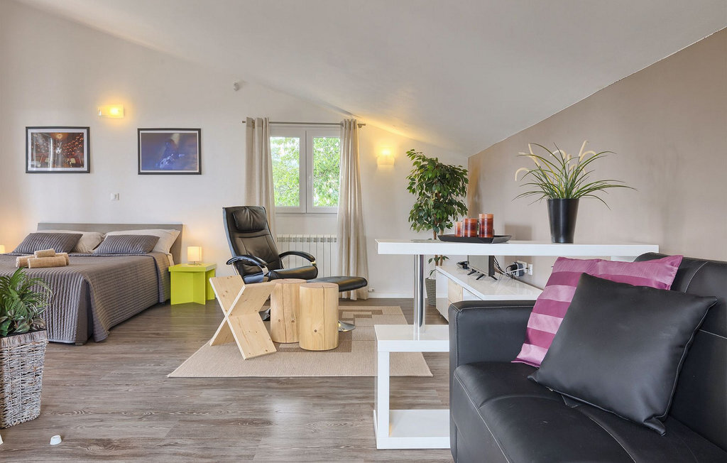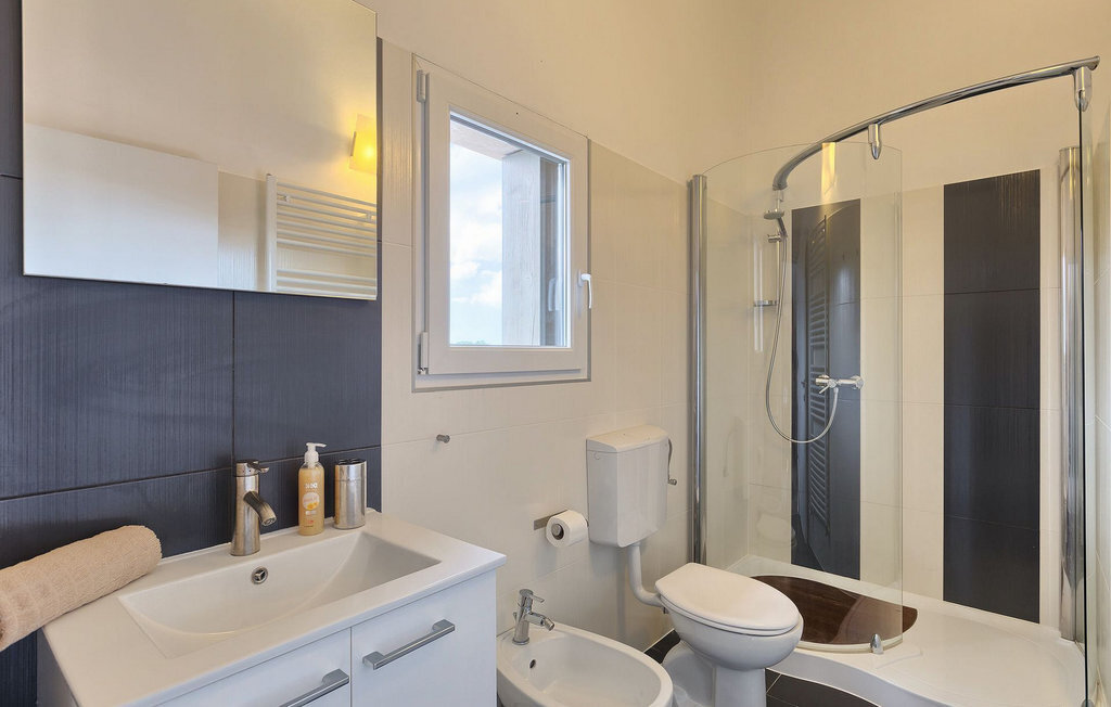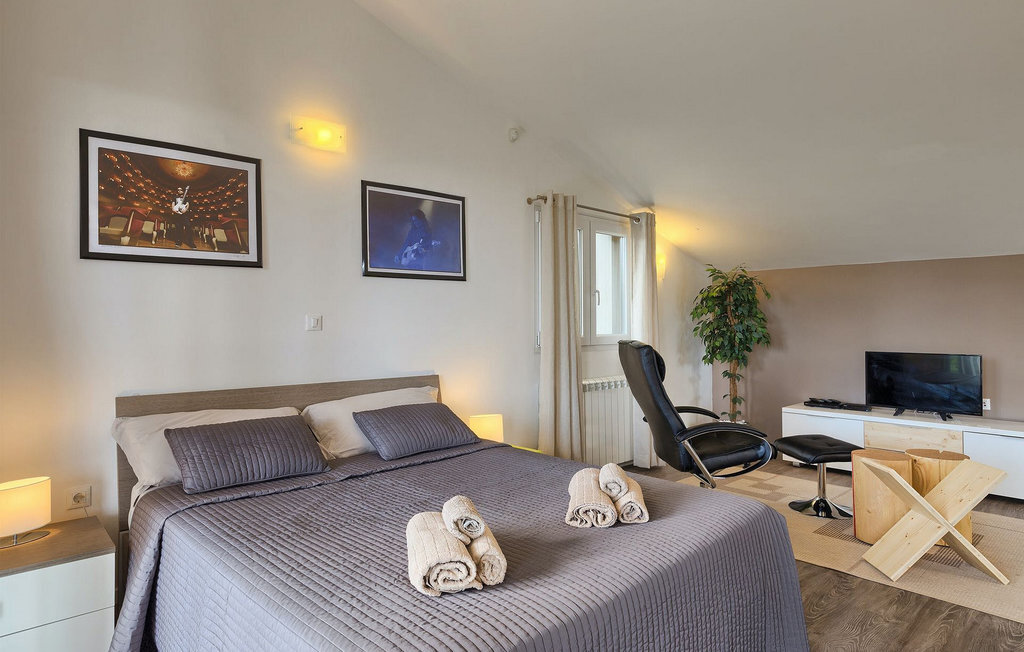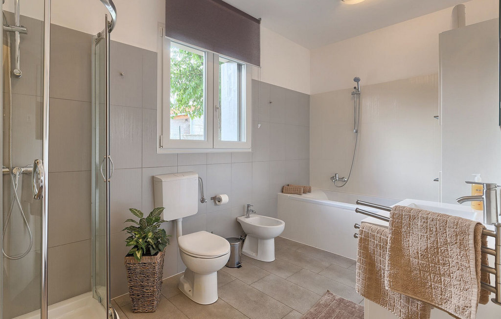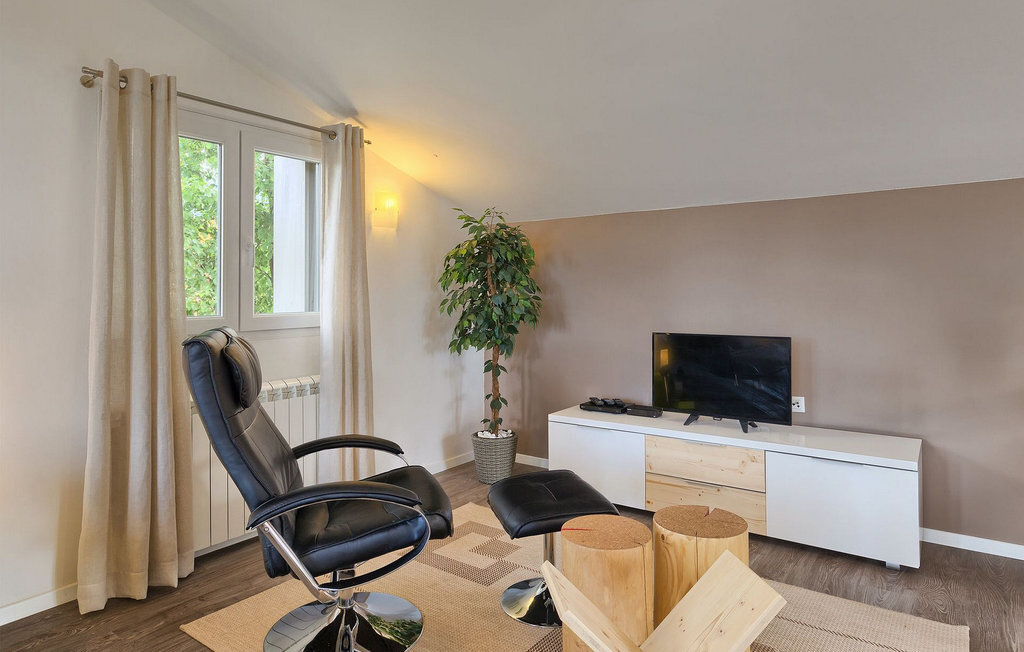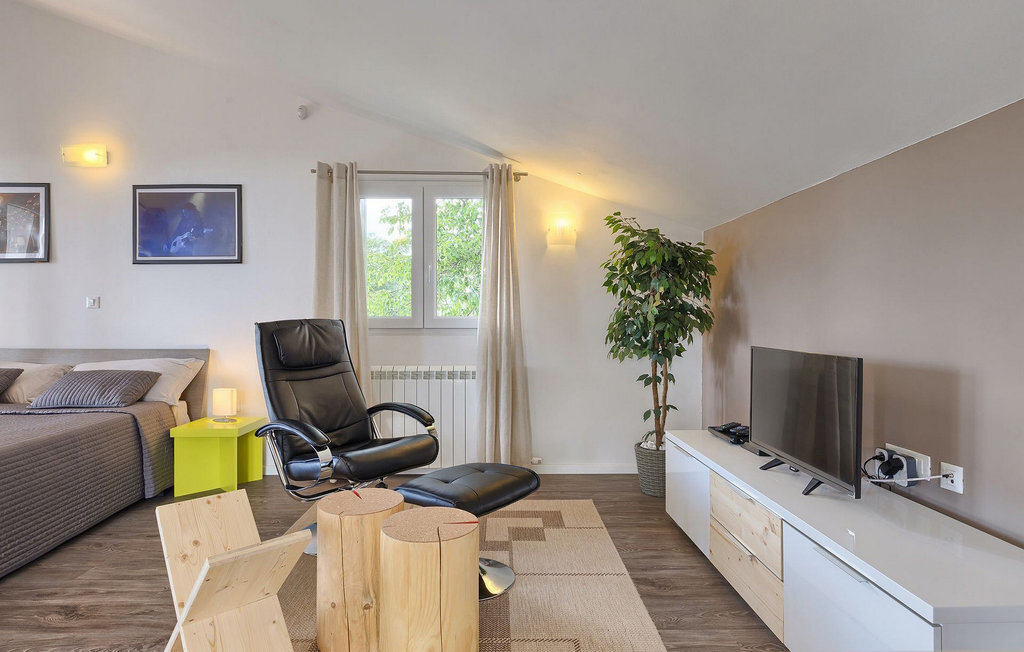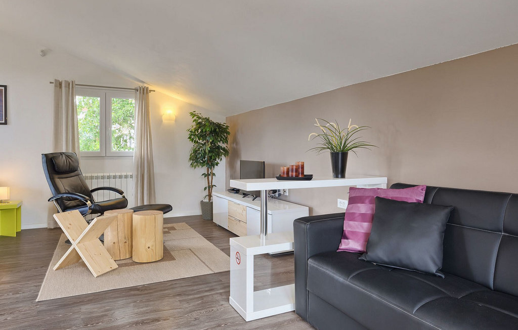 La villa Casa Enro est située au cœur de l'Istrie. C'est l'endroit parfait où vous pourrez profiter de vos prochaines vacances. La villa peut accueillir jusqu'à 7 personnes dans un espace de vie de 146 m2. L'intérieur ouvert se compose d'une cuisine entièrement équipée avec coin repas et d'un salon chic où vous pourrez vous détendre en lisant votre livre préféré. Le rez-de-chaussée dispose d'une chambre à coucher confortable et d'une salle de bains. À l'étage, il y a deux autres chambres à coucher et une salle de bain. Une chambre dispose de deux lits simples et l'autre d'un lit double et d'un petit salon avec télévision. Au premier étage de la villa se trouve également une belle terrasse où vous pourrez vous détendre avec votre famille et vos amis autour d'un verre de la meilleure malvazija d'Istrie. Le rez-de-chaussée a un accès direct au beau jardin et à la piscine. La piscine fait 24m2 et est le rafraîchissement idéal lors des chaudes journées d'été. L'espace extérieur dispose d'une salle à manger où vous pourrez déguster vos repas avec une belle vue.