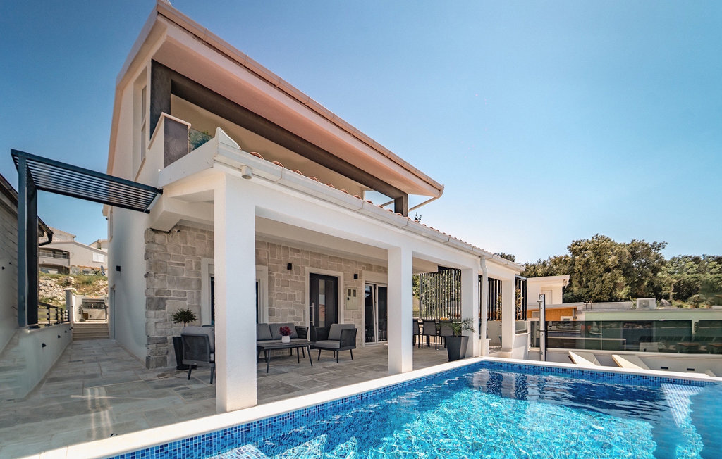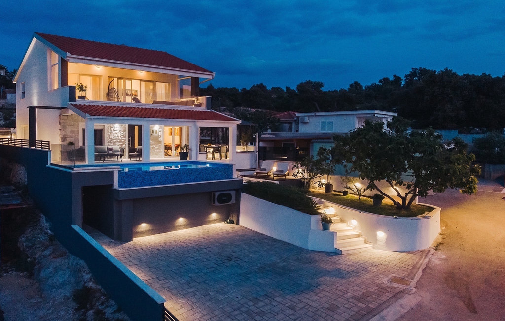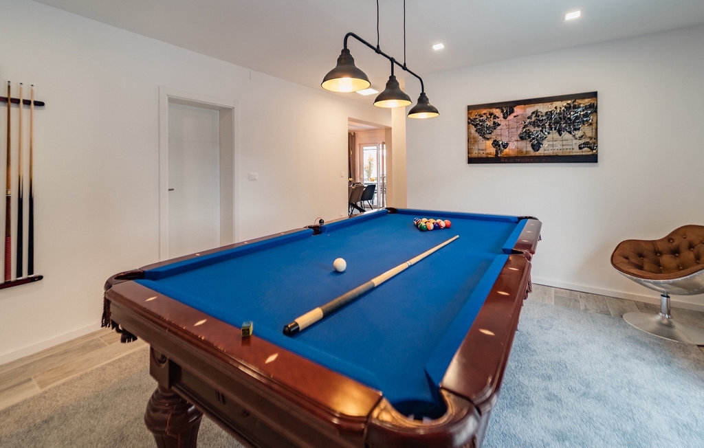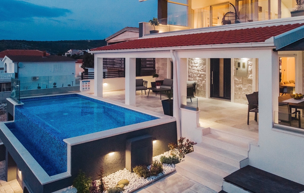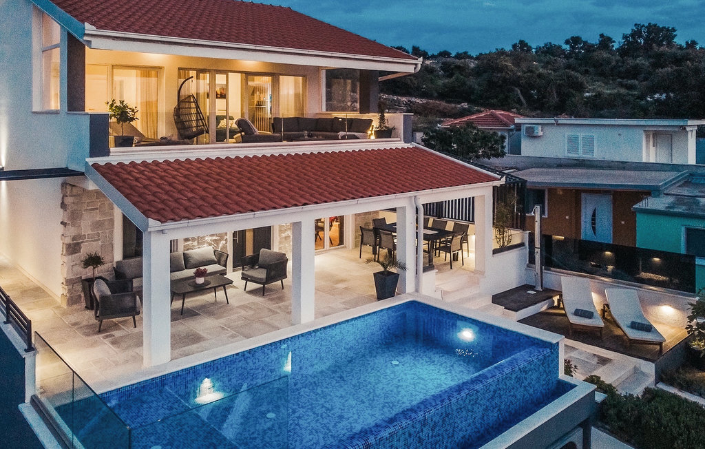 Vous souhaitez passer vos vacances dans une villa située à 90 mètres de la mer avec une vue magnifique ? Alors, ne manquez pas de jeter un coup d'œil à la Villa Miracle. Cette villa est le choix parfait pour un groupe de 8 personnes. La première chose que vous remarquerez en arrivant sur la propriété est probablement la magnifique piscine à débordement avec vue sur les environs. À l'intérieur de la villa, des chambres modernes et intemporelles vous invitent à vous détendre. Au rez-de-chaussée, vous trouverez une cuisine et une salle à manger avec une télévision à côté. Si vous souhaitez dîner à l'extérieur, il y a une autre table à manger en plein air ainsi qu'un barbecue. Vous cherchez à vous divertir ? Rendez-vous dans la salle de divertissement et jouez au billard ou aux fléchettes. Une table de bar et une télévision ajoutent une touche spéciale à cette pièce. Une des trois chambres à coucher se trouve au rez-de-chaussée, tandis que les autres se trouvent à l'étage supérieur, dont l'une a un accès direct à la terrasse. Au premier étage, vous trouverez également le salon - installez-vous confortablement sur le canapé ou sur la grande terrasse avec meubles de jardin et chaises longues. Détendez-vous, profitez de la vue à couper le souffle et passez des vacances inoubliables - réservez la Villa Miracle dès maintenantVilla Miracle se trouve dans le petit village de Raanj près de Split. Il s'agit d'un petit village de pêcheurs traditionnel qui est devenu une destination de vacances très populaire. Le paysage vallonné, les pins ainsi que les nombreuses plages offrent ensemble une ambiance typiquement dalmate. Située entre Rogoznica et Primoten, elle constitue un point de départ idéal pour des excursions d'une journée. Ne manquez pas de visiter des sites célèbres comme le lac de l'Œil-de-Dragon à Rogoznica et la statue de la Vierge de Lorette à Primoten, où vous serez émerveillé par la vue à couper le souffle. Profitez également de la possibilité de vous promener dans les rues d'ibenik et de Split et de visiter le parc national de Krka.