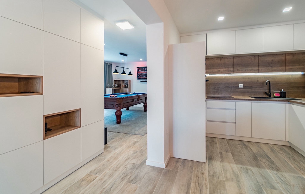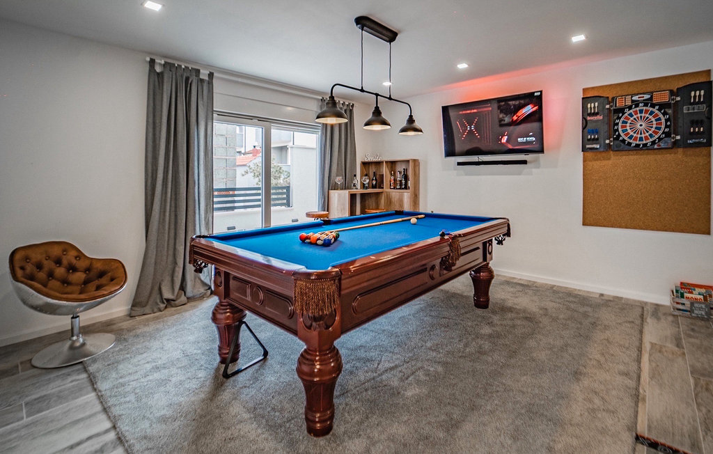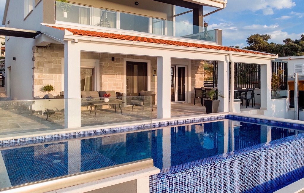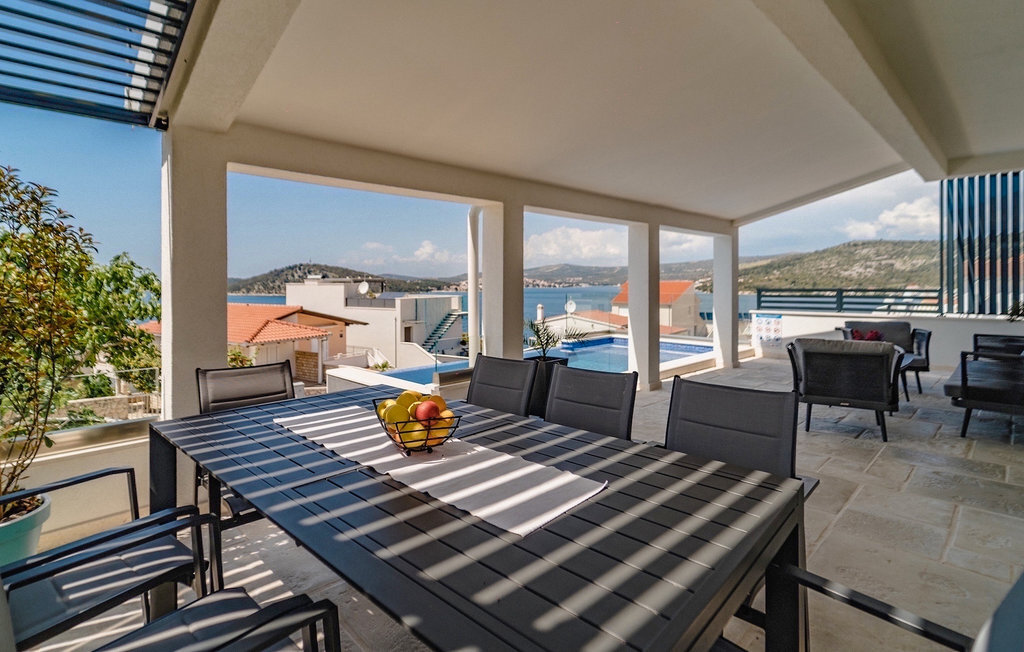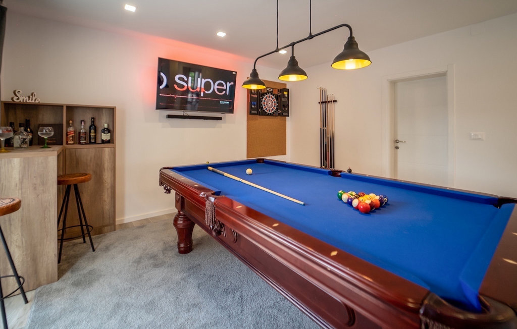 Vous souhaitez passer vos vacances dans une villa située à 90 mètres de la mer avec une vue magnifique ? Alors, ne manquez pas de jeter un coup d'œil à la Villa Miracle. Cette villa est le choix parfait pour un groupe de 8 personnes. La première chose que vous remarquerez en arrivant sur la propriété est probablement la magnifique piscine à débordement avec vue sur les environs. À l'intérieur de la villa, des chambres modernes et intemporelles vous invitent à vous détendre. Au rez-de-chaussée, vous trouverez une cuisine et une salle à manger avec une télévision à côté. Si vous souhaitez dîner à l'extérieur, il y a une autre table à manger en plein air ainsi qu'un barbecue. Vous cherchez à vous divertir ? Rendez-vous dans la salle de divertissement et jouez au billard ou aux fléchettes. Une table de bar et une télévision ajoutent une touche spéciale à cette pièce. Une des trois chambres à coucher se trouve au rez-de-chaussée, tandis que les autres se trouvent à l'étage supérieur, dont l'une a un accès direct à la terrasse. Au premier étage, vous trouverez également le salon - installez-vous confortablement sur le canapé ou sur la grande terrasse avec meubles de jardin et chaises longues. Détendez-vous, profitez de la vue à couper le souffle et passez des vacances inoubliables - réservez la Villa Miracle dès maintenantVilla Miracle se trouve dans le petit village de Raanj près de Split. Il s'agit d'un petit village de pêcheurs traditionnel qui est devenu une destination de vacances très populaire. Le paysage vallonné, les pins ainsi que les nombreuses plages offrent ensemble une ambiance typiquement dalmate. Située entre Rogoznica et Primoten, elle constitue un point de départ idéal pour des excursions d'une journée. Ne manquez pas de visiter des sites célèbres comme le lac de l'Œil-de-Dragon à Rogoznica et la statue de la Vierge de Lorette à Primoten, où vous serez émerveillé par la vue à couper le souffle. Profitez également de la possibilité de vous promener dans les rues d'ibenik et de Split et de visiter le parc national de Krka.