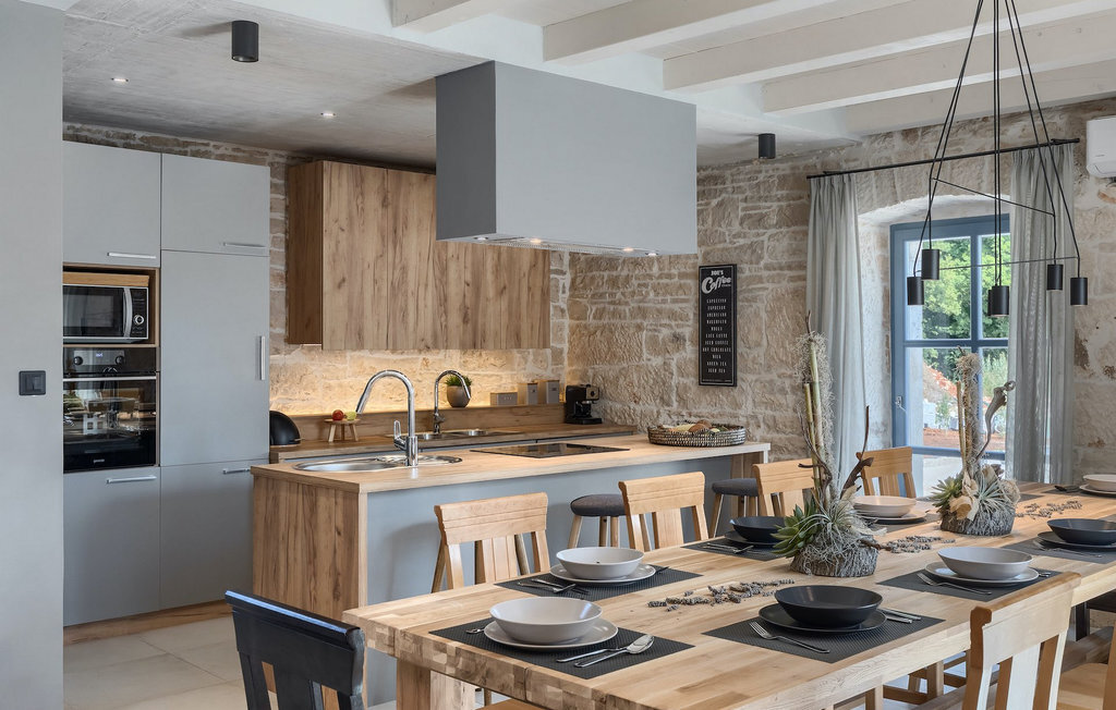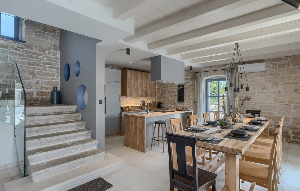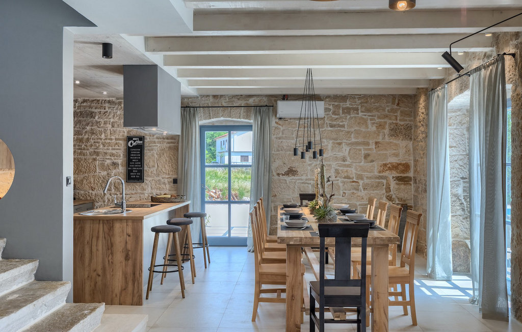 La Villa Pi est une charmante villa en pierre située à la périphérie du pittoresque village de Tinjan, dans le centre de l'Istrie. Il s'agit d'une vieille maison en pierre de plus de 70 ans qui a été entièrement rénovée en 2019.