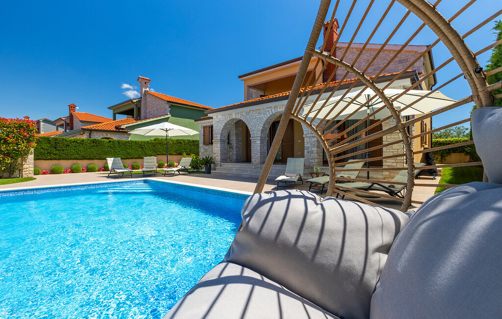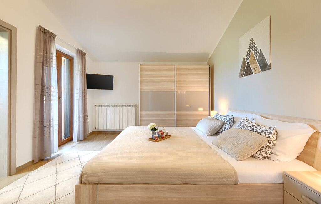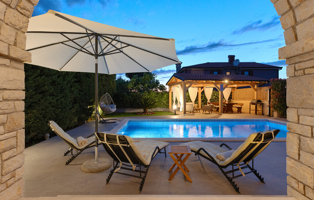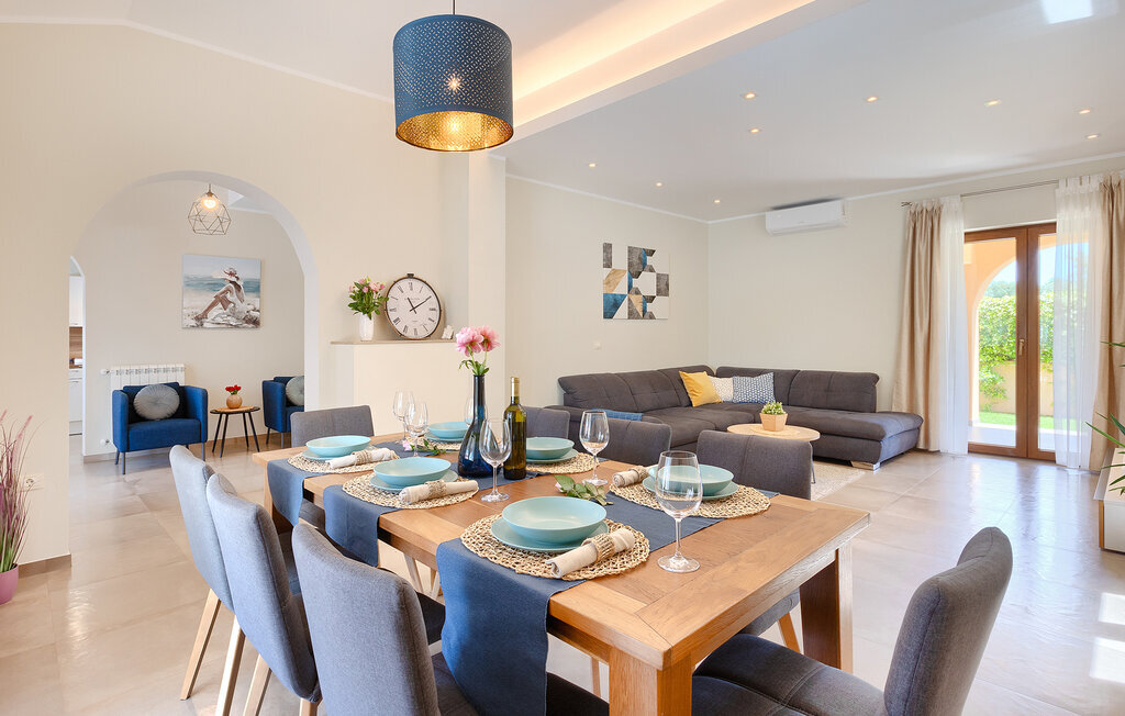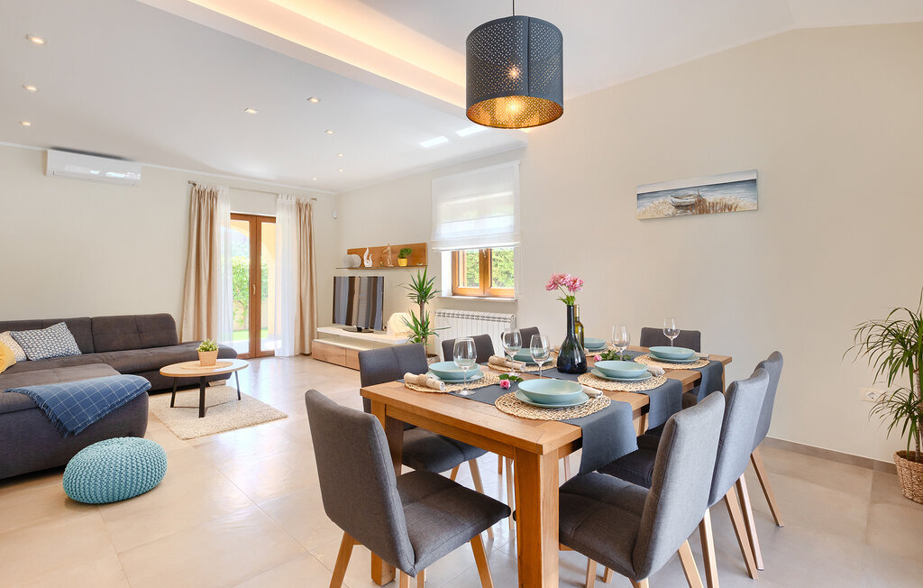 La charmante Villa Aurora est une villa familiale située dans un paysage istrien à couper le souffle, avec vue sur la mer d'un côté et sur le grand jardin d'oliviers de l'autre, qui compte 8000 oliviers. La villa peut accueillir jusqu'à 8 personnes. Le rez-de-chaussée est réparti entre la cuisine entièrement équipée, un salon et une salle à manger spacieux, une salle de bain et l'une des trois chambres à coucher avec lit double. Le canapé du salon est assez grand pour accueillir deux personnes. L'étage supérieur se compose de deux chambres confortables, chacune avec un lit double et une salle de bain privée avec douche. Le balcon à l'étage est le meilleur endroit pour commencer la journée avec une vue magnifique. Vous passerez certainement la plus grande partie de vos vacances dans le jardin de la villa, où vous pourrez vous prélasser sur les chaises longues, vous détendre et profiter. La terrasse couverte avec coin repas dans le jardin est le lieu de rassemblement parfait pour les repas en plein air. L'emplacement de la villa est idéal, offrant calme et détente, mais permettant également d'atteindre des plages à couper le souffle, la ville historique de Pula, ou l'une des nombreuses villes pittoresques des collines d'Istrie, en un court trajet, au cas où vous décideriez de quitter le confort de votre villa.Galizana est un petit village situé près de Pula, la plus grande ville d'Istrie, connue pour ses sites historiques. L'histoire de Galizana remonte à l'époque romaine, lorsque Galizana était le carrefour des routes commerciales romaines. Aujourd'hui, c'est un petit village de 1500 habitants, avec l'église paroissiale St. Rocco du 17e siècle au centre du village. Comme il s'agit d'une région agricole, la population s'occupe principalement de viticulture, d'oléiculture et d'élevage, et produit de l'huile d'olive, du fromage de chèvre et d'autres produits locaux. L'avantage de Galizana est sa situation tranquille dans le paysage typique de l'Istrie et la proximité de nombreuses commodités attrayantes, à une courte distance en voiture. Quelques-unes d'entre elles seulement sont l'amphithéâtre romain du 1er siècle, le parc national des îles Brijuni avec un terrain de golf unique et un parc safari, et de nombreuses autres attractions culturelles et touristiques. Trouvez votre place idéale sur une plage de galets, de pierres ou de sable sur la côte entre Fazana et Valbadon, à seulement 5 km de Galizana, ou visitez les plages rocheuses du parc naturel de Kamenjak, le point le plus au sud de l'Istrie. Découvrez l'Istrie centrale et les petites villes médiévales sur les collines, avec leur riche patrimoine, leurs traditions et leurs délices gastronomiques. Ne manquez pas la truffe et le prosciutto d'Istrie ! Pour les vacanciers actifs, la région offre de nombreuses pistes cyclables ainsi que d'autres possibilités sportives. Dans un rayon de 30 km, vous pouvez rejoindre la magnifique baie de Lim et essayer le kayak, ou visiter la plus romantique des villes istriennes, Rovinj.