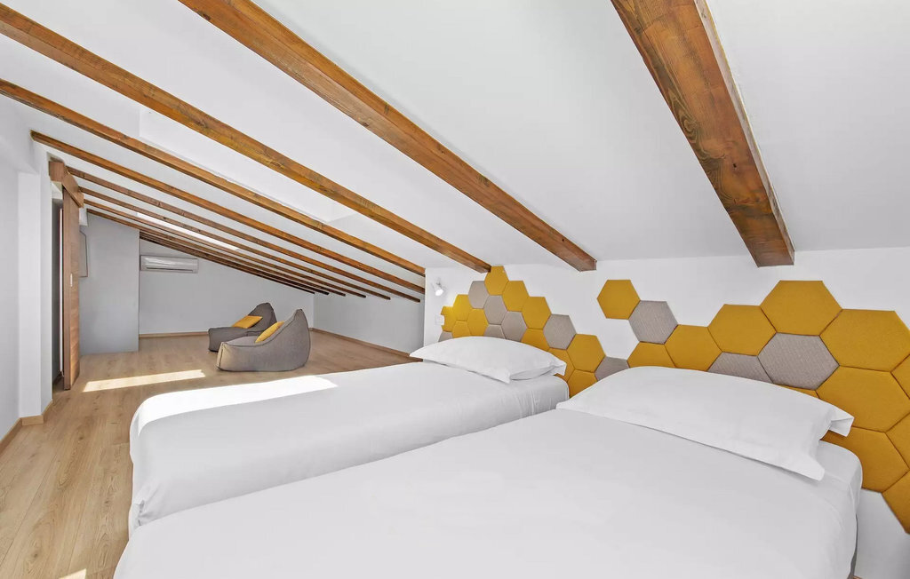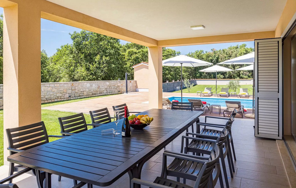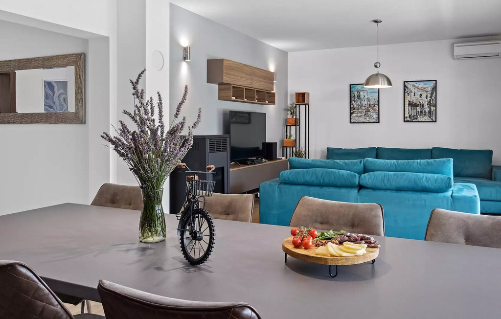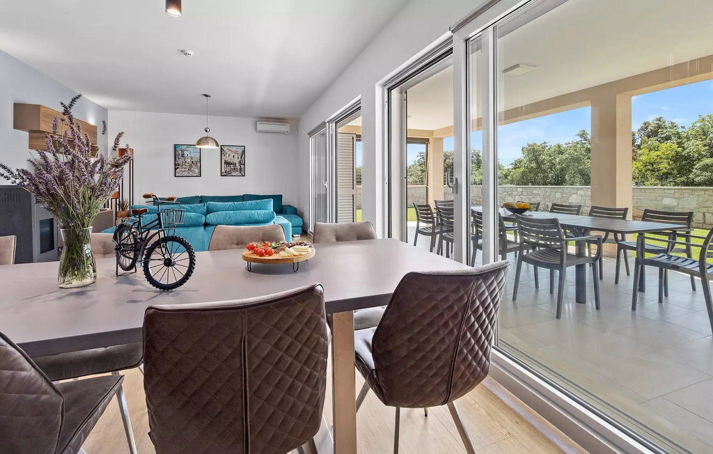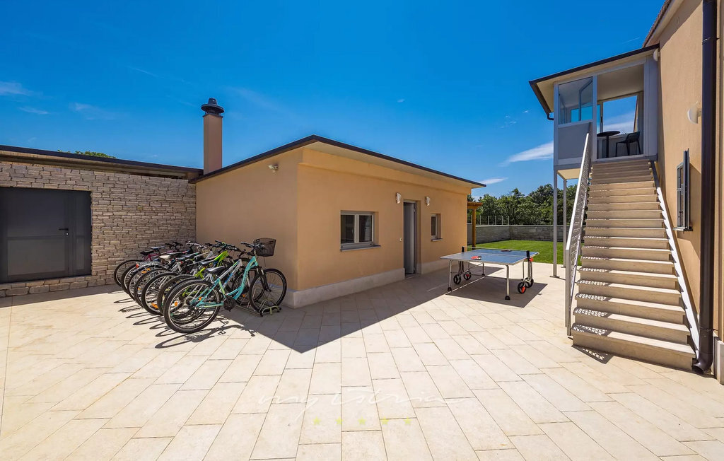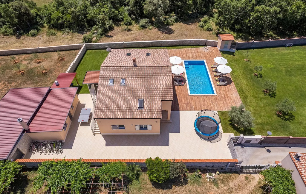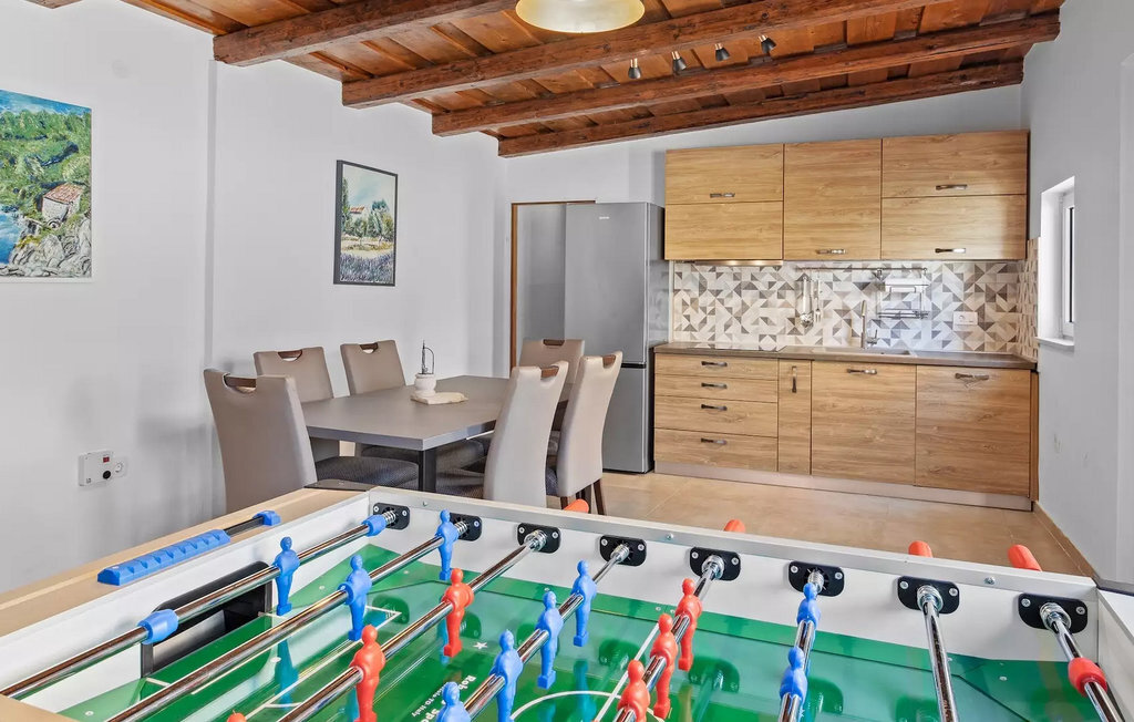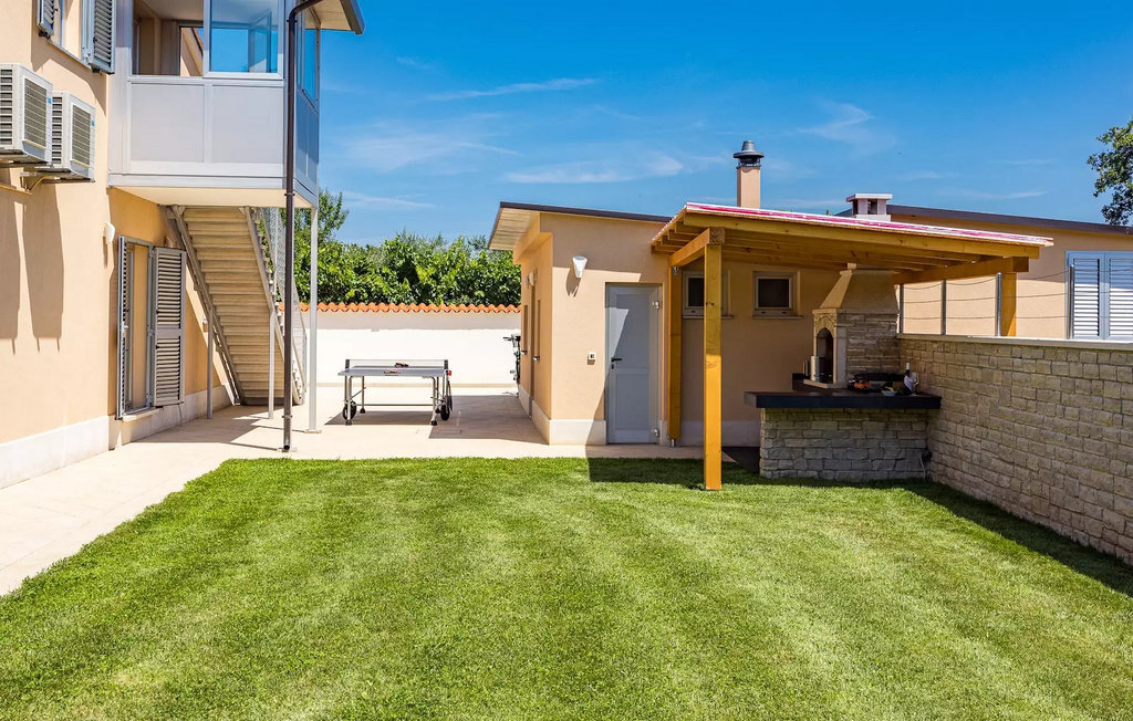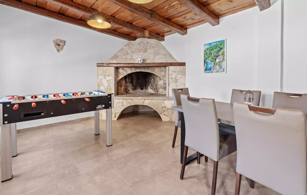 Si vous souhaitez préparer des plats traditionnels d'Istrie, la taverne dispose également d'une cuisine d'été où vous trouverez tout ce dont vous avez besoin pour préparer un délicieux repas pour toute la famille. Si vous êtes à la recherche de divertissement, vous n'avez pas à vous inquiéter, car la Villa Penelope dispose également d'un baby-foot, d'un trampoline, d'une PlayStation 4 Pro et d'un magnifique grand jardin où les enfants peuvent courir et jouer au football.La Villa Penelope se trouve à Valbandon, un village touristique situé directement sur la côte, à proximité du pittoresque village de pêcheurs de Fazana et de la belle ville de Pula, la plus grande ville d'Istrie. Le nom Valbandon vient probablement du terme médiéval italien ?abandonata ? qui signifie "baie abandonnée". La proximité de Pula et de Fazana, d'où vous pouvez également rejoindre le magnifique parc national de Brijuni, fait de Valbandon le choix idéal pour des vacances familiales plus calmes avec des enfants. Valbandon est l'un des deux villages qui forment la ville de Fazana. Fazana est connue pour son excellente offre gastronomique : Huile d'olive, vin, prosciutto et sardines. Vous y trouverez également une soixantaine de pistes cyclables, dont certaines longent la magnifique côte adriatique avec vue sur le parc national de Brijuni. Il y a également un sentier de randonnée de 4 km le long de la côte, idéal pour des promenades romantiques avec votre bien-aimé(e). Fazana est également un endroit où vous pouvez profiter de différents sports nautiques : Vous pouvez louer un jet-ski, un bateau de course, un paddle boat, un canoë et des vélos. Vous pouvez également essayer la planche à voile et la plongée. À proximité, vous trouverez le parc d'aventure Jangalooz. Pula est la plus grande ville de la péninsule istrienne et l'une des principales villes touristiques avec de nombreuses choses à voir et à explorer. Pula a été construite par les Romains en 46 avant J.-C. Bien que Pula soit comme un musée antique à ciel ouvert, il faut absolument visiter le plus grand monument, le célèbre amphithéâtre du 1er siècle, qui se trouve à proximité du centre-ville. De nombreux événements y sont organisés, des concerts et des projections de films aux manifestations sportives.