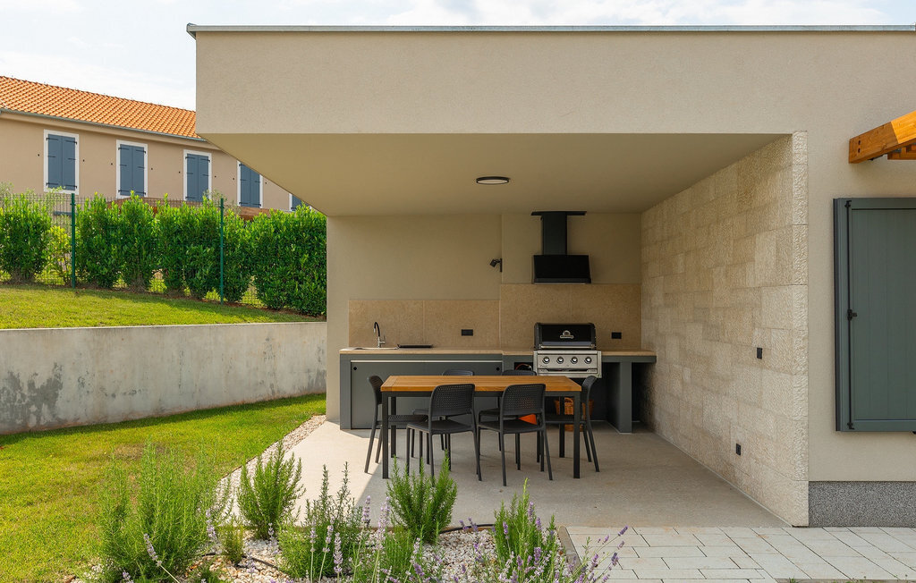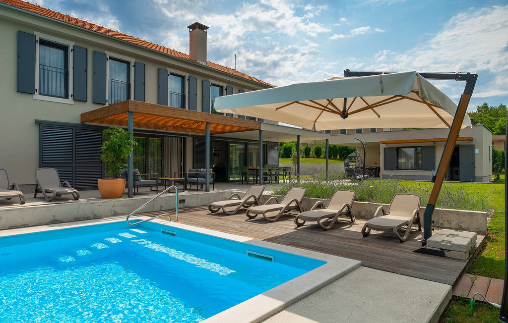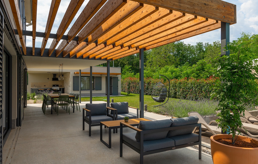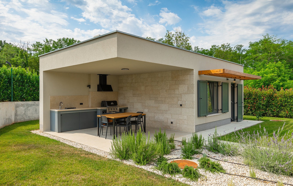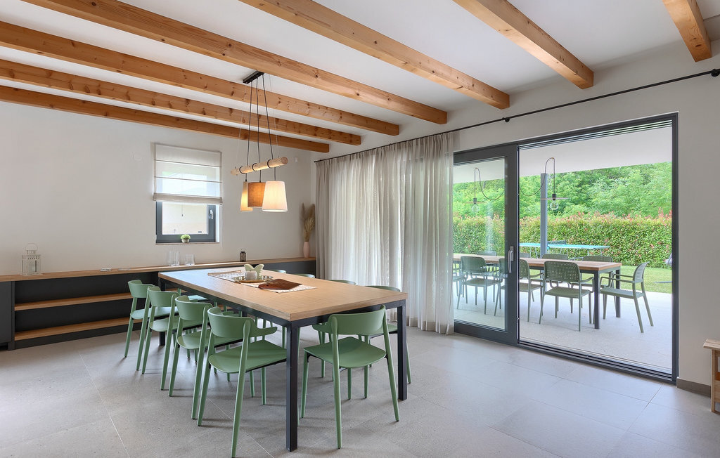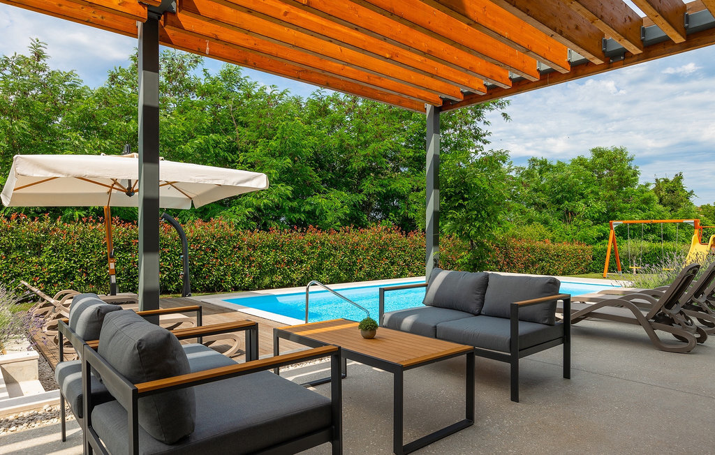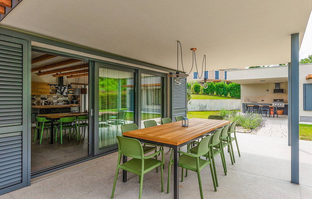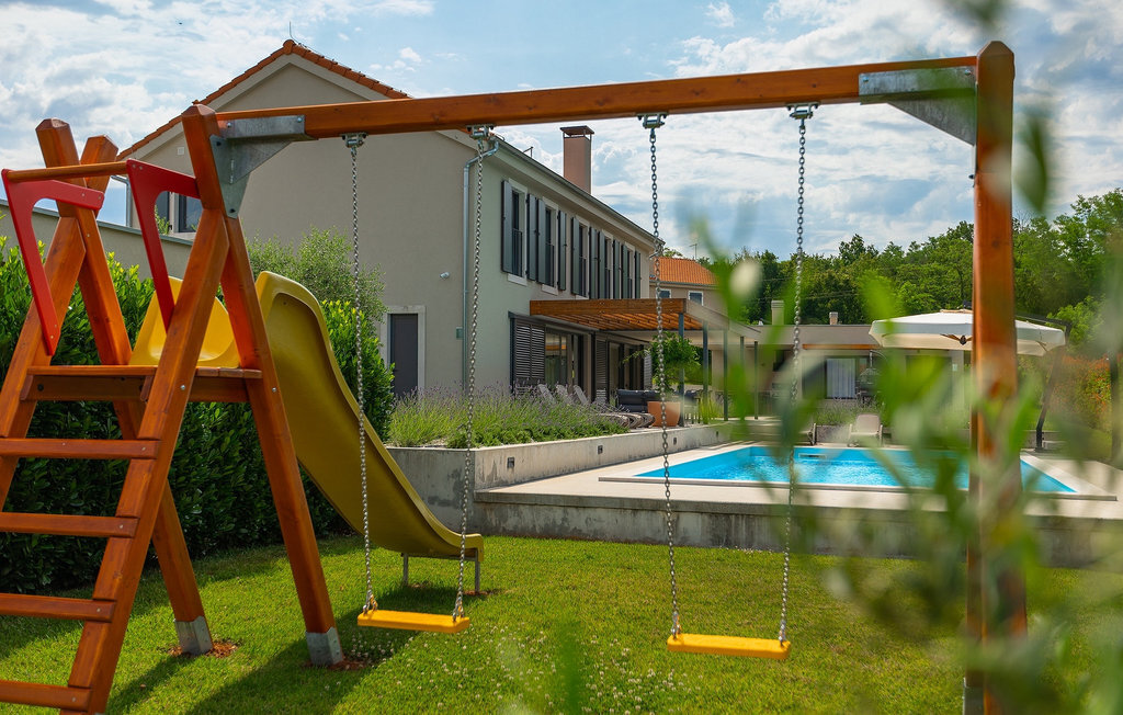 Imaginez que vous vous prélassez au soleil pendant que vos enfants courent dans le grand jardin verdoyant et jouent sur leur propre terrain de jeu. Tout cela se passe directement au bord d'une piscine privée, entourée d'une nature verdoyante. La Villa Fritula vous offre tout cela et bien plus encore. Dans une zone ombragée, vous trouverez une cuisine extérieure avec barbecue et, juste en face, une table à manger pouvant accueillir jusqu'à 10 personnes. À l'intérieur, vous trouverez un grand salon avec deux canapés, baigné de lumière naturelle et parfait pour des conversations divertissantes jusque tard dans la nuit. Dans la même pièce, vous pouvez préparer un délicieux repas dans la cuisine avec îlot de cuisine et le déguster à la table à manger pouvant accueillir jusqu'à 10 personnes, à côté d'une grande fenêtre. À l'étage supérieur se trouvent trois belles chambres doubles avec télévision et salle de bain privée. Une autre chambre double séparée est disponible dans un pavillon dans le jardin. Cette chambre dispose également de sa propre télévision et d'une salle de bain. La Villa Fritula est fantastique pour toute famille qui souhaite passer des vacances d'été inoubliables. La Villa Pinca se trouve dans le village de Vizinada, près de Porec. À seulement 30 minutes, vous pouvez visiter la ville antique de Porec, où vous pourrez voir le centre de la ville, la remarquable basilique d'Euphrasius, inscrite au patrimoine mondial de l'UNESCO et connue pour ses fascinantes mosaïques byzantines. Promenez-vous sur le front de mer animé, où les bateaux colorés et la mer Adriatique offrent une vue à couper le souffle. Une autre ville proche est Umag. Elle est connue pour ses vignobles et ses oliveraies, ses prairies et ses forêts. Nous vous recommandons de visiter les caves à vin de la famille et de déguster les célèbres délices istriens : Pâtes aux truffes, prosciutto et fromage, le tout accompagné d'un verre de la fameuse malvasia d'Istrie. Les charmantes rues pavées de la ville regorgent d'excellents restaurants, bars et cafés. Ici, vous pouvez découvrir les grottes d'Istrie, une belle nature verdoyante, des collines idylliques et des sites culturels tels que des églises, des chapelles et des sites archéologiques. À proximité se trouve le premier parc aquatique croate, Istralandia, où vous pourrez profiter d'activités aquatiques avec vos proches.