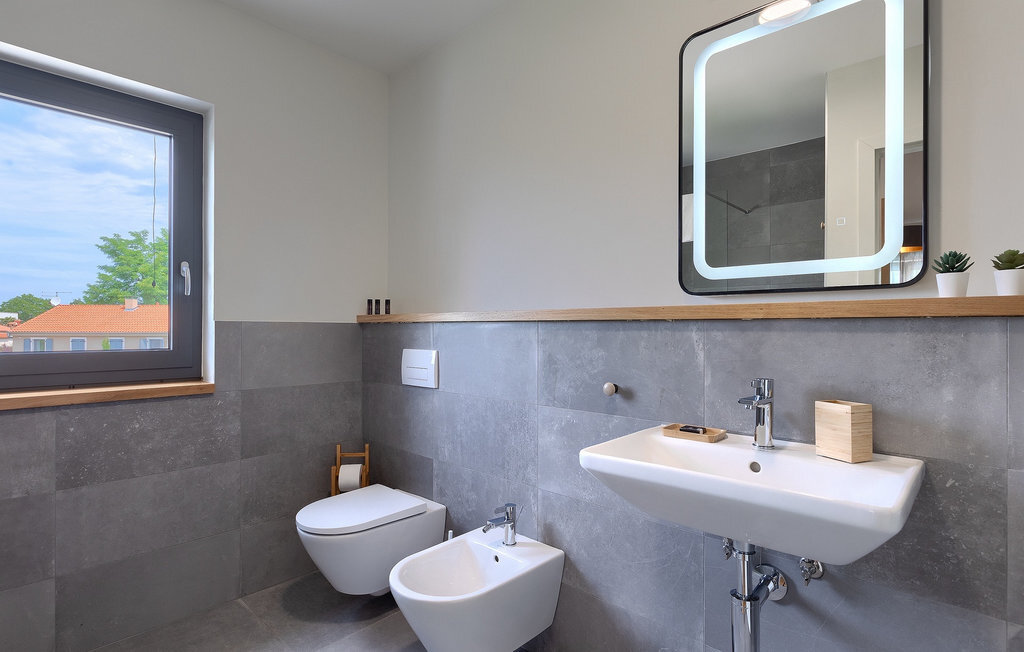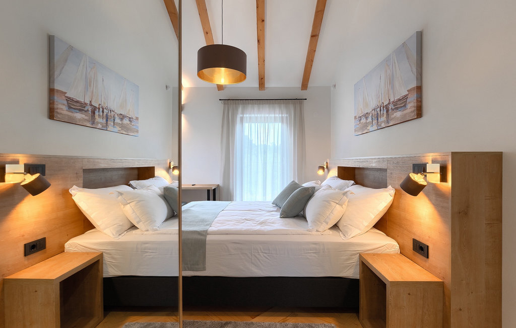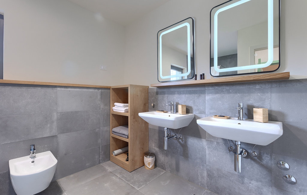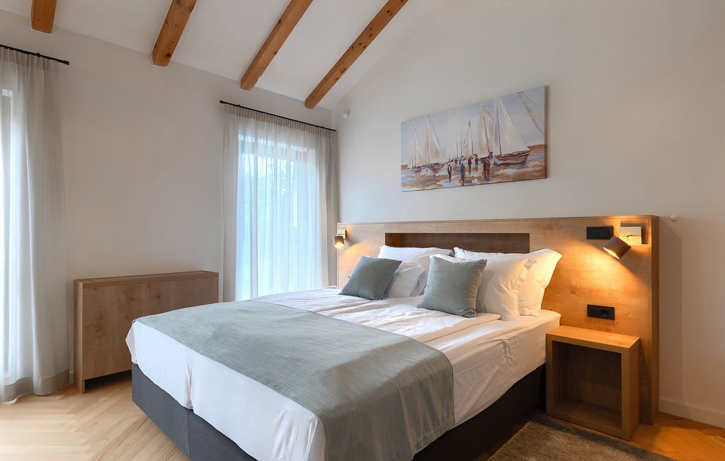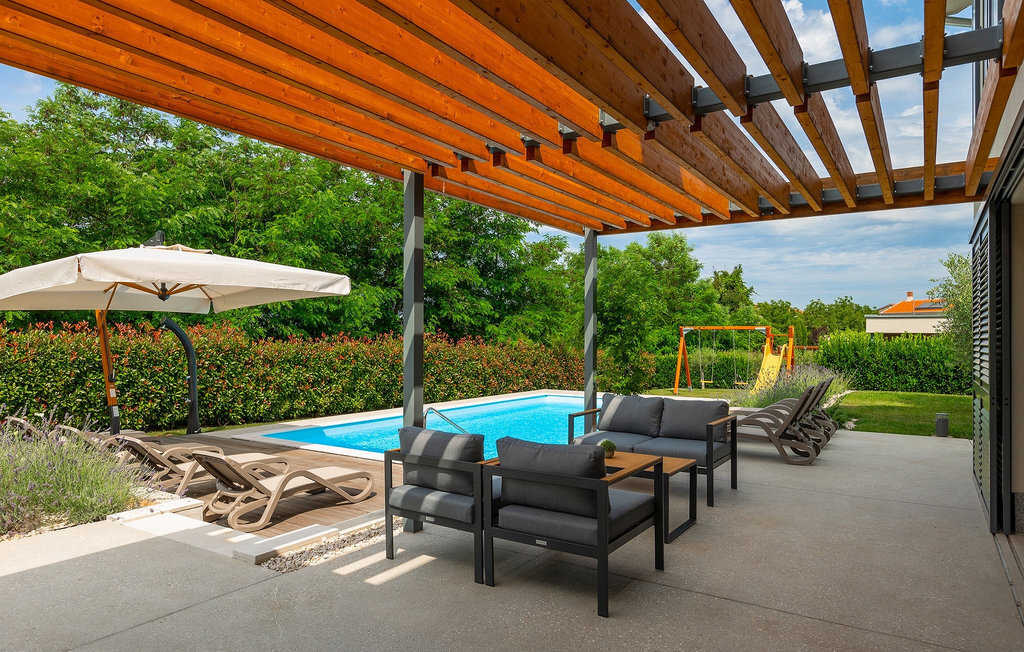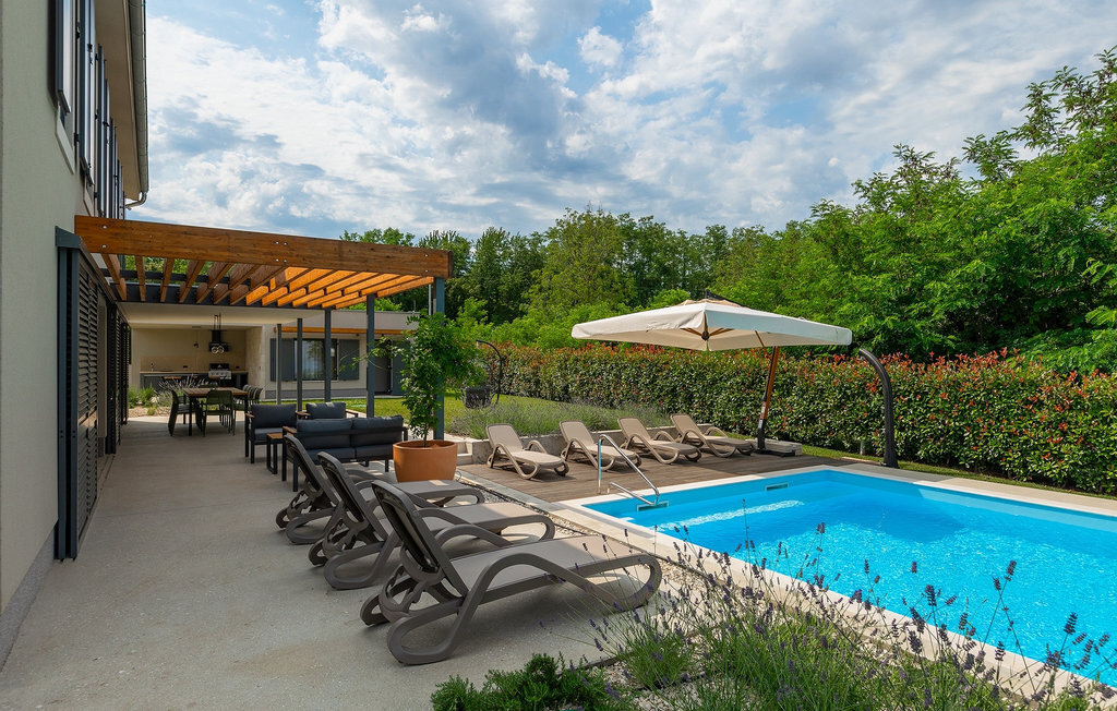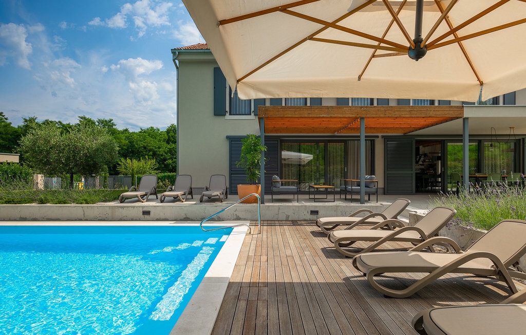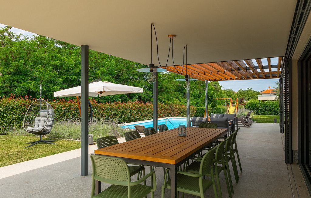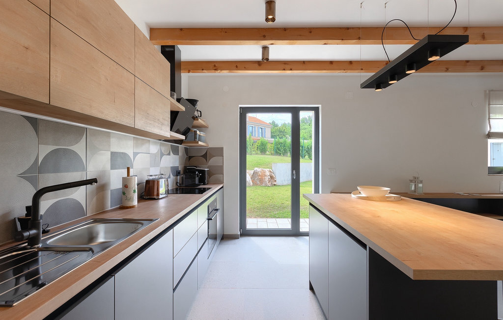 Imaginez que vous vous prélassez au soleil pendant que vos enfants courent dans le grand jardin verdoyant et jouent sur leur propre terrain de jeu. Tout cela se passe directement au bord d'une piscine privée, entourée d'une nature verdoyante. La Villa Fritula vous offre tout cela et bien plus encore. Dans une zone ombragée, vous trouverez une cuisine extérieure avec barbecue et, juste en face, une table à manger pouvant accueillir jusqu'à 10 personnes. À l'intérieur, vous trouverez un grand salon avec deux canapés, baigné de lumière naturelle et parfait pour des conversations divertissantes jusque tard dans la nuit. Dans la même pièce, vous pouvez préparer un délicieux repas dans la cuisine avec îlot de cuisine et le déguster à la table à manger pouvant accueillir jusqu'à 10 personnes, à côté d'une grande fenêtre. À l'étage supérieur se trouvent trois belles chambres doubles avec télévision et salle de bain privée. Une autre chambre double séparée est disponible dans un pavillon dans le jardin. Cette chambre dispose également de sa propre télévision et d'une salle de bain. La Villa Fritula est fantastique pour toute famille qui souhaite passer des vacances d'été inoubliables. La Villa Pinca se trouve dans le village de Vizinada, près de Porec. À seulement 30 minutes, vous pouvez visiter la ville antique de Porec, où vous pourrez voir le centre de la ville, la remarquable basilique d'Euphrasius, inscrite au patrimoine mondial de l'UNESCO et connue pour ses fascinantes mosaïques byzantines. Promenez-vous sur le front de mer animé, où les bateaux colorés et la mer Adriatique offrent une vue à couper le souffle. Une autre ville proche est Umag. Elle est connue pour ses vignobles et ses oliveraies, ses prairies et ses forêts. Nous vous recommandons de visiter les caves à vin de la famille et de déguster les célèbres délices istriens : Pâtes aux truffes, prosciutto et fromage, le tout accompagné d'un verre de la fameuse malvasia d'Istrie. Les charmantes rues pavées de la ville regorgent d'excellents restaurants, bars et cafés. Ici, vous pouvez découvrir les grottes d'Istrie, une belle nature verdoyante, des collines idylliques et des sites culturels tels que des églises, des chapelles et des sites archéologiques. À proximité se trouve le premier parc aquatique croate, Istralandia, où vous pourrez profiter d'activités aquatiques avec vos proches.