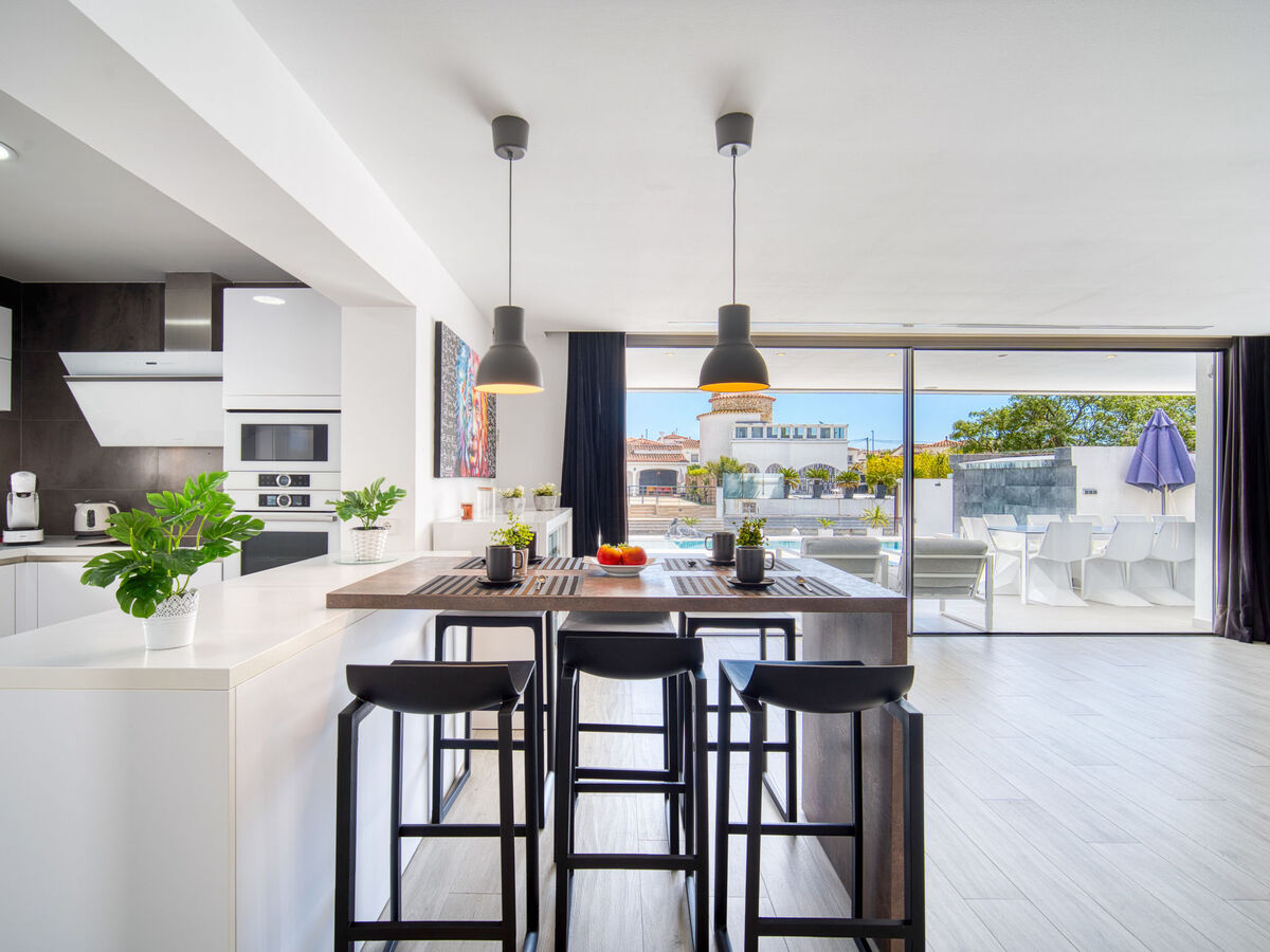 Dans le quartier de Medes, à 1 km du centre d'Empuriabrava, situation tranquille, ensoleillée quartier résidentiel, zone avec peu de trafic, à 900 m de la mer, juste au bord du canal, dans une impasse.