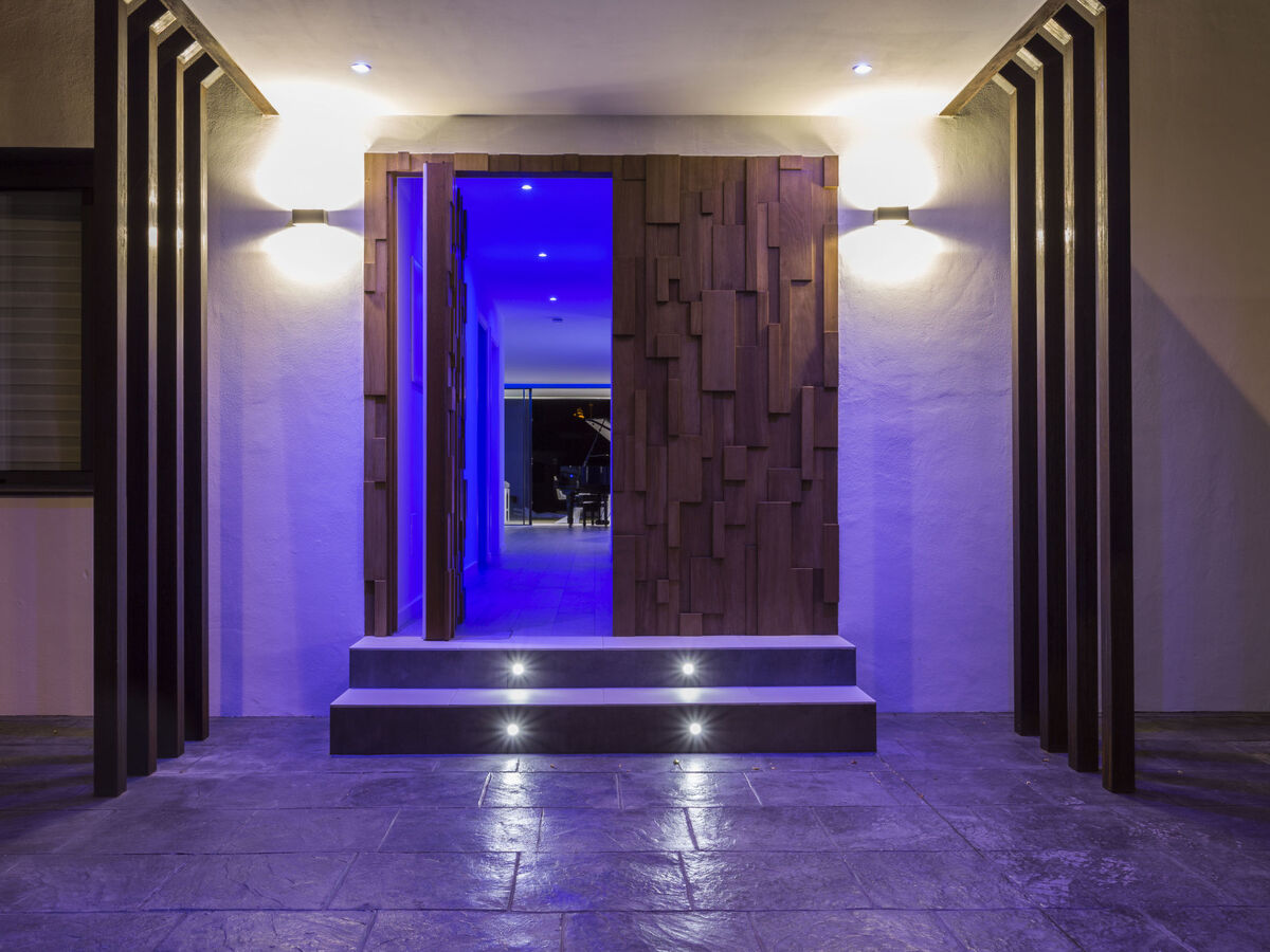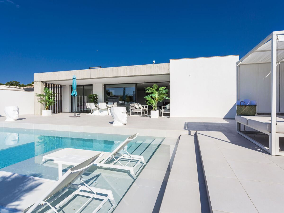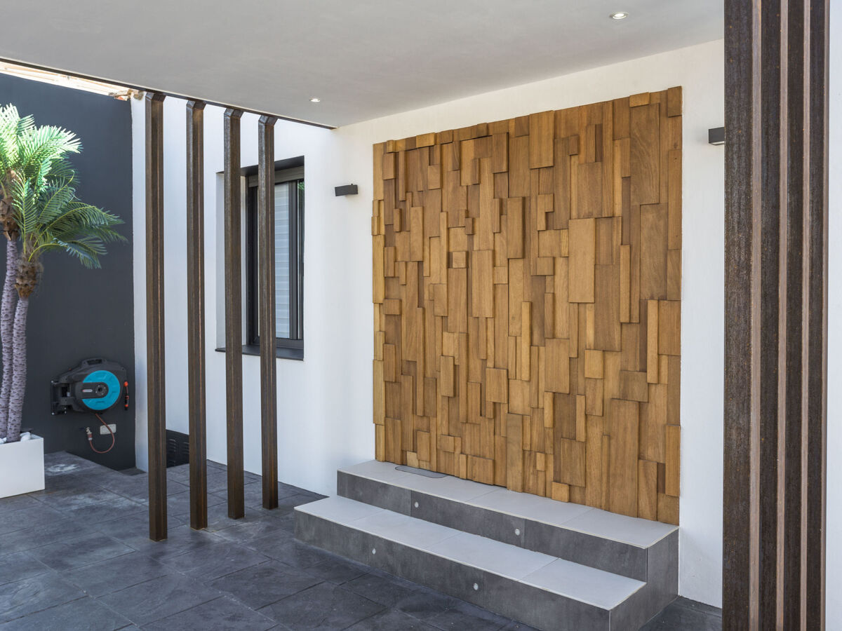 Sortie sur la terrasse, sur la piscine, orientée sud.