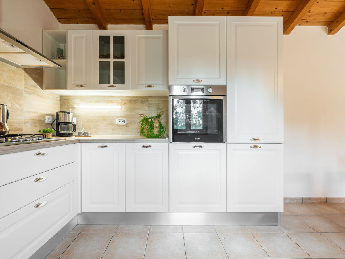 Cuisine (four, 4 feux, grille-pain, bouilloire électrique, cafetière électrique) avec table pour les repas.