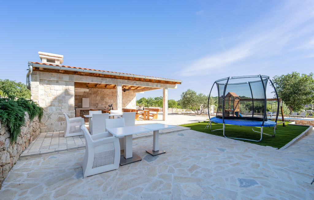Activités de plein air : Cette location de vacances propose au moins 3 activités de plein air pour toute la famille comme par exemple une table de ping-pong, un trampoline, des boules de pétanques, un panier de basket avec son ballon etc...