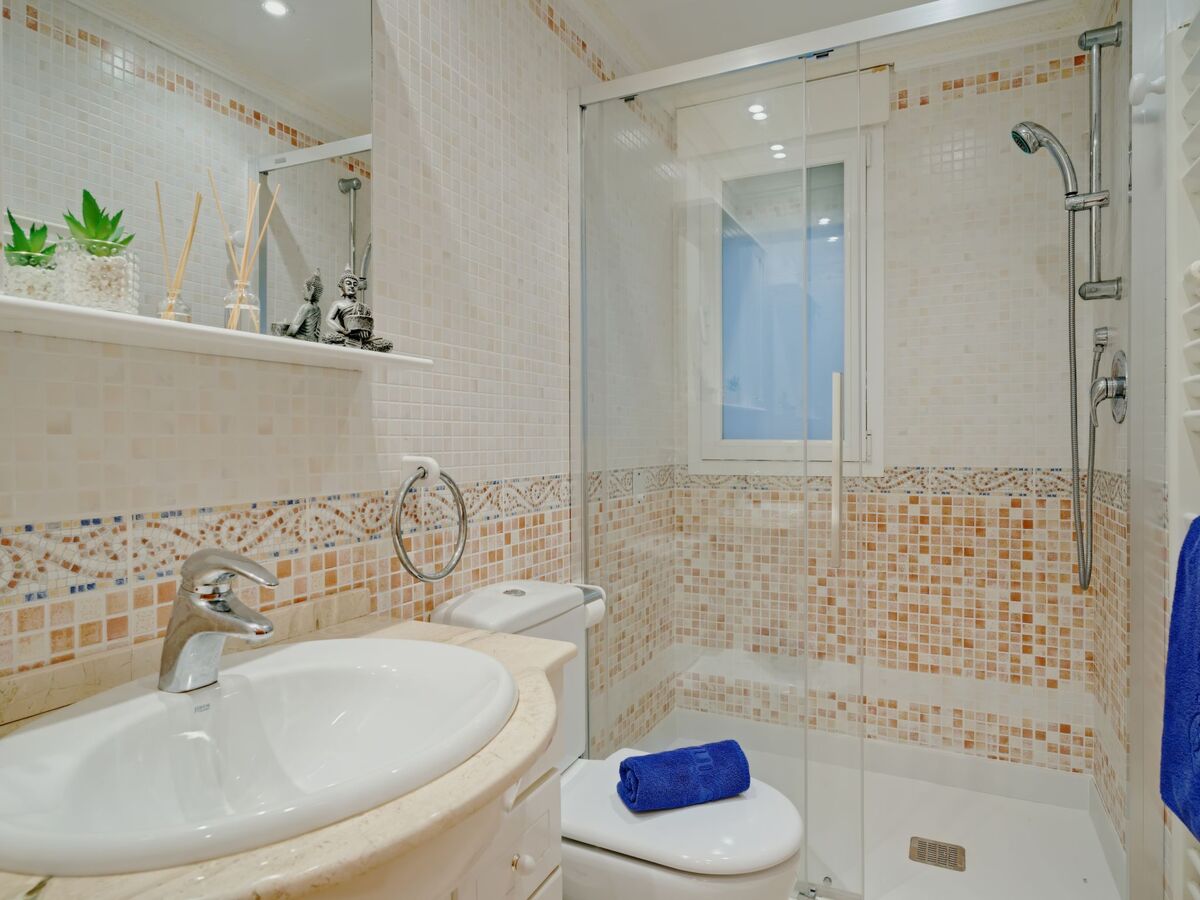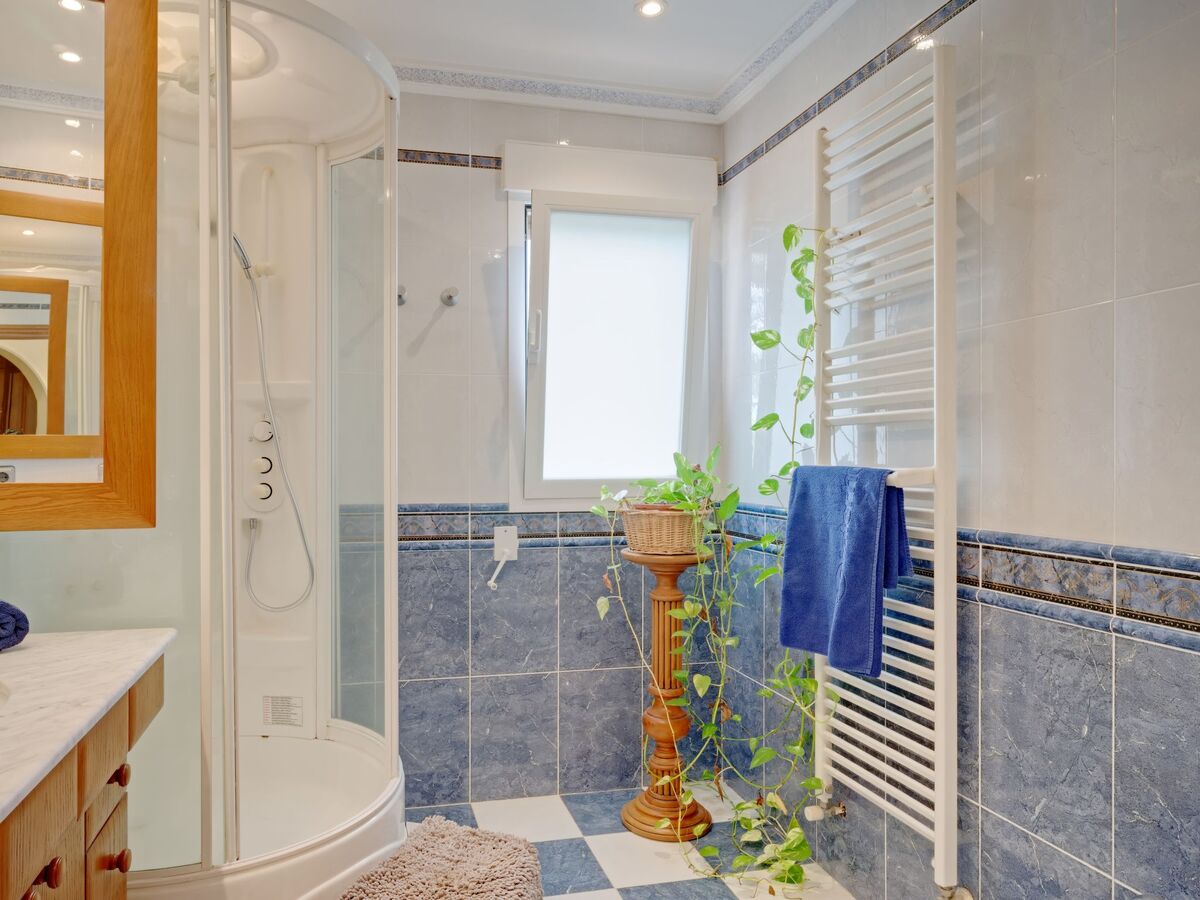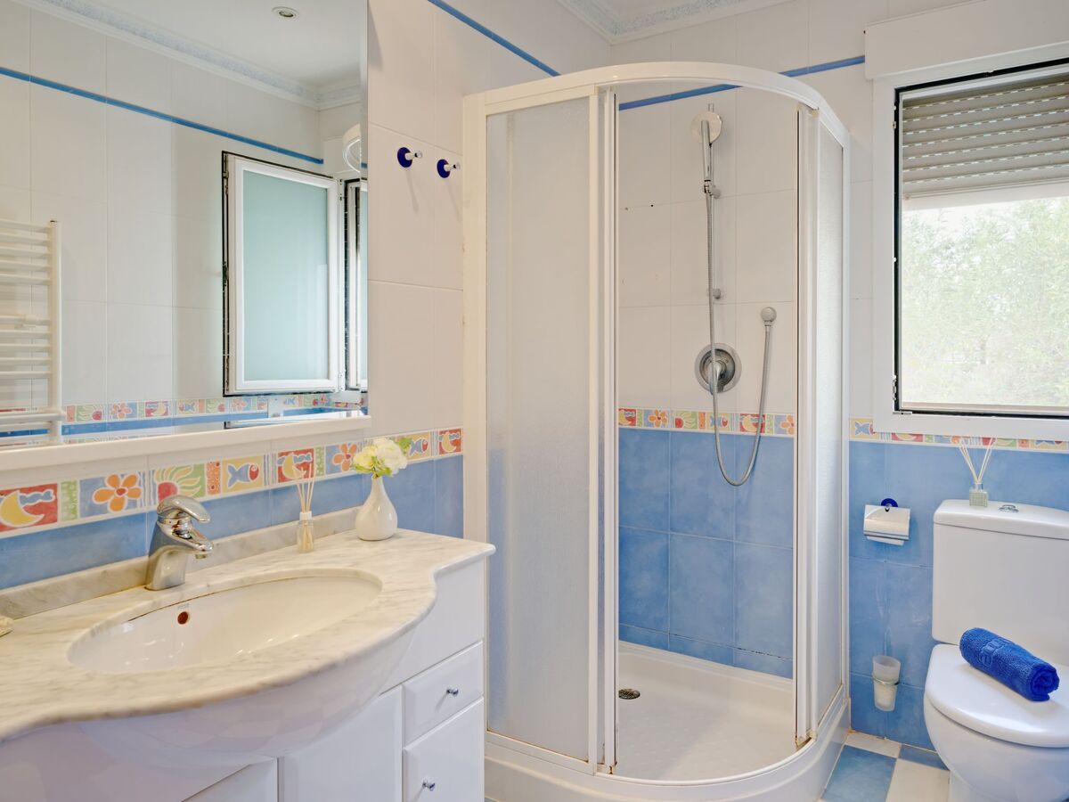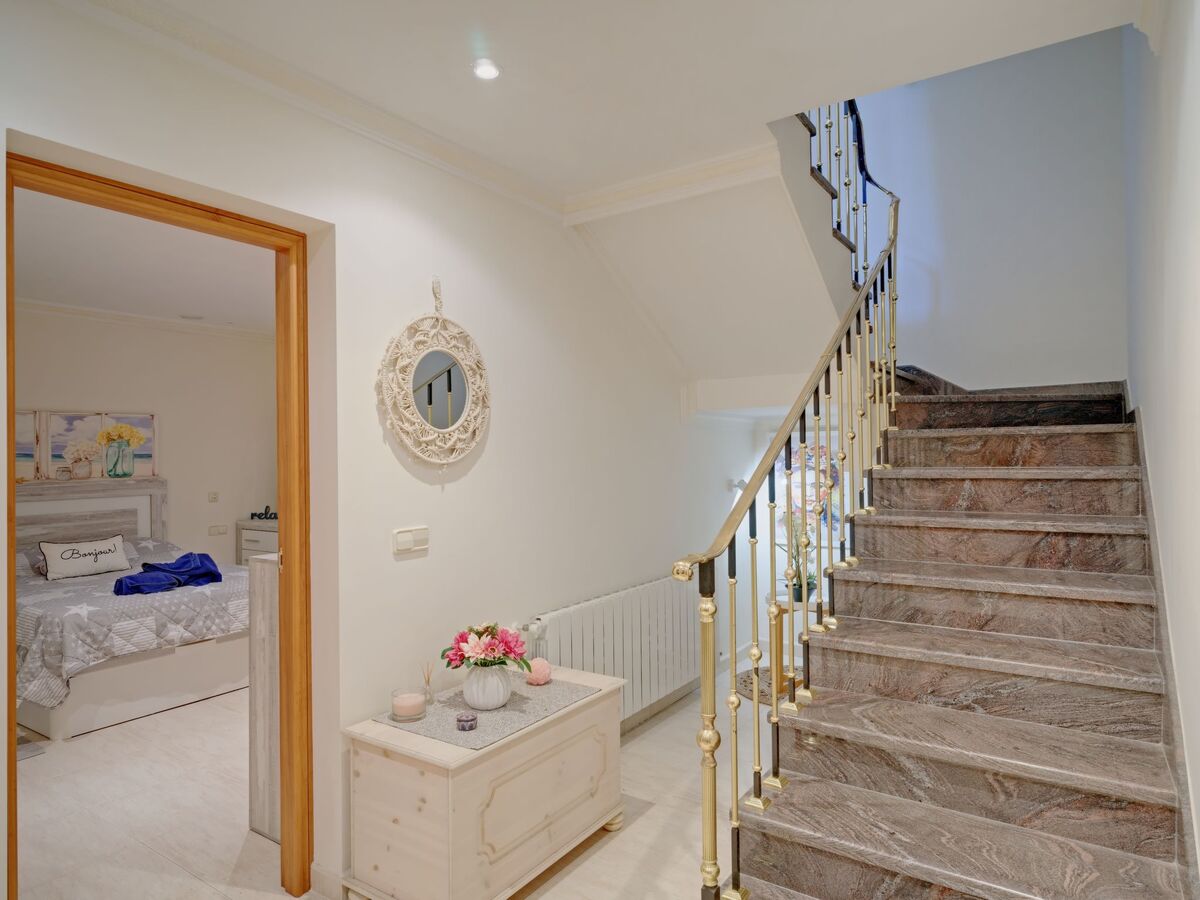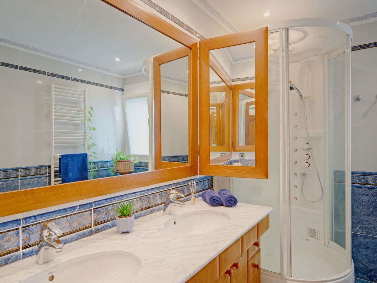 À l'étage supérieur: 1 chambre avec 1 lit double (2 x 90 cm, longueur 200 cm), douche/bidet/WC, double vasque, TV (satellite), air-conditionné et chauffage à air chaud.