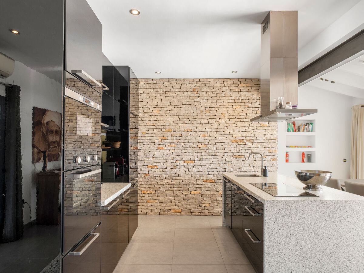 Cuisine ouverte (four, lave-vaisselle, 3 plaques à induction, grille-pain, bouilloire électrique, micro-ondes, cafetière électrique).