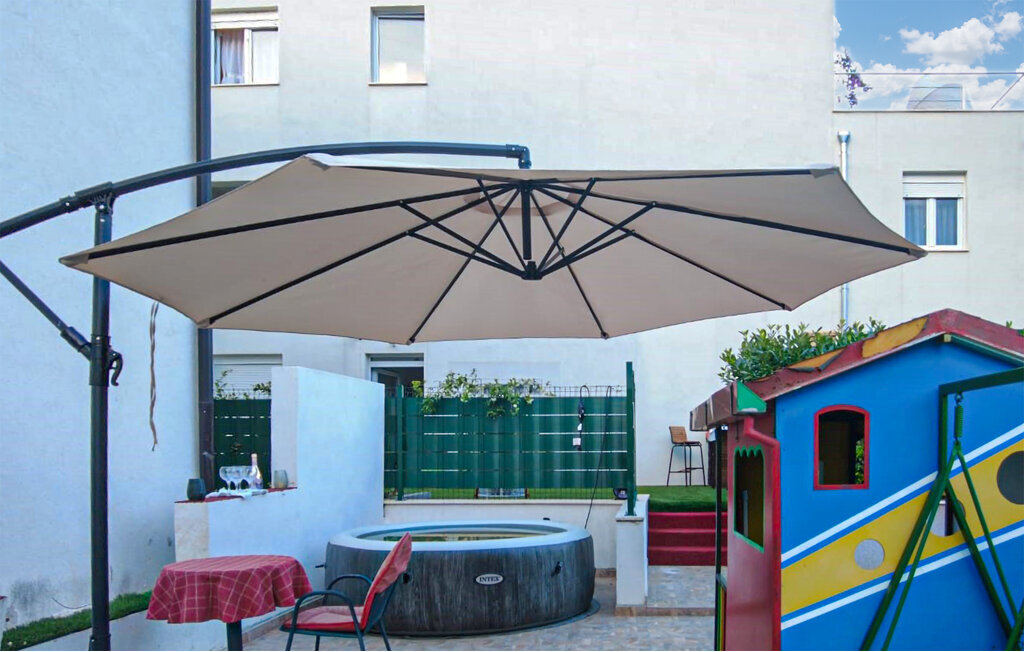 Bien-être à l'extérieur : Location de vacances disposant de chaises-longues et d'un ou plusieurs équipements tels que piscine extérieure, jacuzzi extérieur, lit à baldaquin de jardin etc...