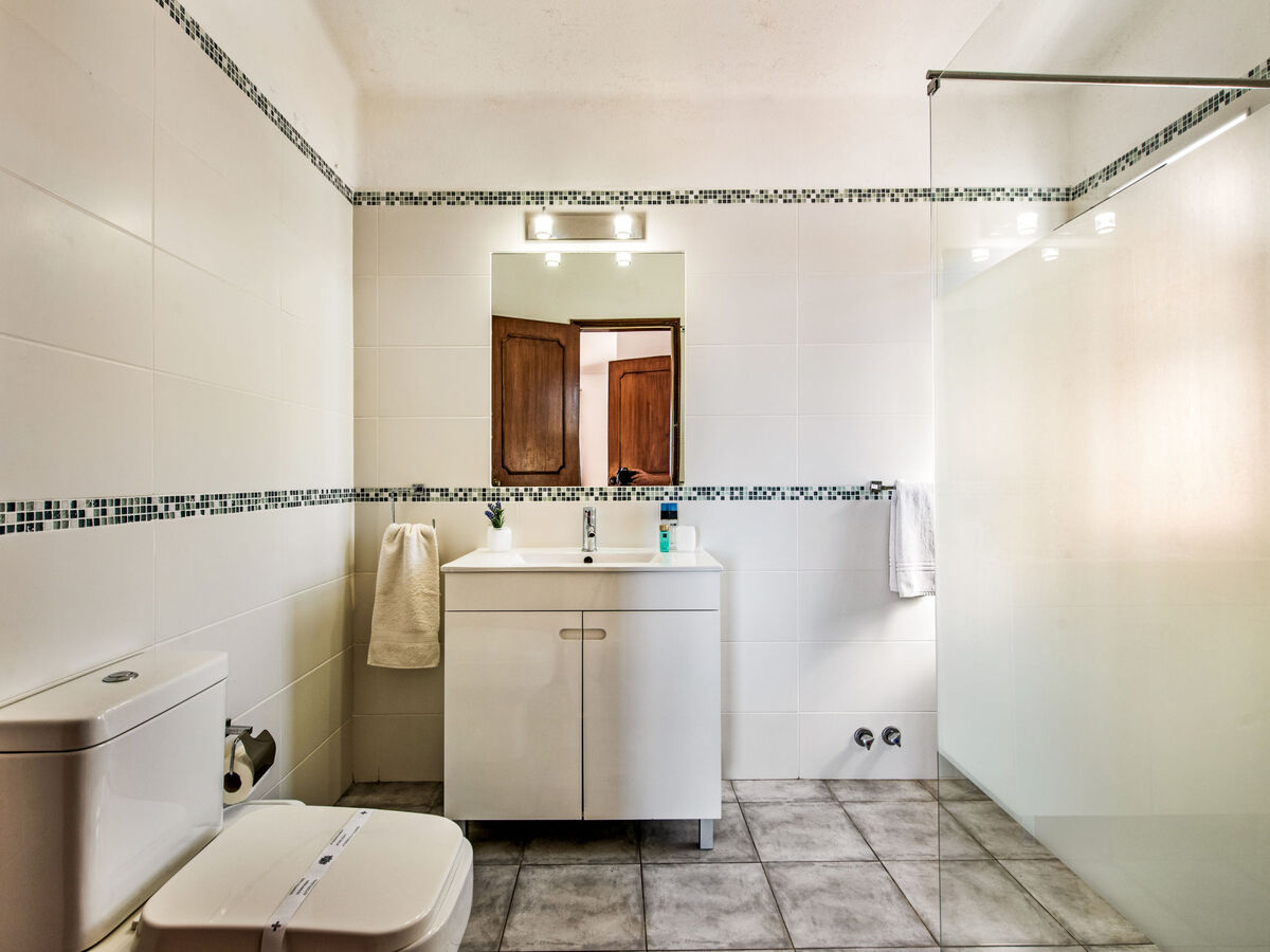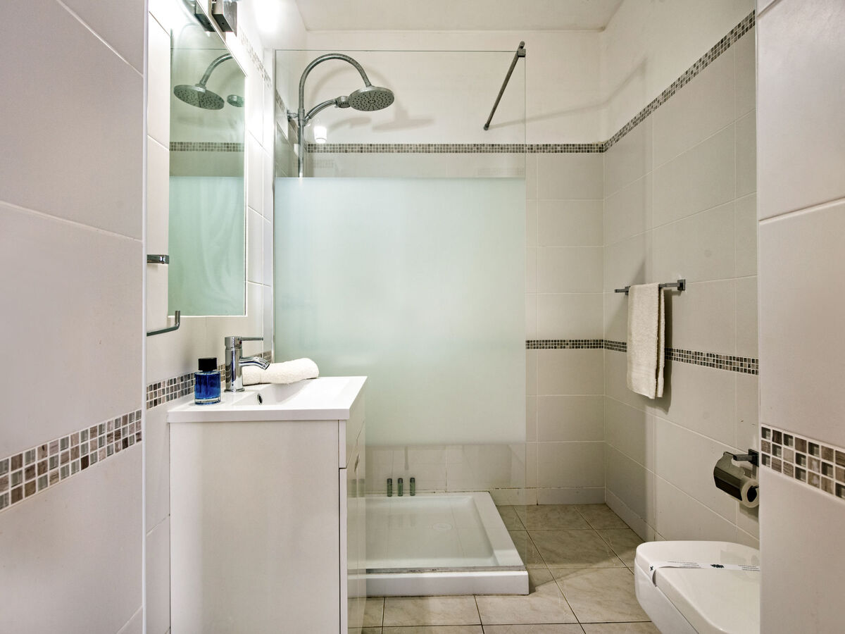 À l'étage supérieur: 1 chambre avec 2 lits (90 cm, longueur 200 cm), douche/WC, air-conditionné et chauffage à air chaud.