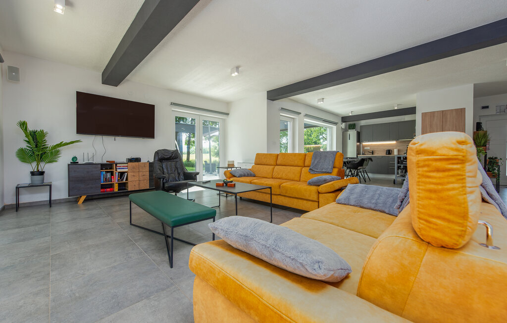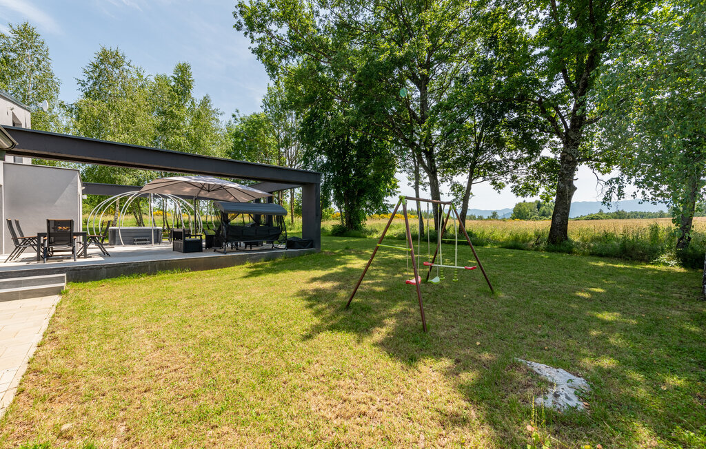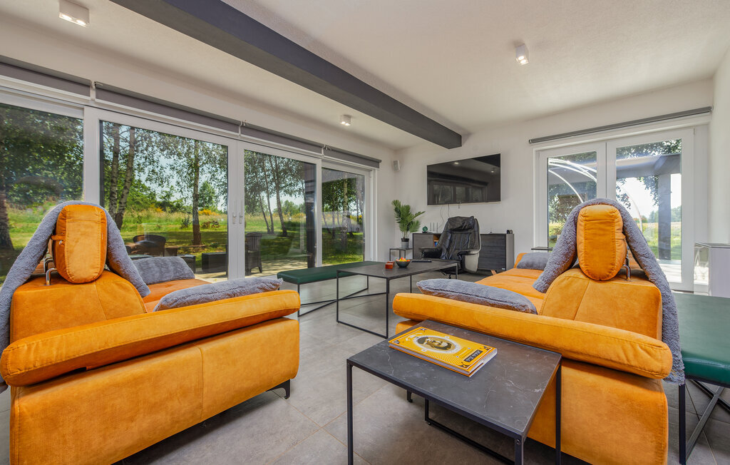 La maison moderne vous accueille au milieu d'un beau paysage sur lequel vous jouissez ici d'une vue magnifique et est l'endroit idéal pour passer d'agréables moments avec vos proches. L'aménagement élégant avec des accents de couleurs vives vous permet de vous détendre facilement. Réjouissez-vous de partager des repas avec une vue magnifique et, le soir, installez-vous confortablement dans les canapés accueillants près du feu de cheminée crépitant.