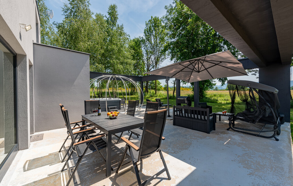 Profitez des premiers rayons de soleil sur la terrasse, emportez votre café à l'extérieur et planifiez les activités de la prochaine journée de vacances, plus tard vous pourrez servir des friandises au barbecue pour toute la famille ou vous détendre dans le jacuzzi en plein air.