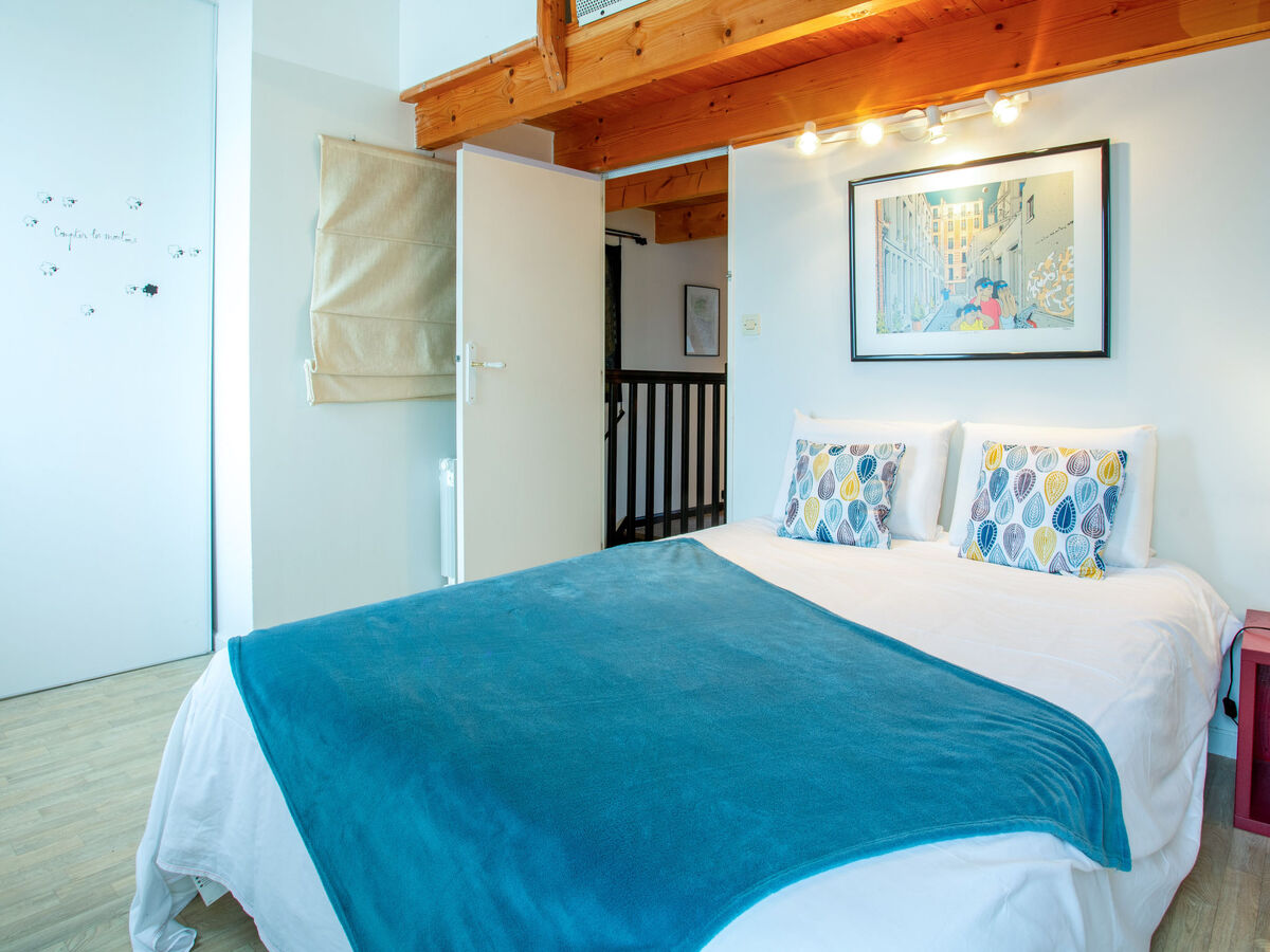 1 chambre, mansardée sur 2 niveaux avec 1 lit (90 cm, longueur 190 cm), 1 grand-lit (1 x 160 cm, longueur 200 cm).