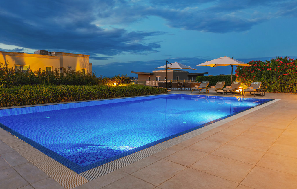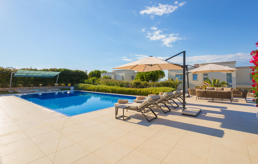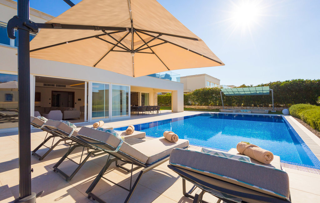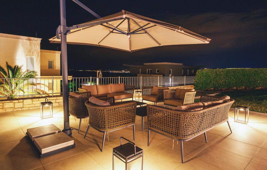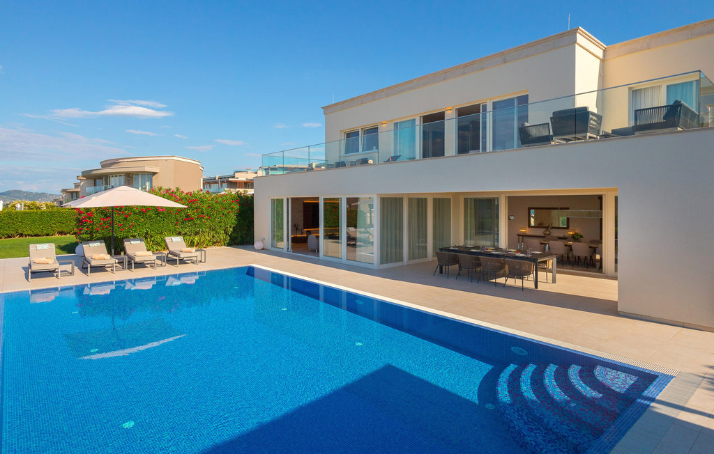 Le style confortable des espaces intérieurs se retrouve à l'extérieur. Ici, vous pouvez vous détendre longuement au soleil et à l'ombre, prendre un bain de soleil sur les chaises longues au bord de la piscine et préparer vos plats préférés au barbecue le soir, voilà à quoi ressemble la détente idéale des vacances.