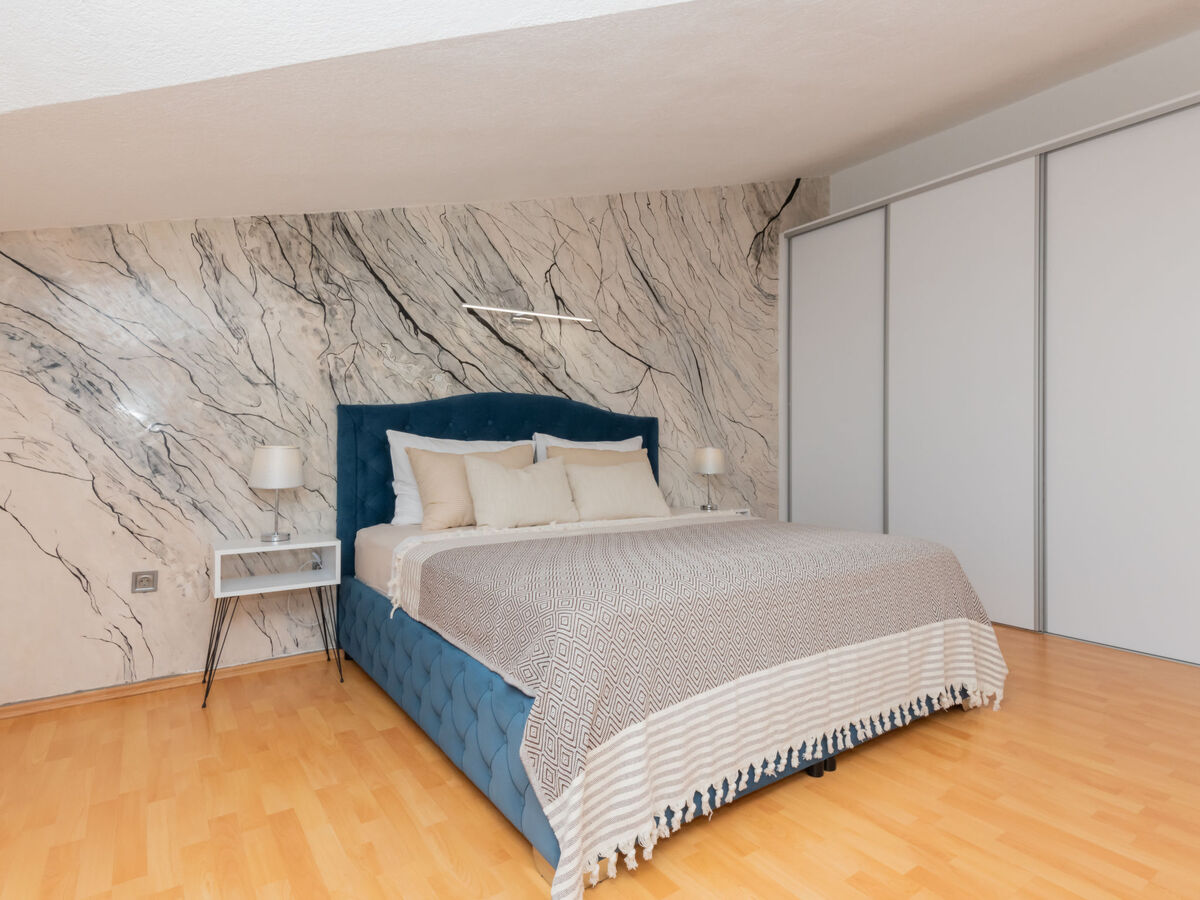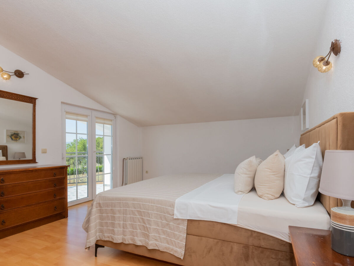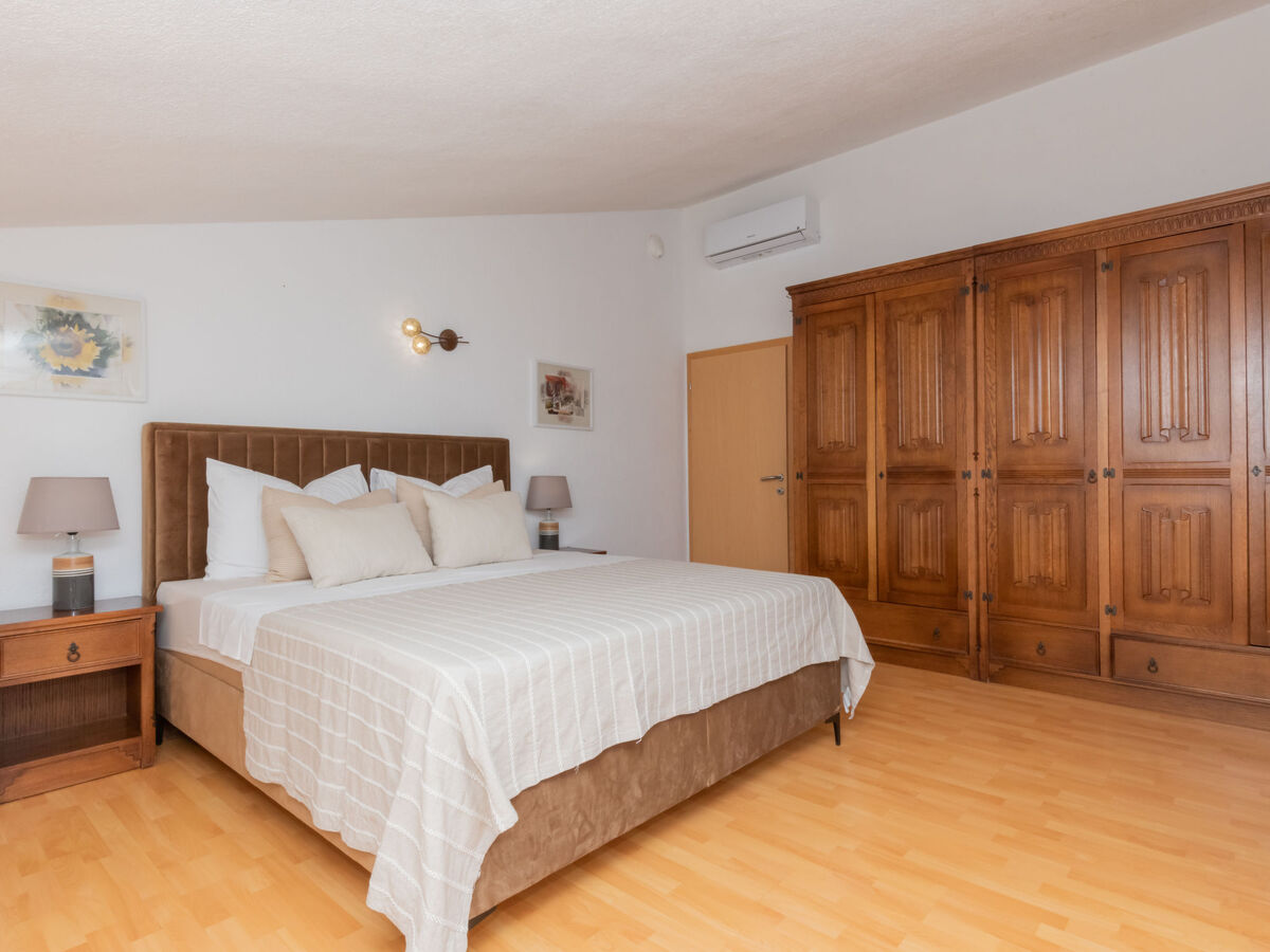 À l'étage supérieur: 2 chambres, chaque chambre avec: 1 grand-lit (180 cm, longueur 200 cm), air-conditionné.