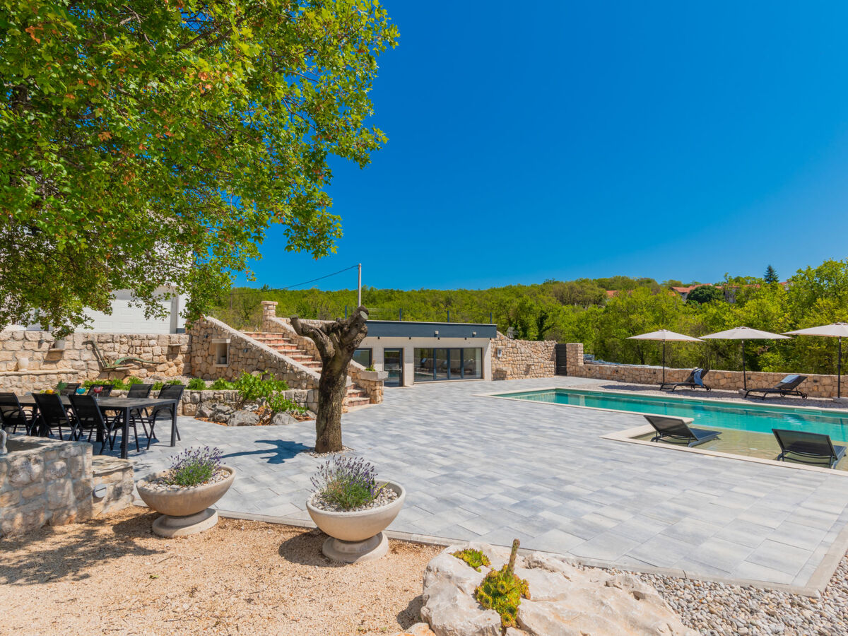 A usage privé: terrain 1'000 m2 (clôturé), jardin avec arbres, piscine rectangulaire (5 x 10 m, profondeur 150 cm, disponibilité saisonnière: 01.Jun.