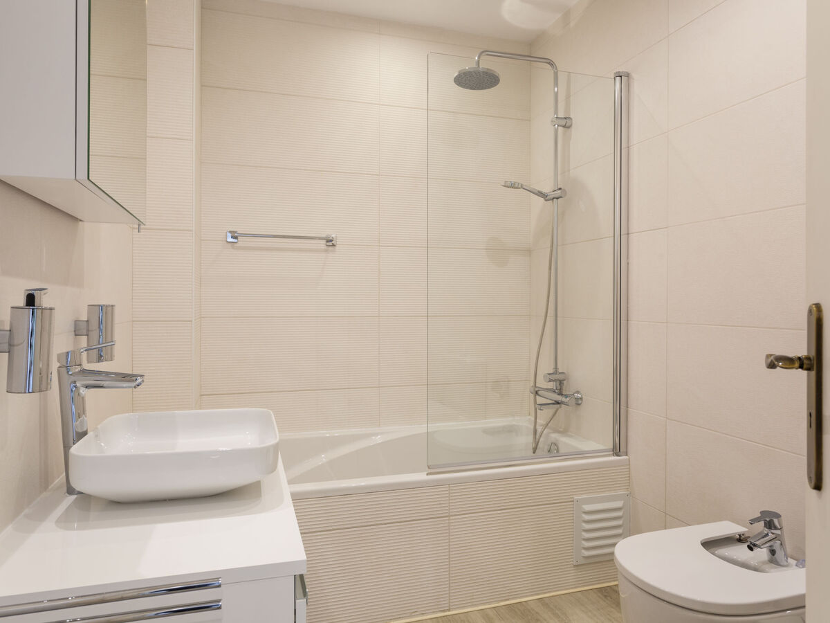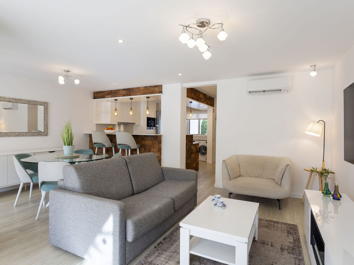 Spacieux et clair, aménagement agréable et moderne: séjour/salle à manger avec 1 divan-lit (160 cm, longueur 180 cm), table pour les repas, coin-cuisine, TV (câblée), chaînes de TV internationales, écran plat, air-conditionné et chauffage à air chaud.