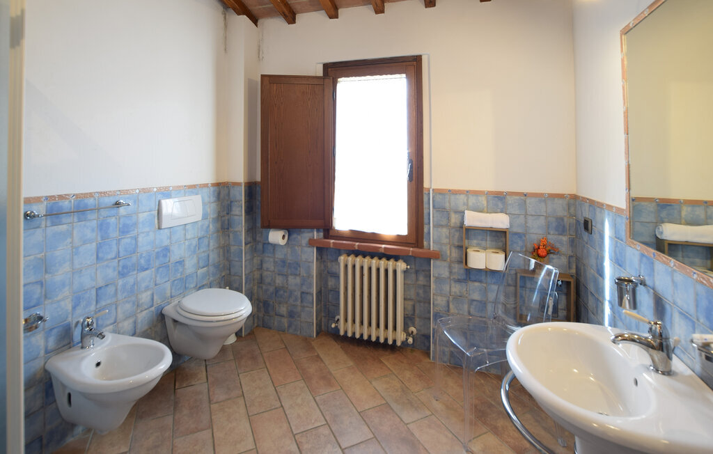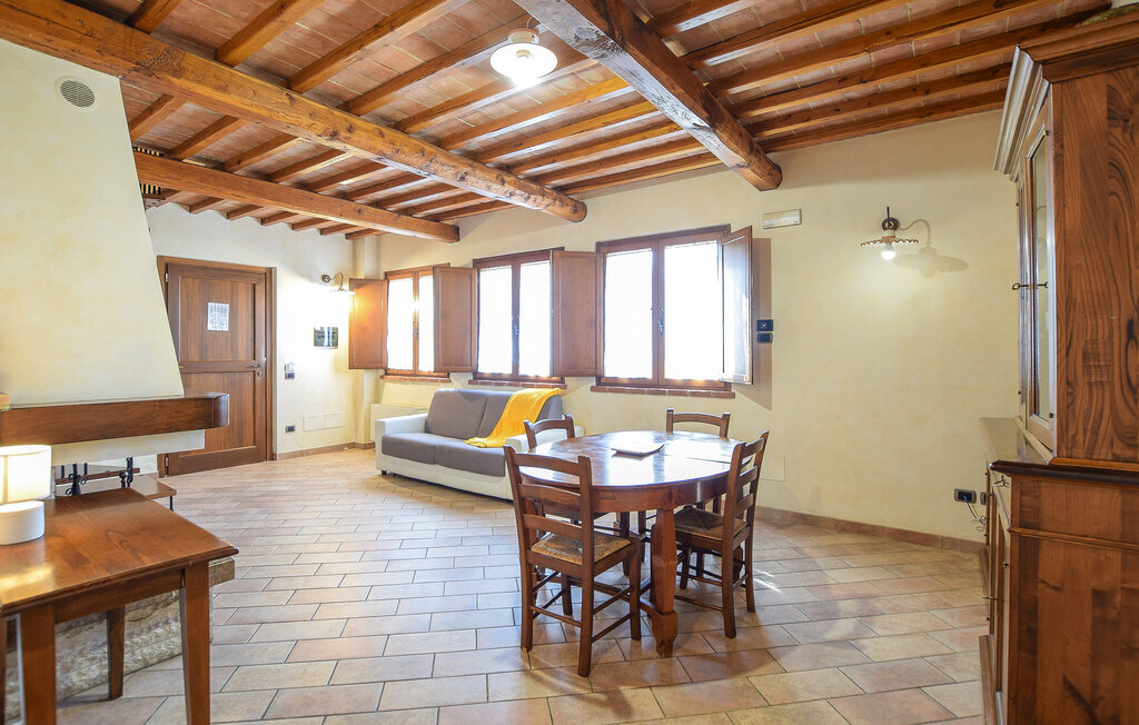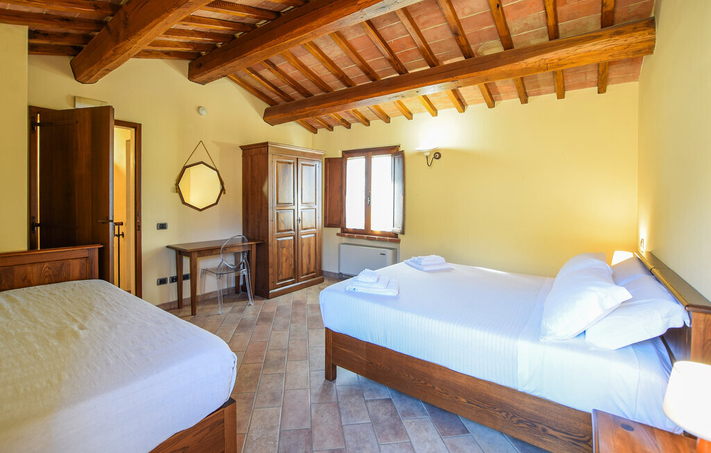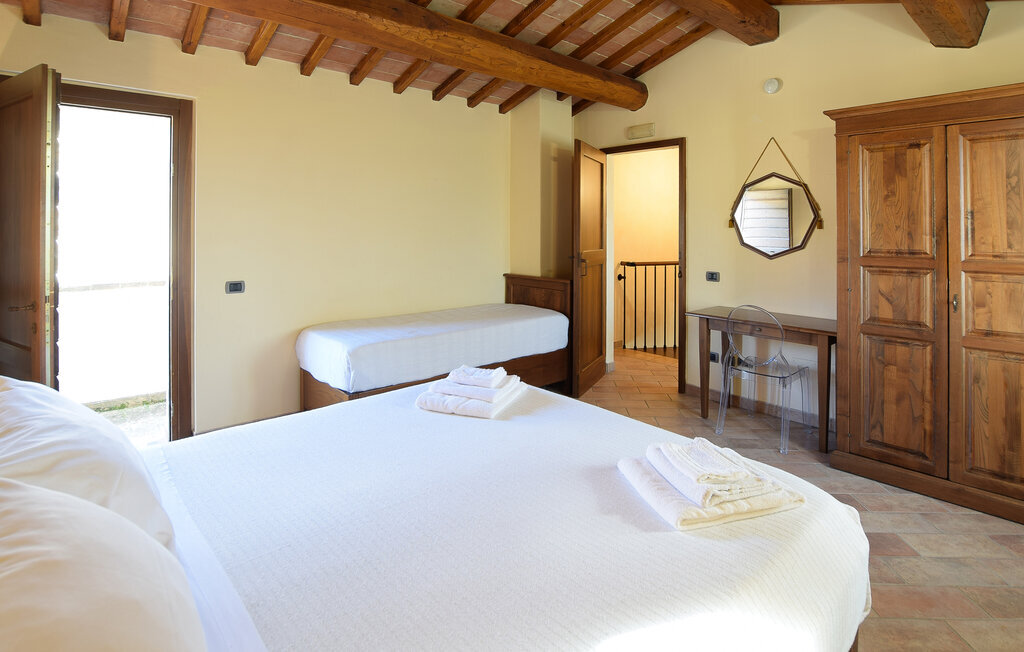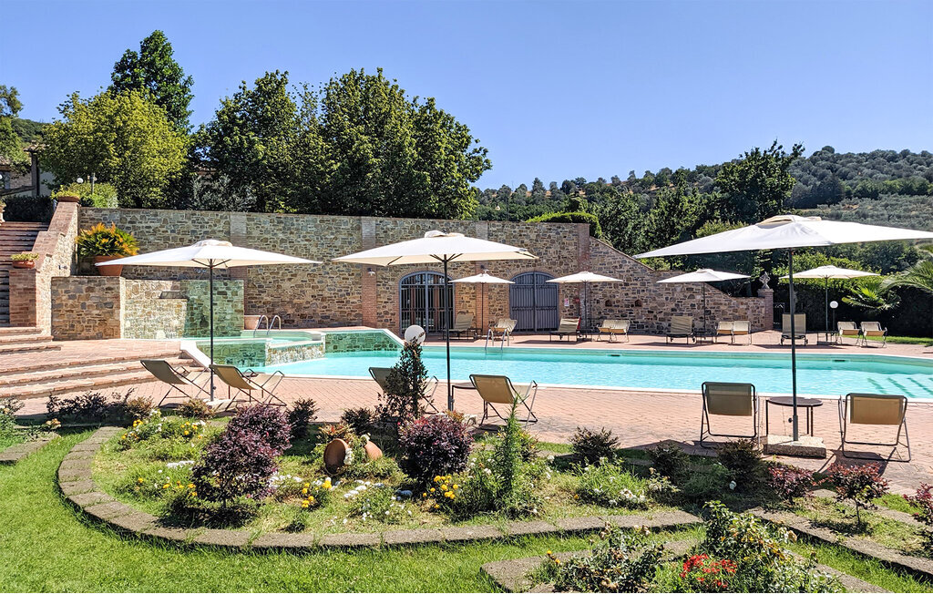 A quelques kilomètres du lac Trasimène, dans le cœur vert de l'Italie, cette maison de vacances vous accueille dans un bel endroit. Le logement dégage une atmosphère chaleureuse grâce à son style rustique. Prenez vos repas quotidiens dans la salle de séjour ouverte et profitez de ne pas devoir vous précipiter au travail. Les plaisirs à l'état pur vous attendent à l'extérieur. Même les plus petits seront bien divertis sur l'aire de jeux. Détendez-vous sur les chaises longues avec le magnifique paysage luxuriant de l'Ombrie devant vous. Vos enfants auront certainement des courbes de doigts ondulées après avoir passé des heures à s'amuser dans l'eau rafraîchissante de la piscine.