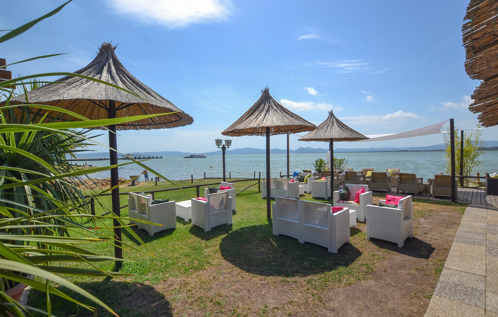 Explorez les environs passionnants, dont Mugnano, l'ancien village des "murs peints". Visitez également le village médiéval de Magione, qui porte les traces des Romains et des Étrusques, et flânez dans ses ruelles étroites, imprégnées d'histoire et d'antiquité. En chemin, faites une pause dans l'un des restaurants de rue pour déguster un verre de vin. Dans la ville voisine de San Feliciano, vous pouvez vous promener sur la rive, manger du poisson ou prendre le ferry pour les petites îles romantiques du lac. Partout le long du lac, il y a des baies plus ou moins grandes pour se baigner, y compris avec des plages de sable. Les deux plus grandes villes du lac, Castiglione del Lago et Passignano, invitent à la flânerie avec leurs différents restaurants, bars et boutiques. Outre le beau lac, où vous trouverez des plages aménagées un peu partout, il vaut la peine de visiter la fascinante ville d'art de Pérouse, qui regorge de monuments, de trésors artistiques et de musées, et où il fait bon flâner dans les petites ruelles caractéristiques et sur la piazza.