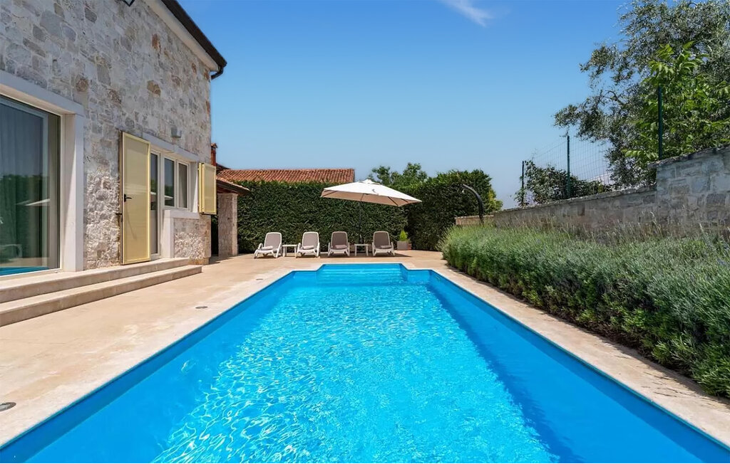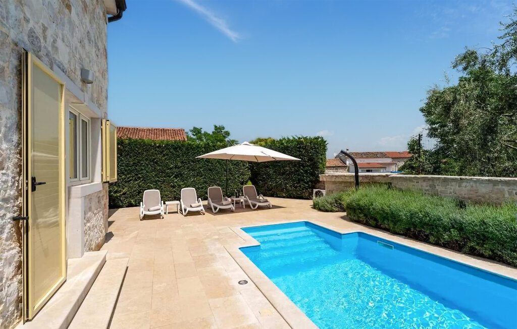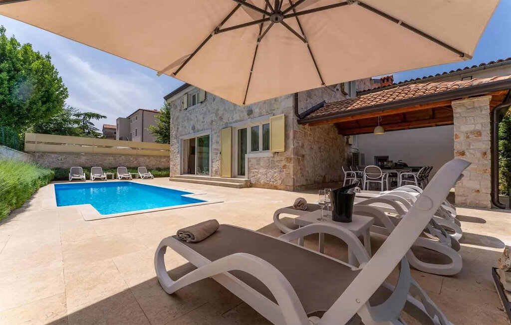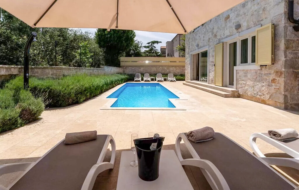 Pour une sensation particulièrement luxueuse, la piscine avec 8 chaises longues est également à votre disposition, où vous pourrez profiter du chaud soleil d'Istrie.