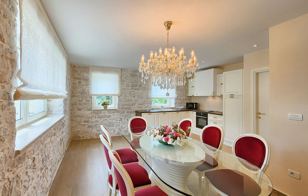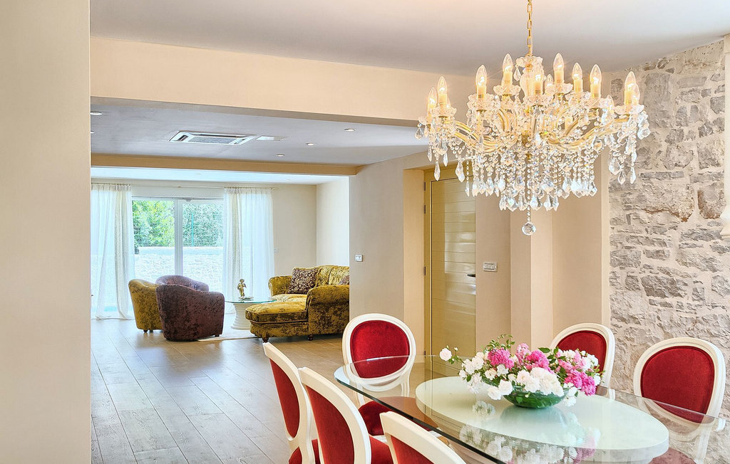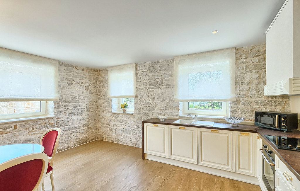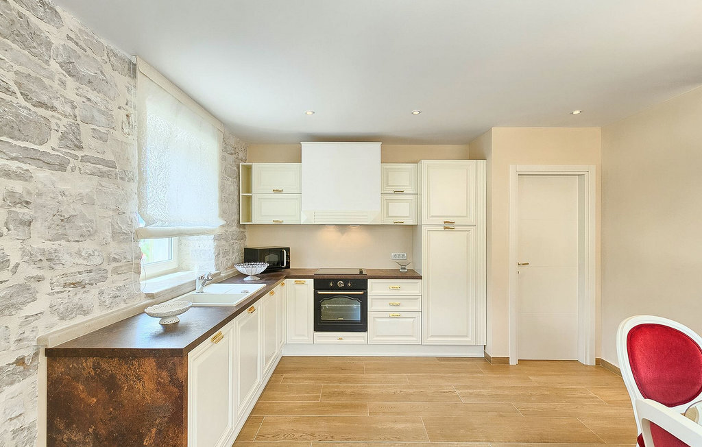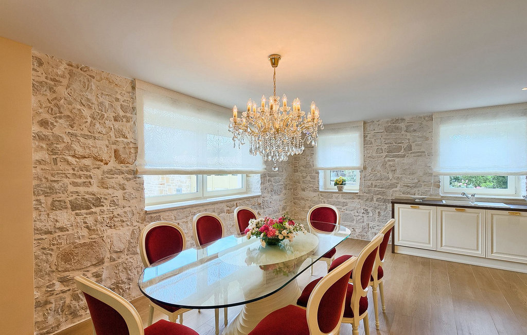 Si vous êtes à la recherche d'un endroit où vous pourrez non seulement vous détendre, mais aussi profiter de l'intimité totale d'un jardin entièrement clôturé, la Villa Ema pourrait être la solution parfaite pour vous. Cette maison récemment construite peut accueillir jusqu'à 8 personnes, car son plan est soigneusement réparti sur deux étages spacieux avec un total de 4 chambres à coucher luxueuses. Le terrain avec un jardin bien entretenu est entouré d'un mur de pierre qui, avec la salle à manger extérieure couverte avec cheminée et de nombreux détails en bois, contribue au sentiment traditionnel de l'Istrie. Grâce aux pièces lumineuses, aux lignes élégantes et à la grande porte vitrée qui s'ouvre sur la piscine depuis le salon, la maison bénéficie également de beaucoup de lumière du soleil, la villa est extrêmement spacieuse et confortable.