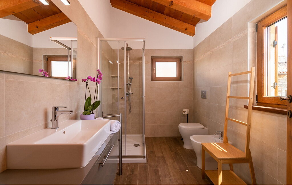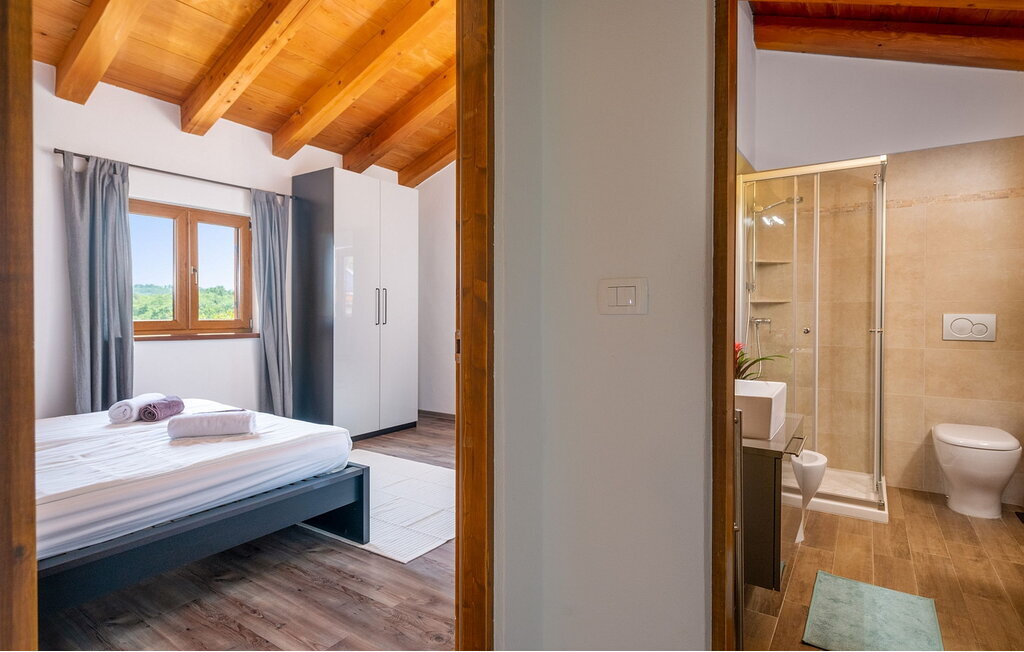 Le village de Vigini se trouve dans l'Istrie verte et intacte, à proximité de Groznjan, la ville pittoresque des artistes. Groznjan n'enchante pas seulement par ses œuvres d'art, mais aussi par les vues imprenables qui s'étendent de chaque côté de la colline, les mélodies de jazz qui s'écoulent dans les ruelles étroites, la douce brise qui apporte un véritable rafraîchissement pendant les chauds mois d'été et la sélection de produits autochtones. Casa IDa a été construite en 2017 et sur son propre terrain, elle offre à ses hôtes une piscine de 32 m², une cuisine d'été couverte avec table à manger, une terrasse avec salon et des toilettes séparées à côté de la piscine.