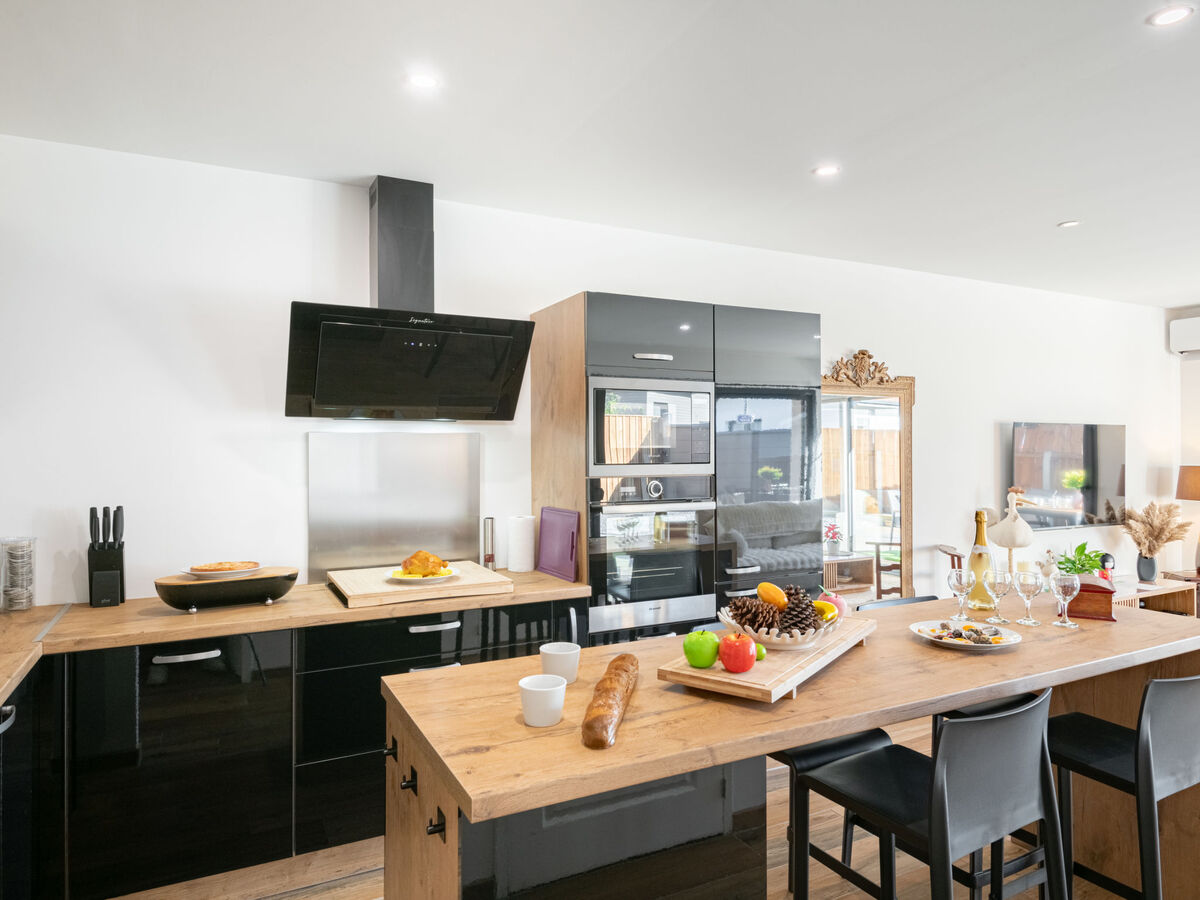 Grande cuisine ouverte (four, lave-vaisselle, 1 plaques à induction, grille-pain, bouilloire électrique, micro-ondes, cafetière électrique, Capsules pour machine à café (senseo) (NON INCLUSES), ilot de cuisine).