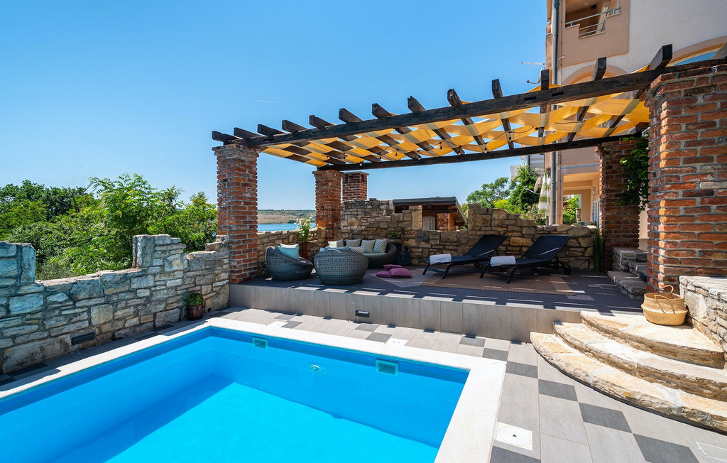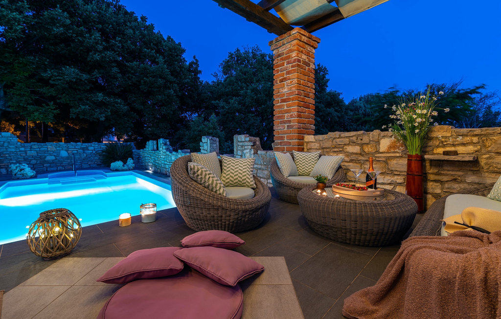 La belle terrasse de la Villa Gora dispose d'une attrayante piscine privée. Vous pourrez vous y rafraîchir après avoir profité du soleil sur les confortables chaises longues et d'une boisson fraîche à la main. Le salon couvert est l'endroit idéal pour observer les vagues qui roulent doucement vers un coucher de soleil à couper le souffle. C'est également un endroit idéal pour savourer la première gorgée de café du matin. Sur la terrasse se trouvent également un spa extérieur et un barbecue au charbon de bois.