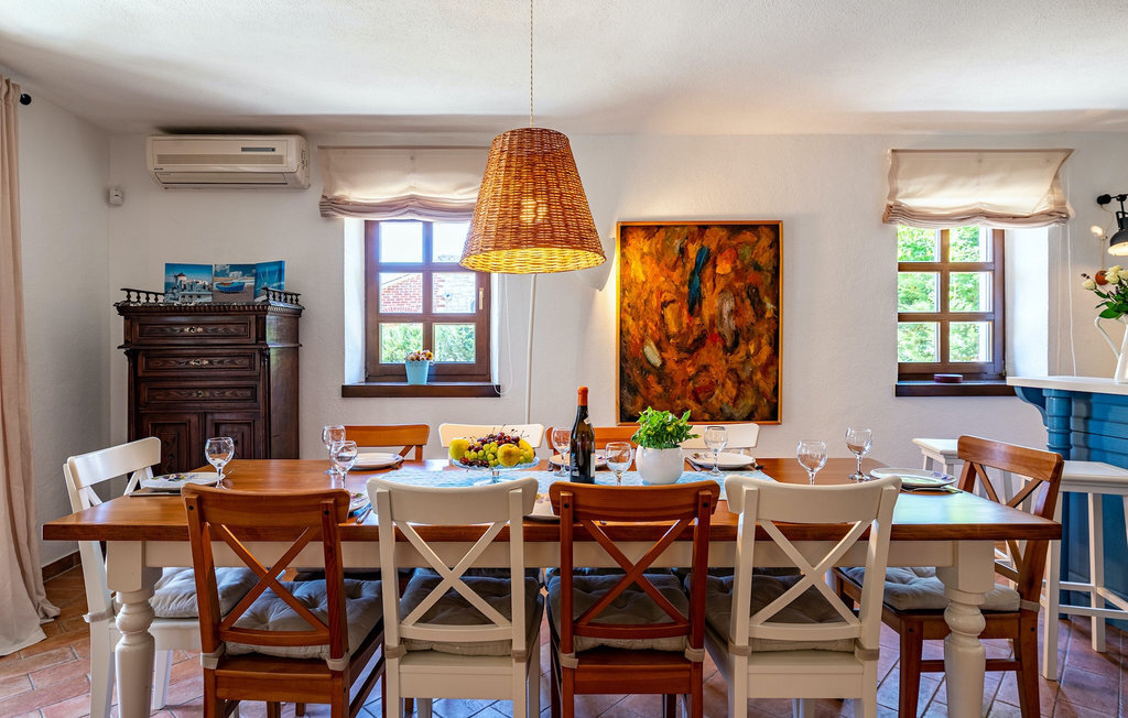 Vous serez certainement séduit par le magnifique et grand espace extérieur avec piscine. Sur la terrasse, vous trouverez quelques coins pour vous asseoir, un coin repas couvert pour 12 personnes, ainsi qu'un barbecue avec des charbons de bois. Baignez-vous dans la piscine, détendez-vous sur l'une des chaises longues et savourez une boisson rafraîchissante. Pendant que vous profitez de vos vacances bien méritées, vos enfants peuvent faire une partie de ping-pong, de volley-ball ou s'amuser sur l'aire de jeux bien équipée. La Villa Happy Holiday est un endroit parfait pour passer des vacances détendues, agréables et naturellement bellesVinjan est un petit village d'Istrie situé à 13 kilomètres à l'est de Pore. Dans la pittoresque ville de Vinjan se trouve un observatoire astronomique de renommée mondiale, qui propose depuis de nombreuses années des programmes d'été internationaux pour les jeunes dans le domaine de l'astronomie, de l'archéologie, de la biologie marine et autres. Vinjan est également connu pour sa culture d'oliviers et est l'un des derniers endroits où l'on trouve le bœuf autochtone d'Istrie, le bokarin.