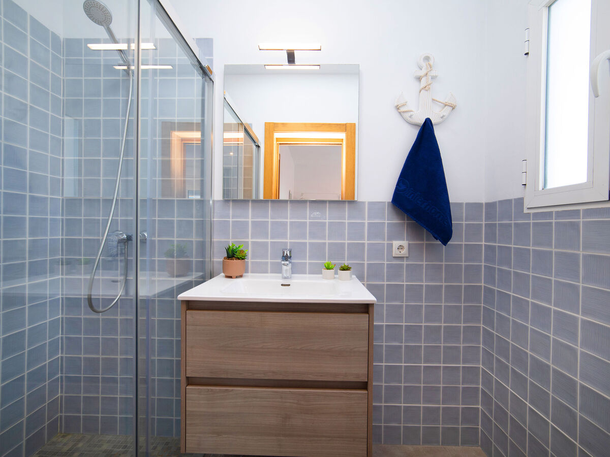 1 chambre avec 1 grand-lit (180 cm, longueur 200 cm), douche/WC, air-conditionné et chauffage à air chaud.