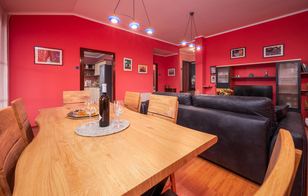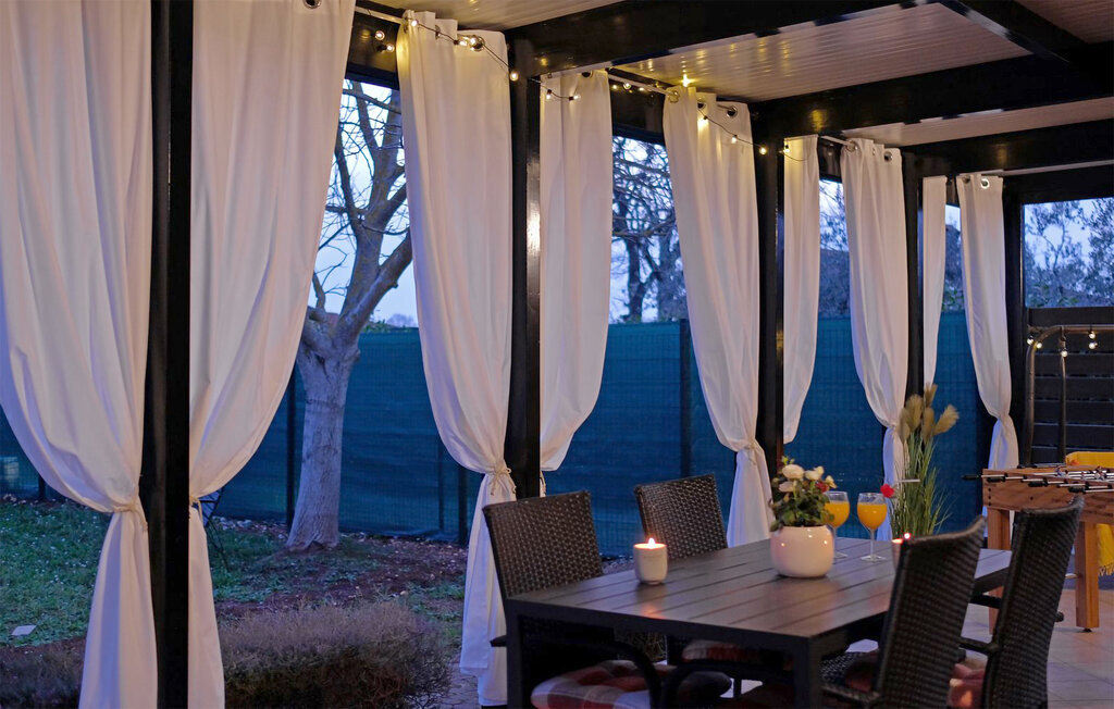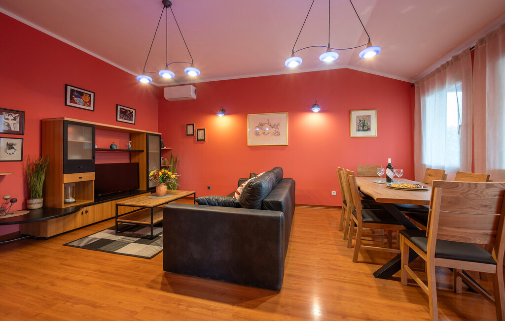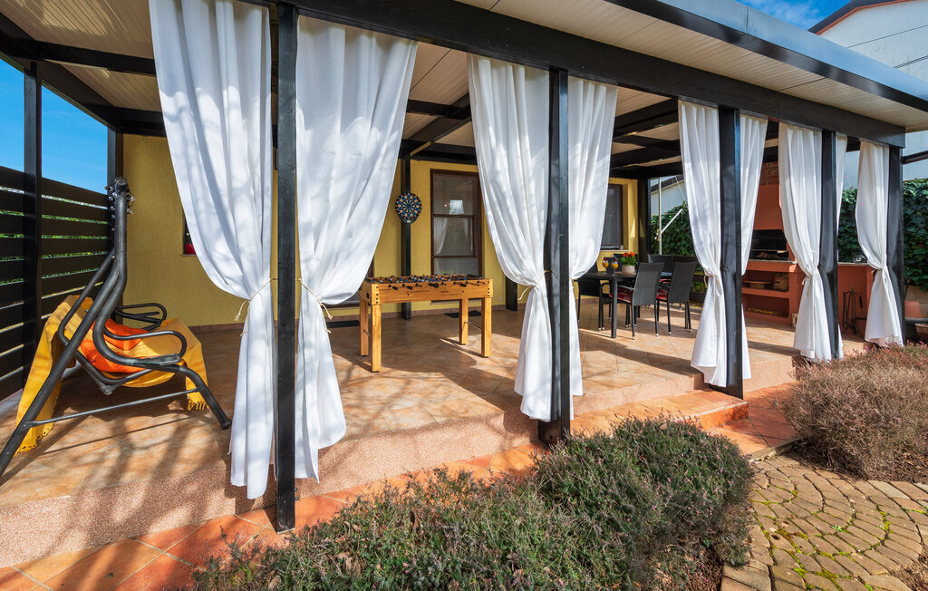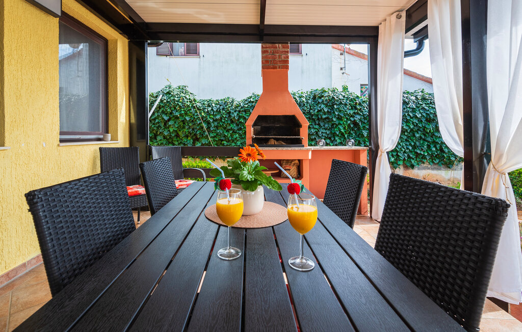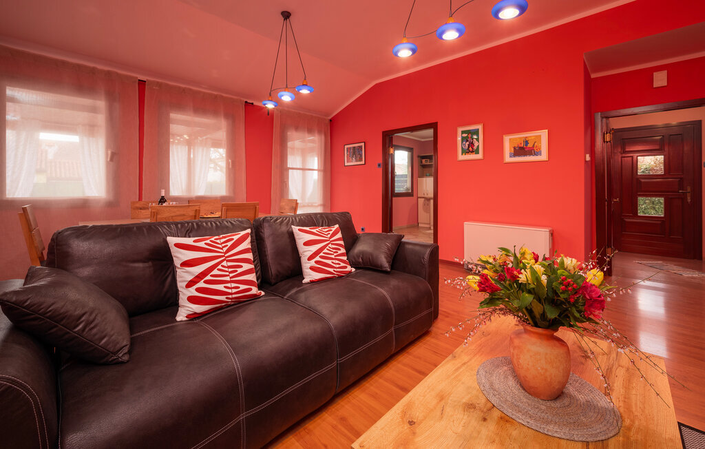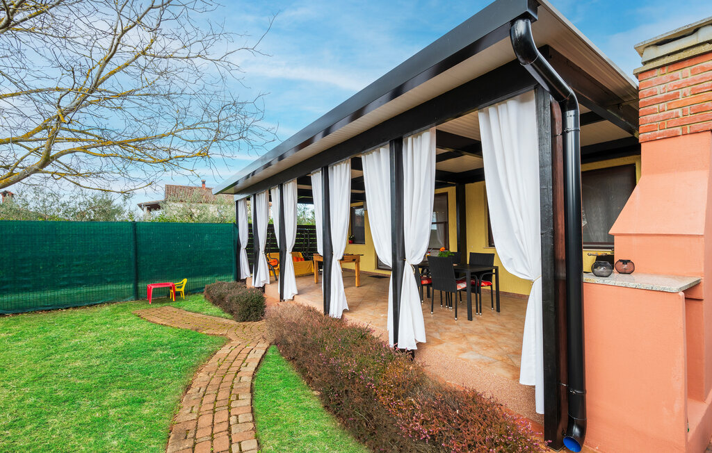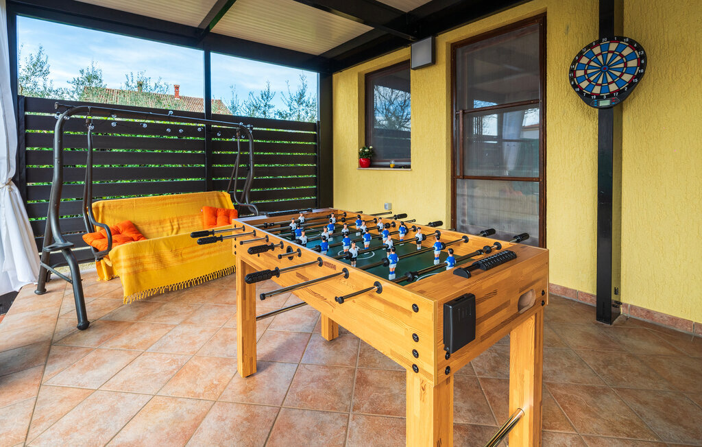 Loin de l'agitation et du tumulte du quotidien, vous vivrez des vacances relaxantes en Istrie dans cette maison de vacances située au calme. Commencez la journée tranquillement et prenez votre petit déjeuner sur votre terrasse couverte. Ensuite, il est peut-être déjà temps de jouer et de s'amuser avec vos enfants. Votre maison de vacances vous attend avec différentes possibilités d'activités comme le badminton, les fléchettes ou le baby-foot. L'intérieur coloré de votre maison de vacances est également très agréable. Préparez vos repas dans la cuisine bien équipée ou sur le barbecue sur la terrasse.