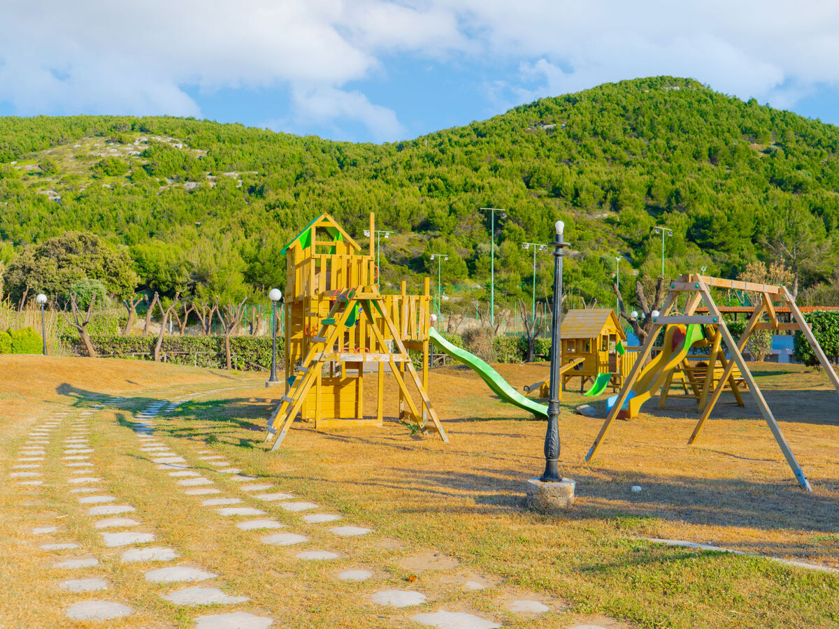 Village de vacances accueillant pour les enfants "Centro Turistico San Nicola", environné par les arbres.