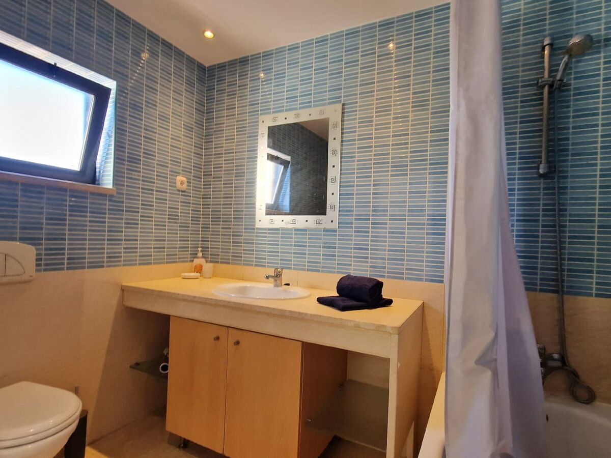 1 chambre avec 1 grand-lit (160 cm, longueur 200 cm), baignoire sabot/WC, air-conditionné et chauffage à air chaud.