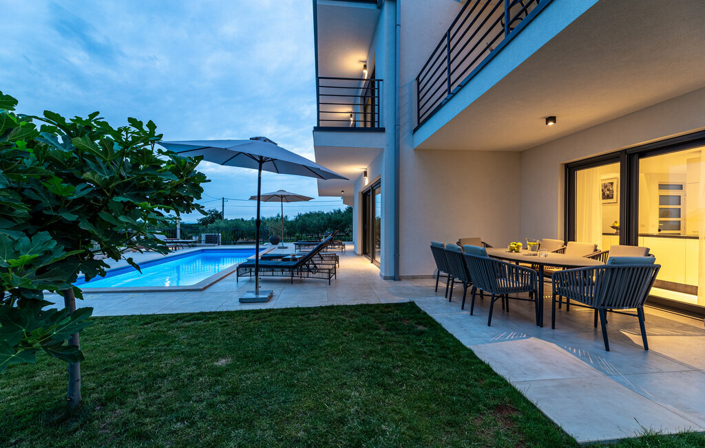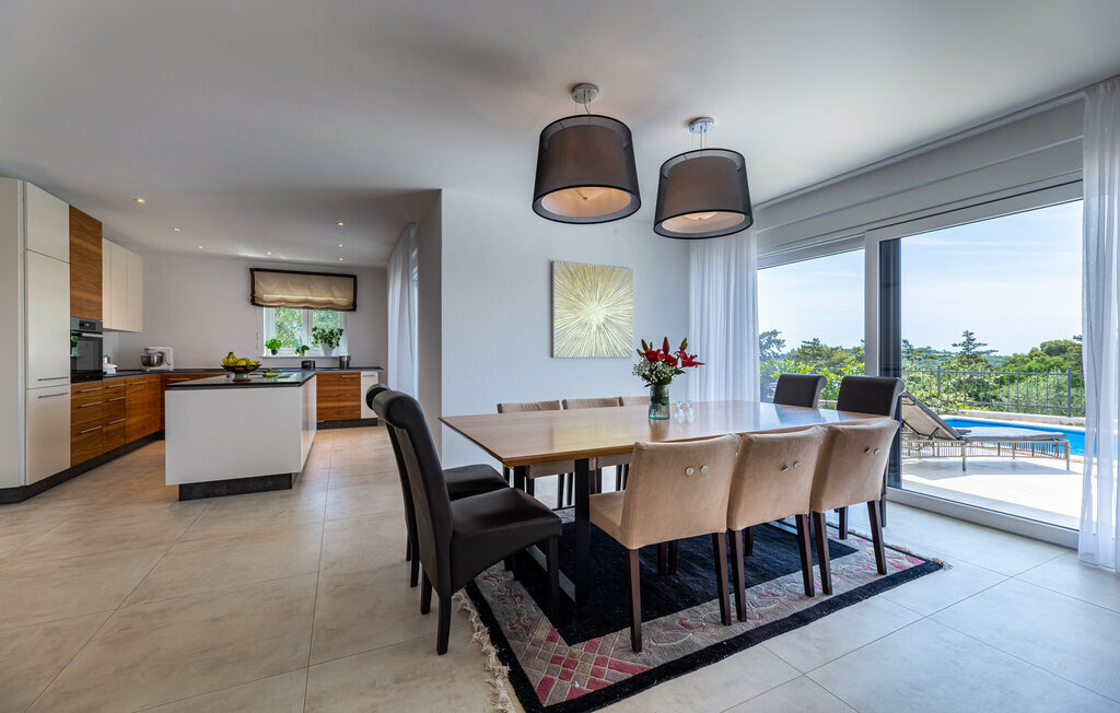 Réjouissez-vous de passer vos vacances dans cette maison entièrement équipée et de construction moderne. La maison de vacances spacieuse vous offre sur deux étages le confort, le bien-être et un design attrayant, créant ainsi une véritable oasis de bien-être. Le jeu des couleurs claires et sombres ainsi que le bois dégagent de l'élégance et une grande ambiance de vie dans laquelle vous pourrez vous reposer. Qu'il s'agisse d'agréables soirées au coin du feu devant un film divertissant ou de nombreuses heures de soleil dans le jardin à prendre le soleil et à se baigner, vous pourrez tout simplement laisser votre âme vagabonder et profiter de la vue sur le paysage de l'Istrie jusqu'à la mer depuis le balcon.